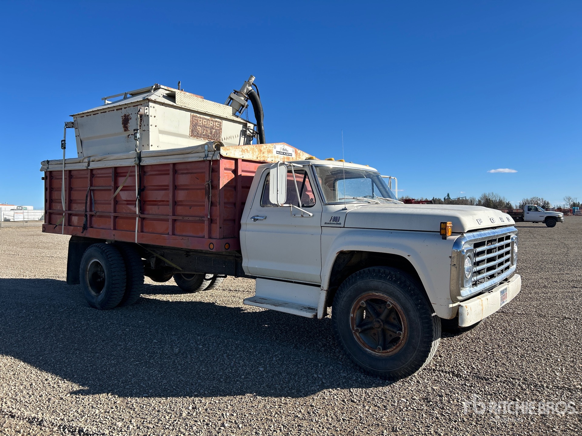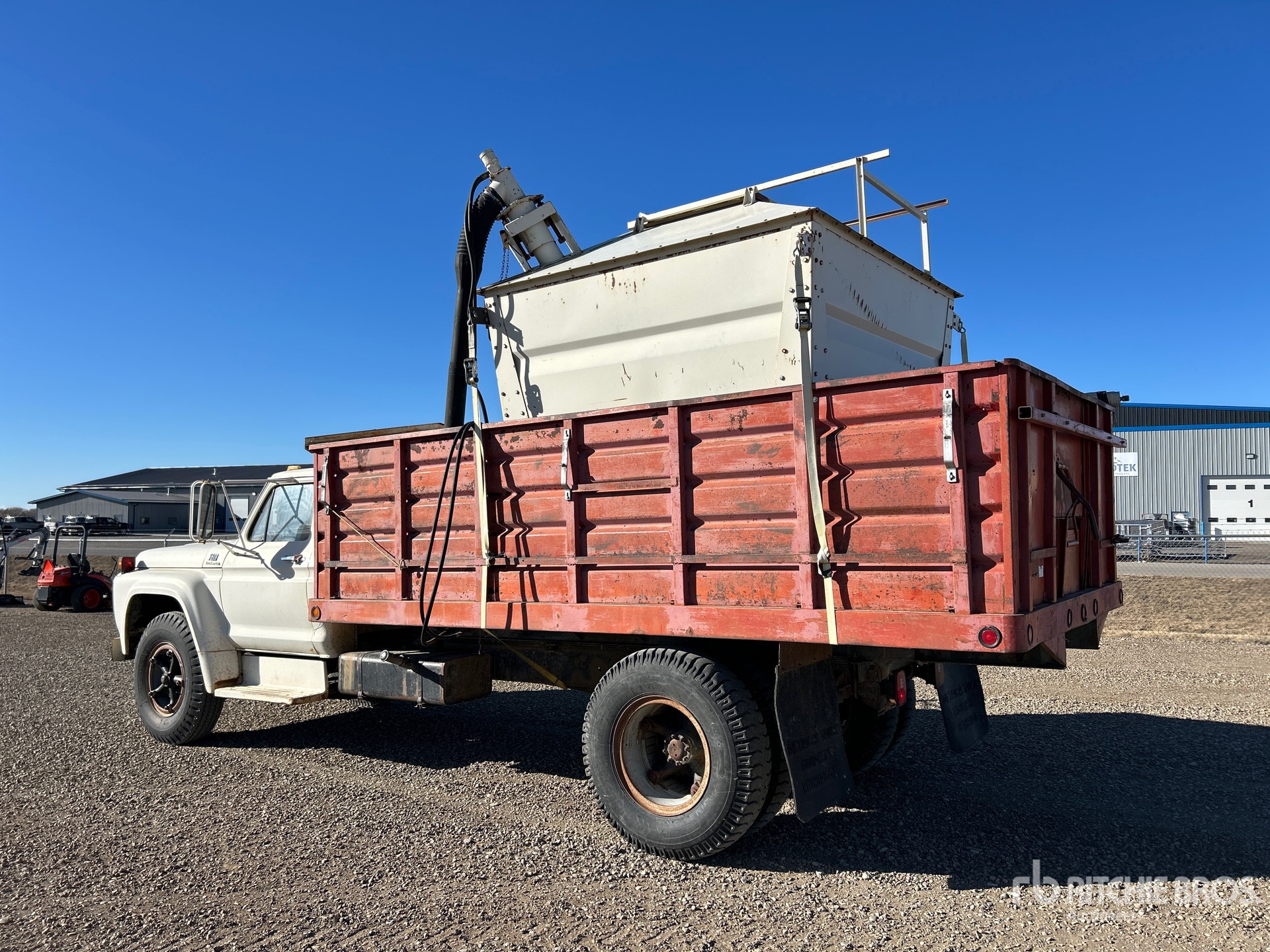 Ford V8 Gasoline Engine, 4-Speed Manual Transmission, 6000 lb Front Axle, 16160 lb Rears, 22000 lb GVWR, 10.00-20, Spring Suspension, 192 in Wheelbase, PTO, 15 ft Long x 3 ft 5 in High Steel Body