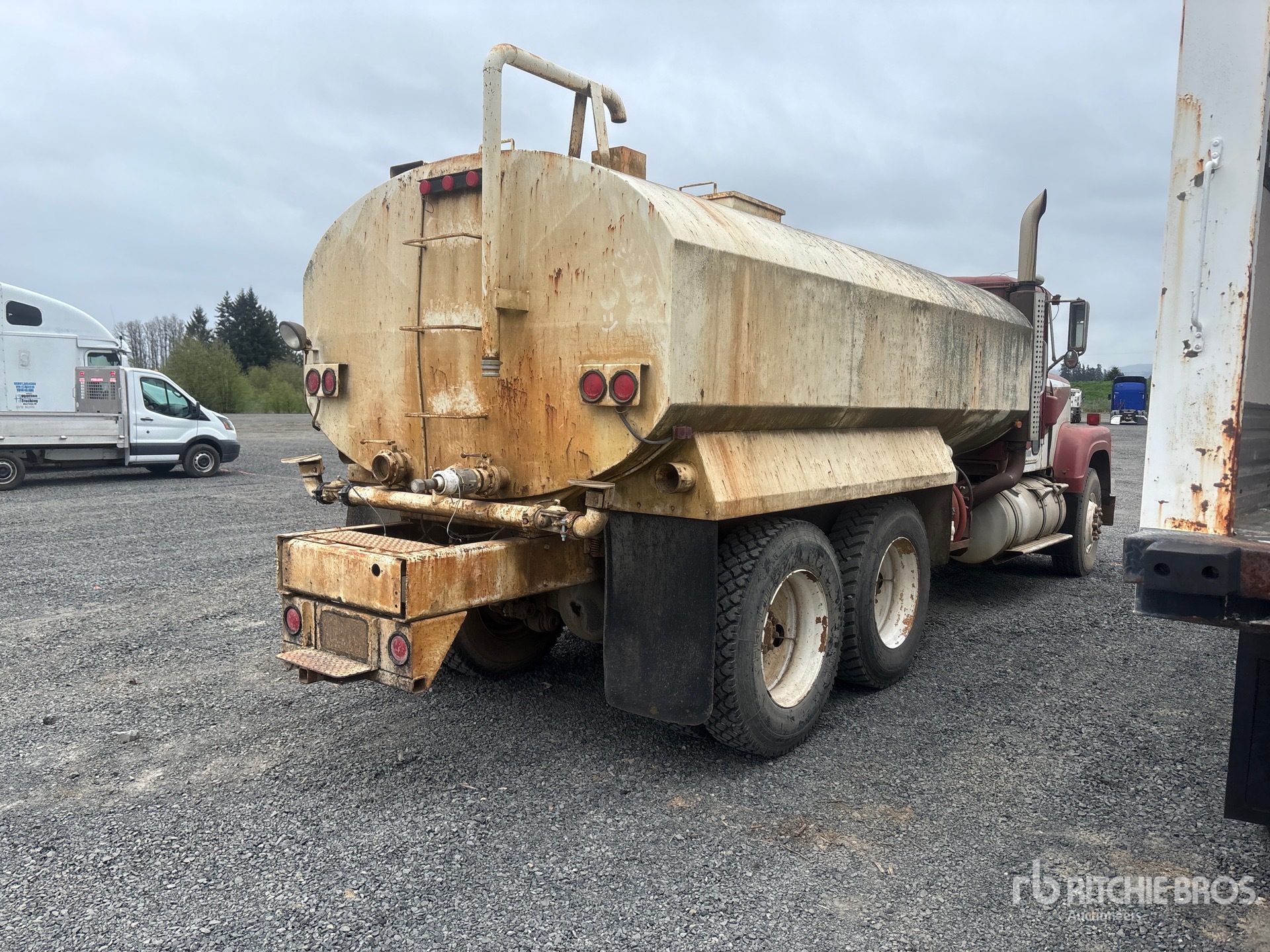 Cummins 6 Cylinder Diesel 290 hp Engine, 3446 Engine hrs, Eaton Fuller 13-Speed Manual Transmission, 11R24.5, Spring over Walking Beam Suspension, 214 in Wheelbase, PTO, Steel Tank, PTO Driven Pump, Hose Reel, Front Spray, Rear Spray, Side Spray
