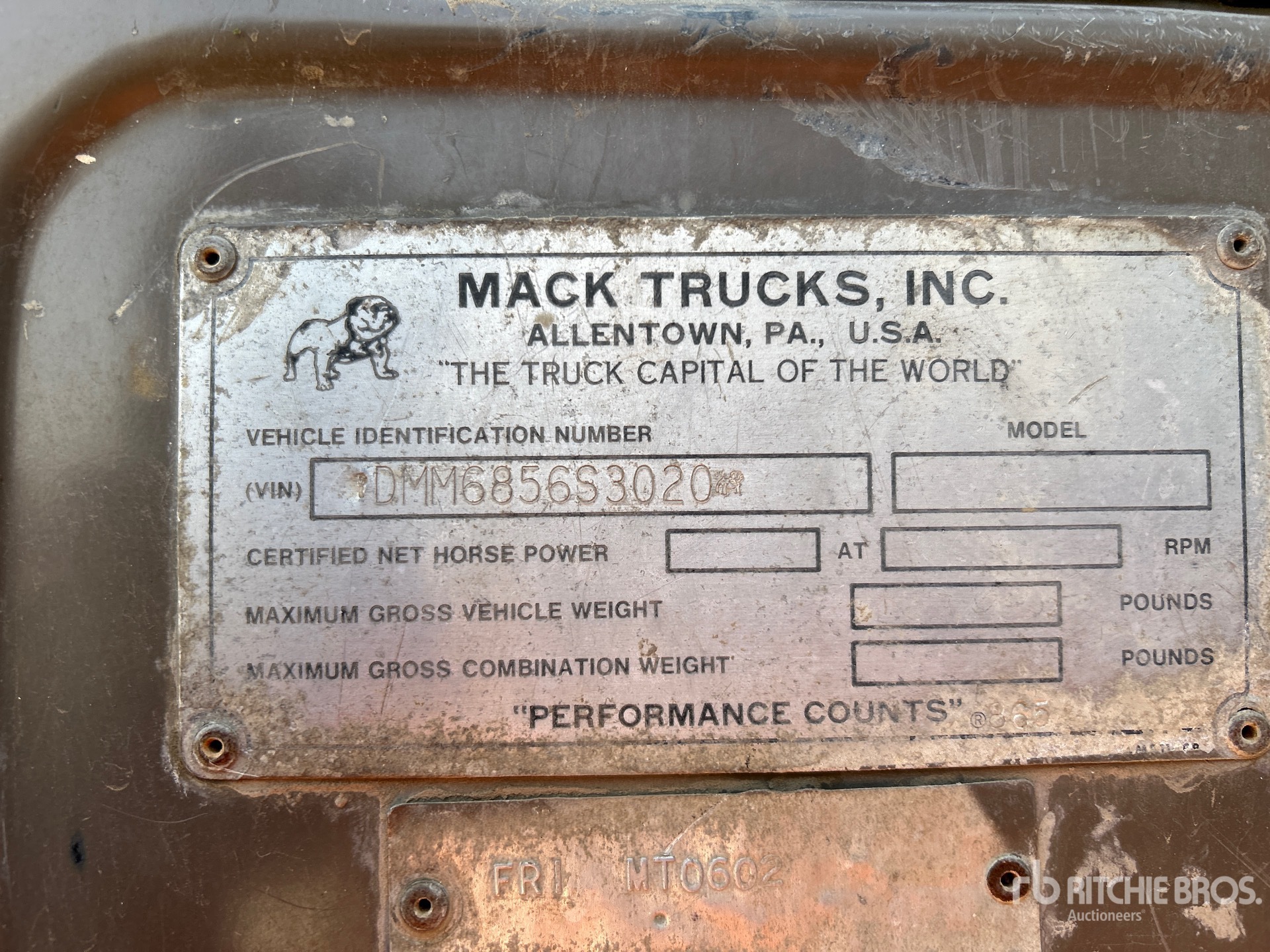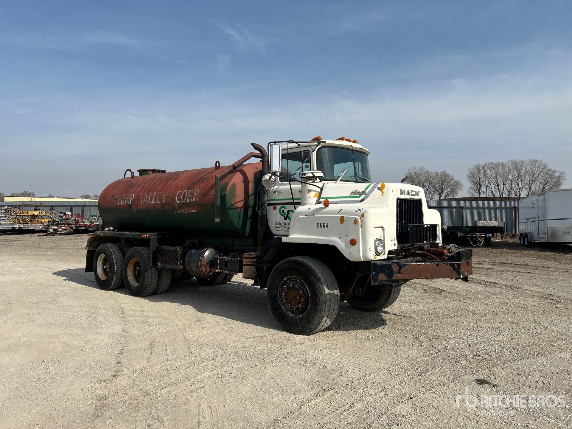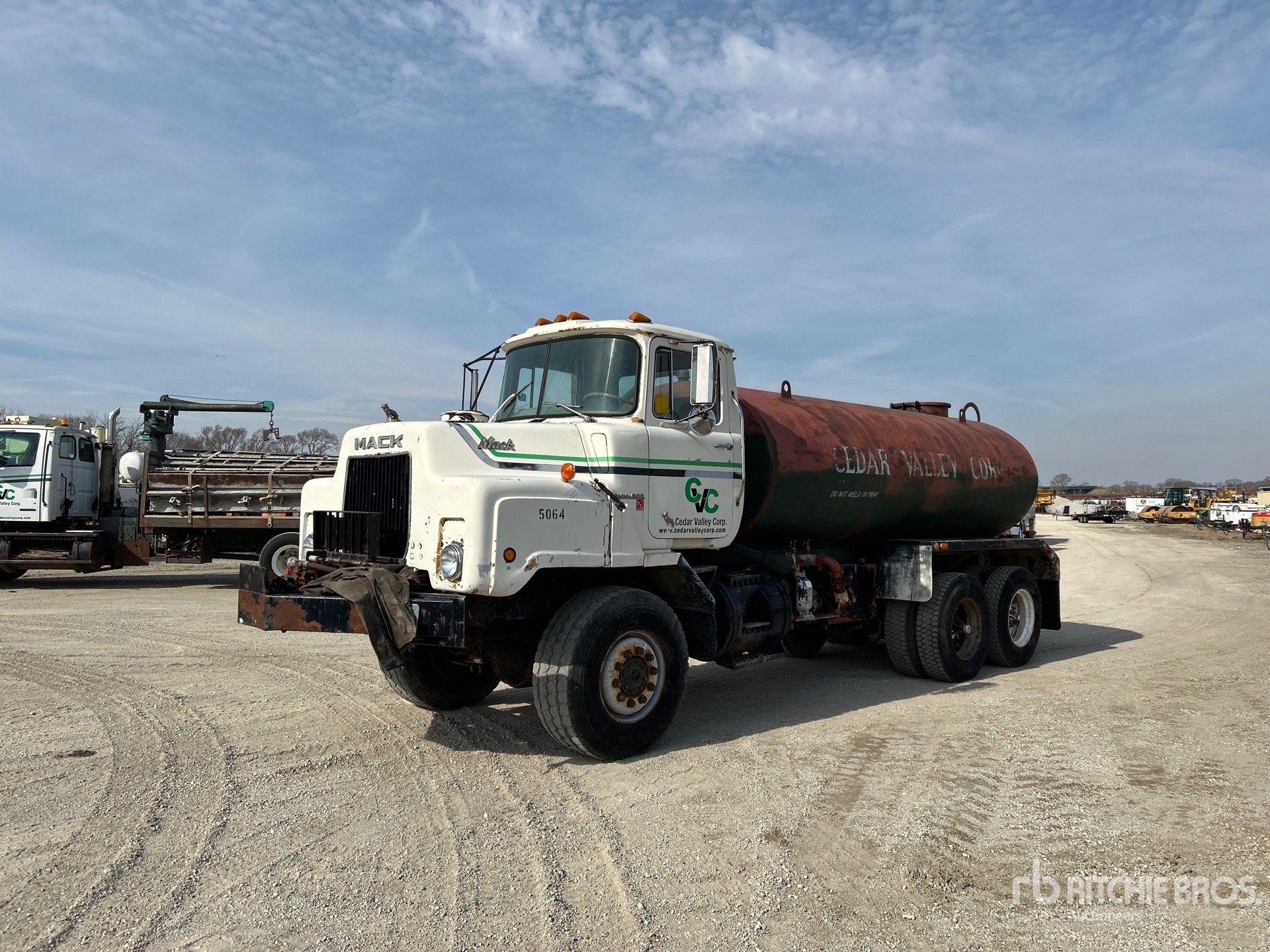 Mack ETZ675 6 Cylinder Diesel 235 hp Engine, 1980 US EPA Label, 3751 Engine hrs, Mack Manual Transmission, 425/65R22.5 Front Tires, 11R22.5 Rear Tires, Double Frame, Spring Suspension, 195 in Wheelbase, PTO, Steel Tank, Sekies Hydraulic Driven Pump, 0 ft 60 in, Spray Bar, Rear Spray