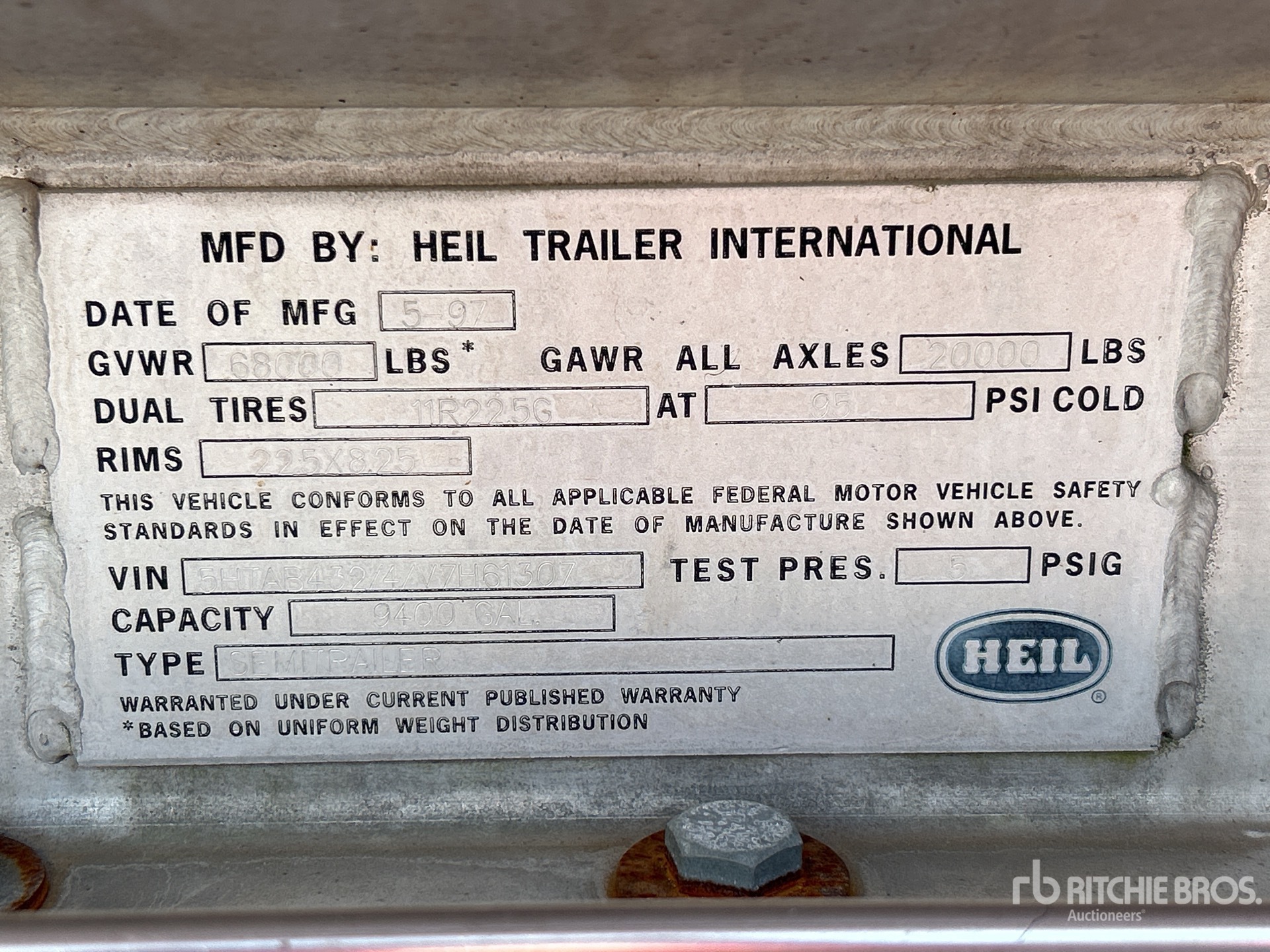 Spring Suspension, Air Brakes, Aluminum Wheels, 11R22.5 Tires, Aluminum Tank, 5 Compartments, 406AL Code, 68000 lb GVWR