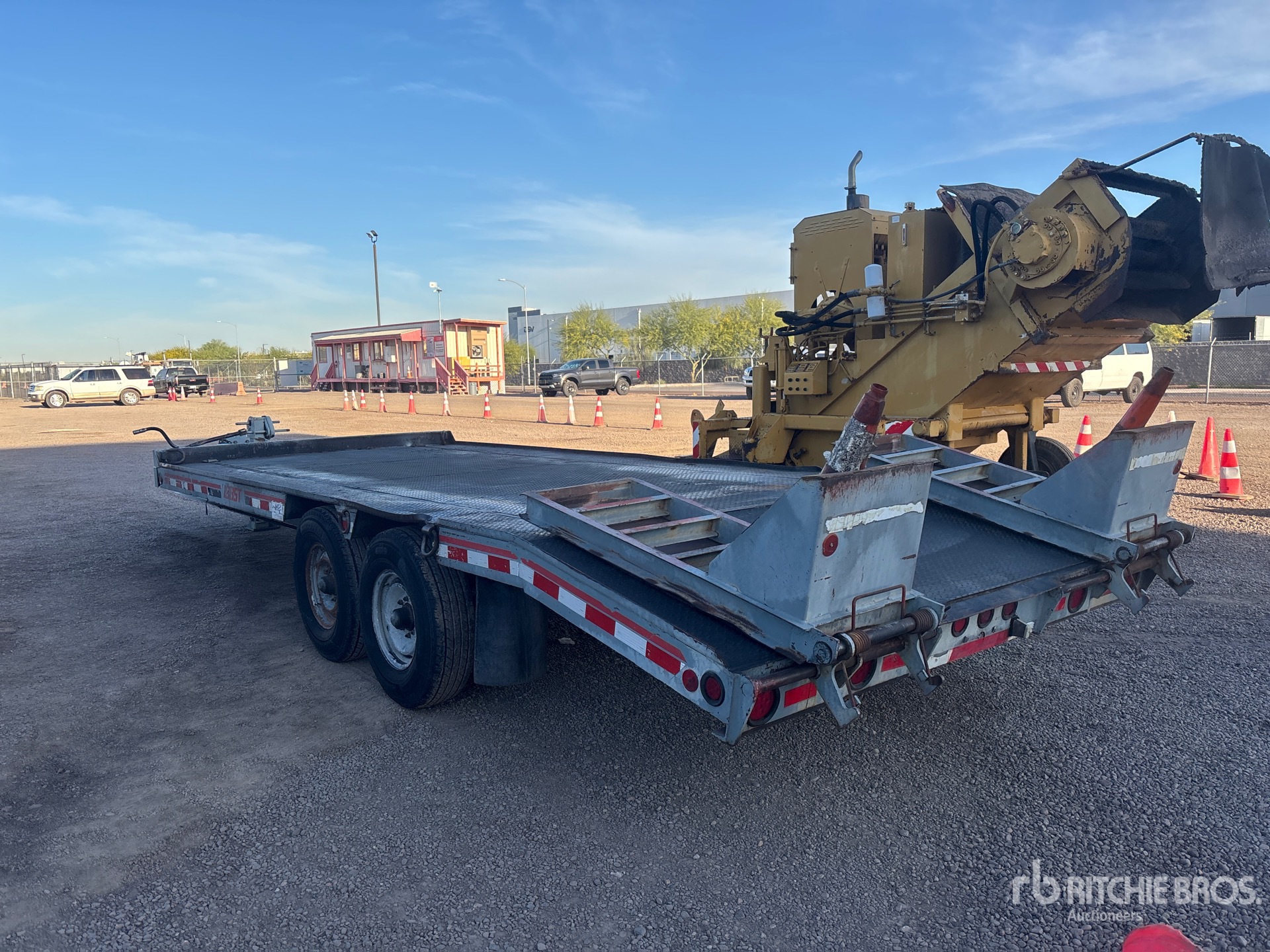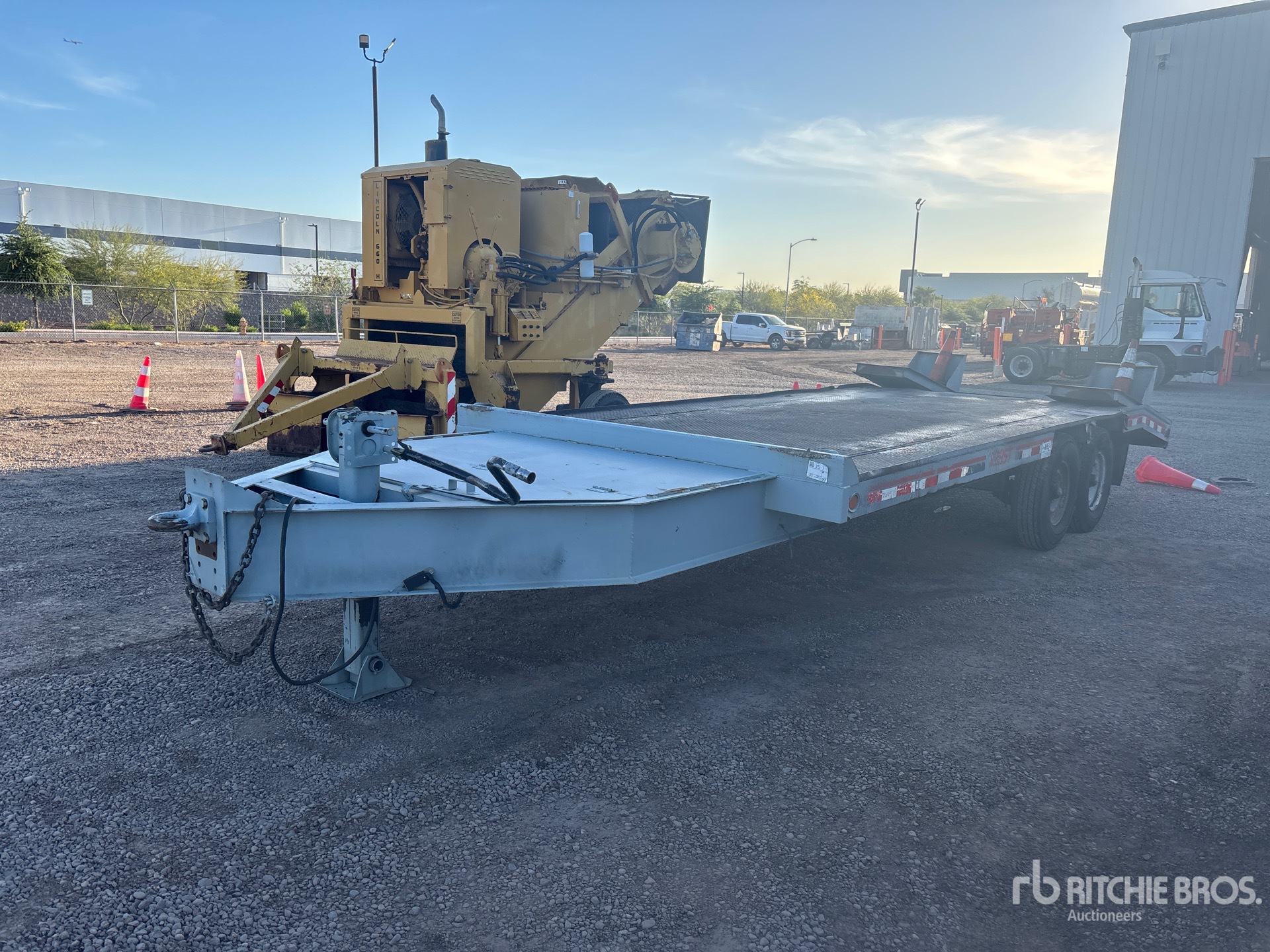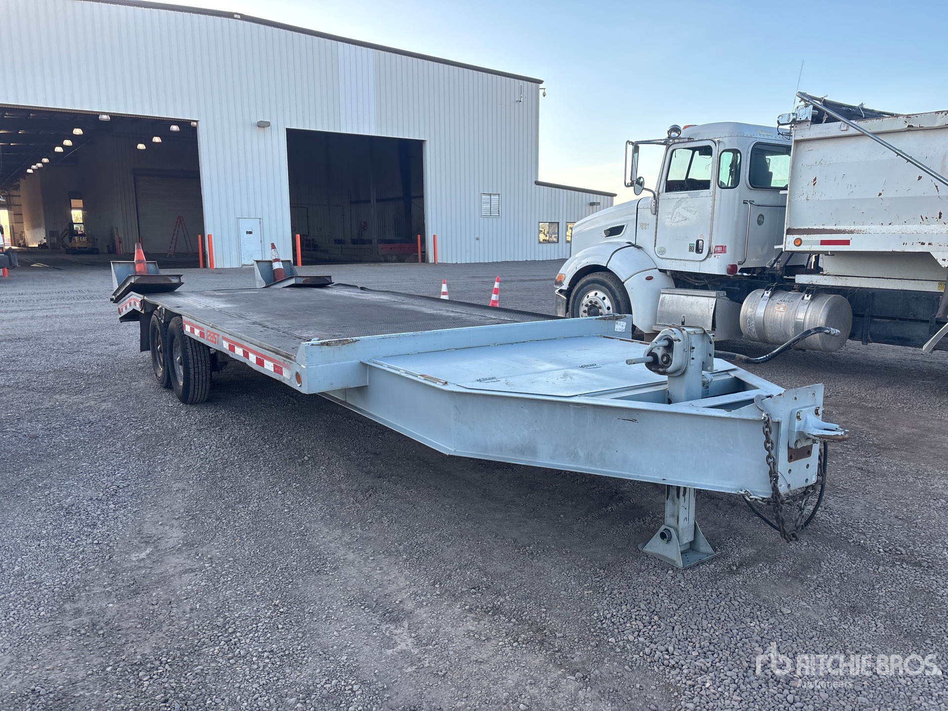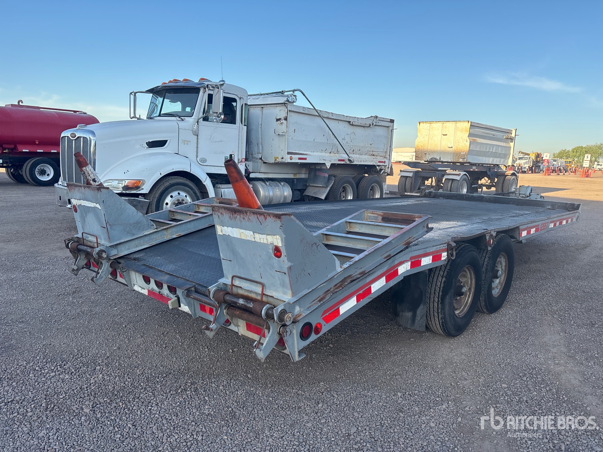 Located in Lane 8 Spot 33, Lunette Ring Hitch, Spring Suspension, 16 ft Main Deck, 4 ft Fixed Dovetail, 96 in Overall Deck Width, Deck Over Tires, Manual Ramps, Steel Decking, 235/85R16 Tires