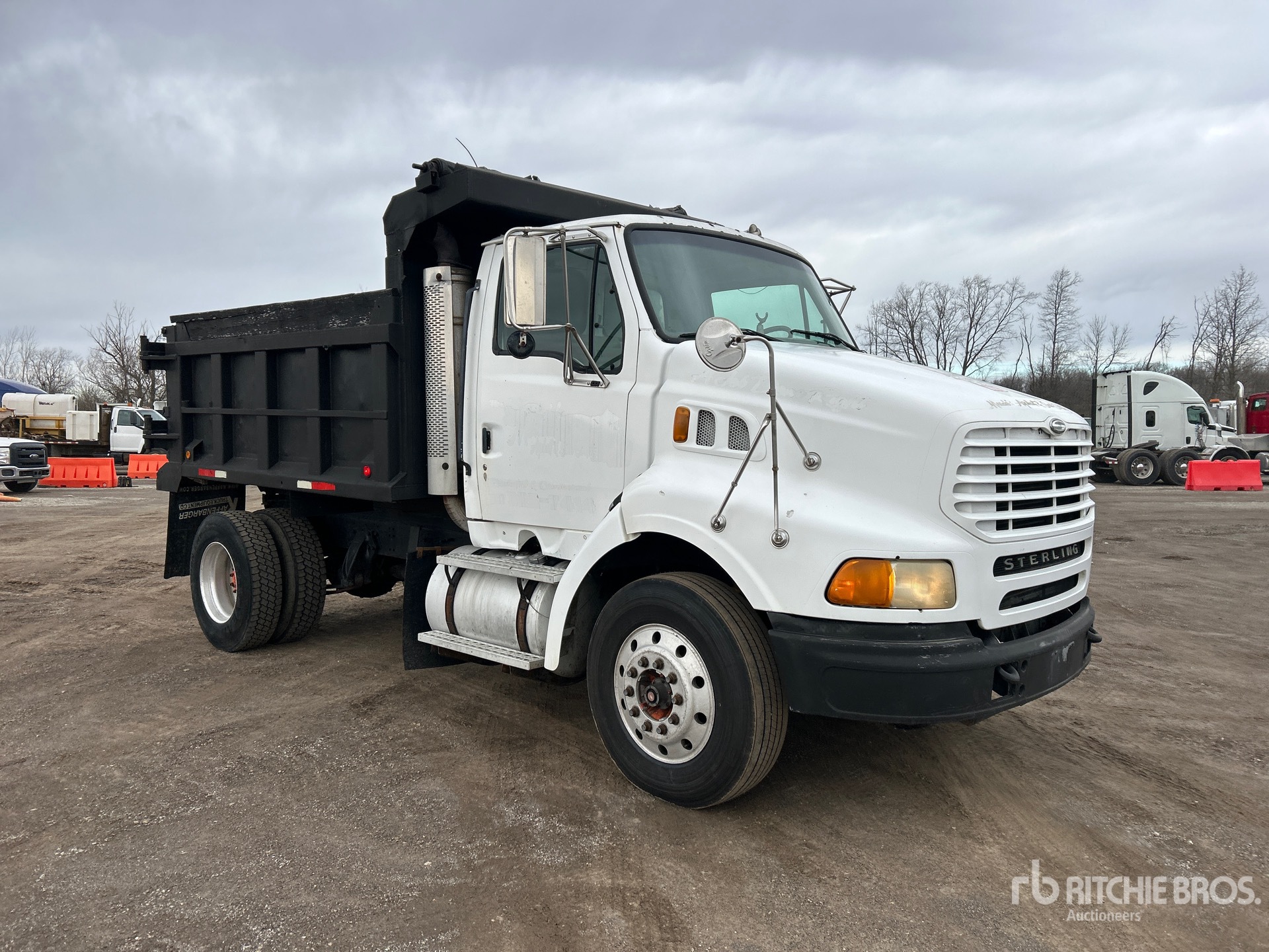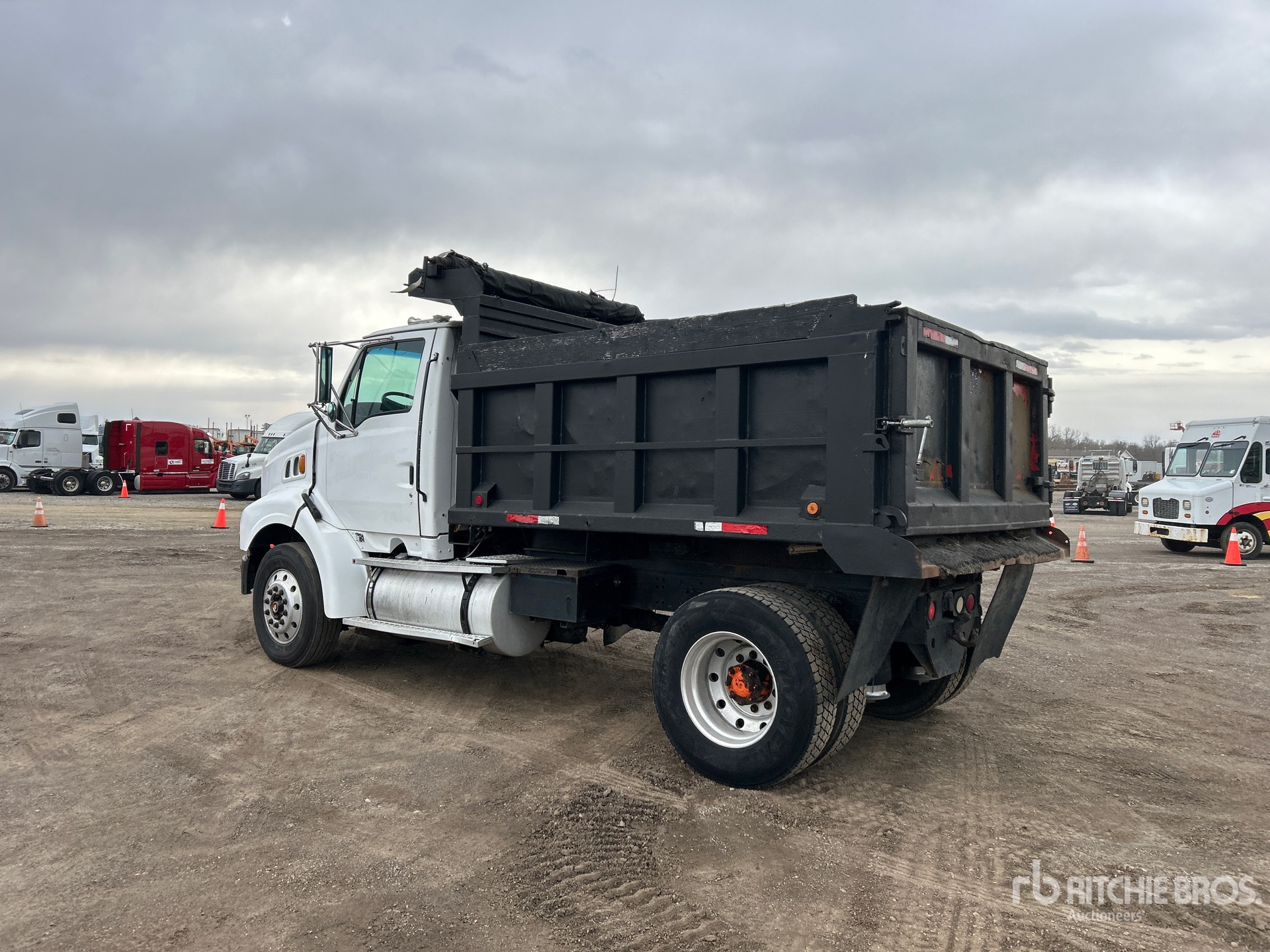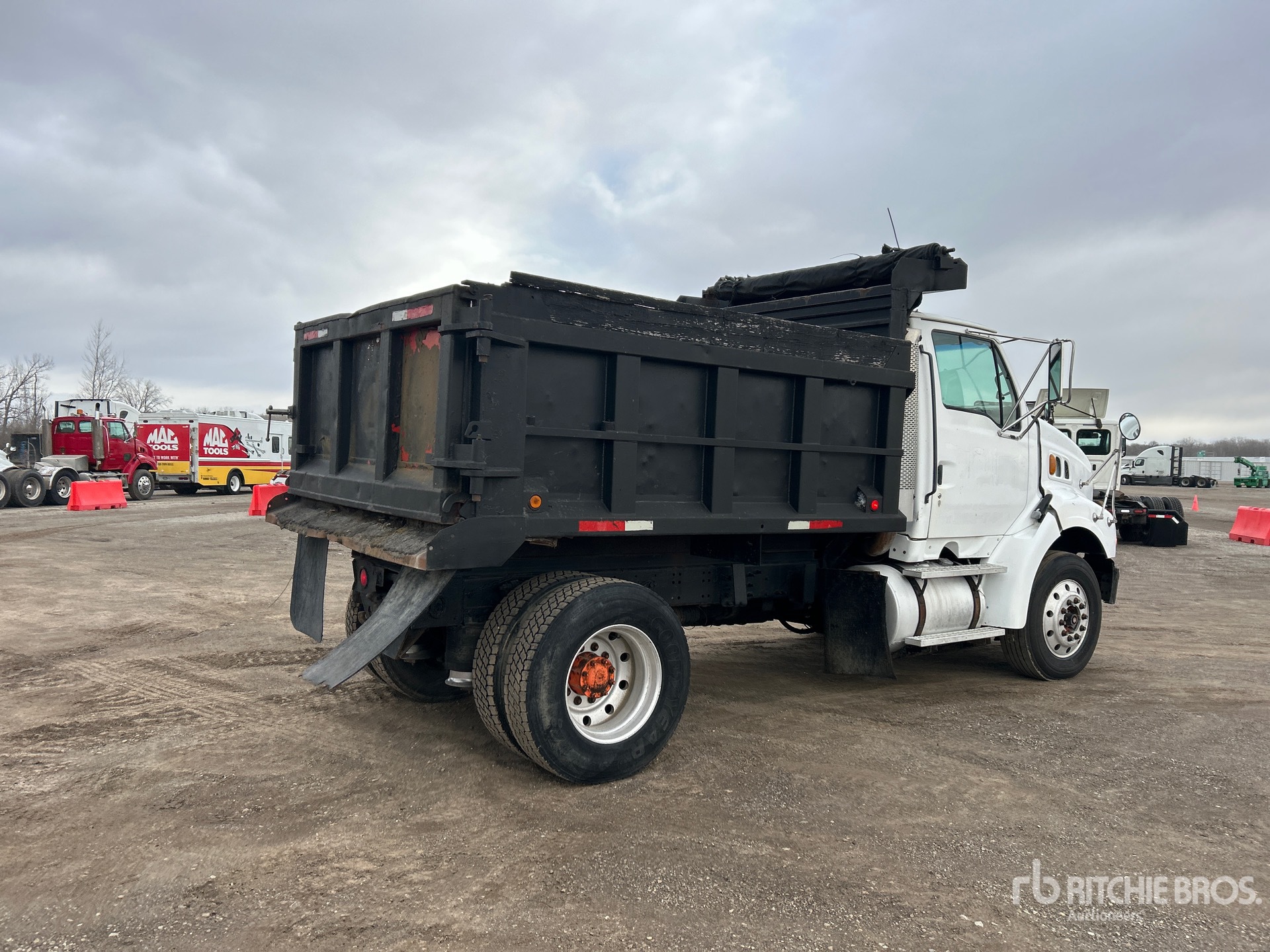 Detroit Series 60 6 Cylinder 12.7 L Diesel 470 hp Engine, 2000 US EPA Label, Engine Brake, Manual Transmission, 12000 lb Front Axle, 20000 lb Rears, 32000 lb GVWR, Aluminum Outer Wheels, 295/75R22.5 Front Tires, 295/75R22.5 Rear Tires, Airliner Air Ride Suspension, 167 in Wheelbase, PTO, Hydraulic System, 10 ft Long x 4 ft High Steel Body, Round Bottom, Manual Roll Tarp, Pintle Hitch