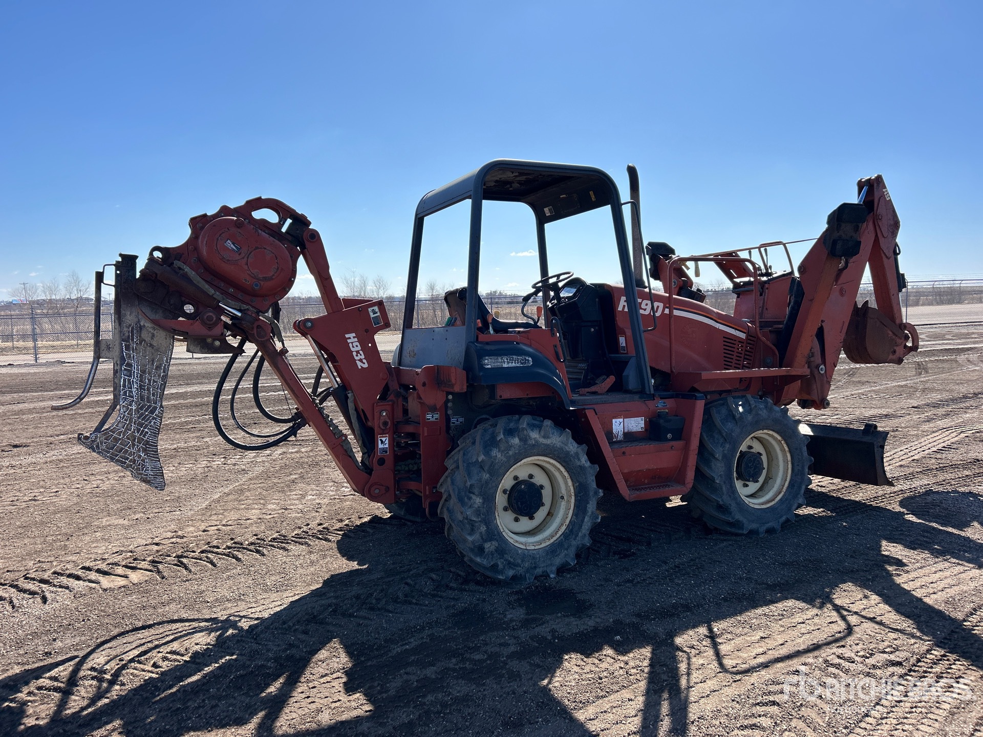 Canopy, 2002 US EPA Label, John Deere 4045DF150A 4 Cylinder 4.5 L Diesel Engine, Hydrostatic Drive, Ditch Witch H932 3 ft Vibratory Cable Plow