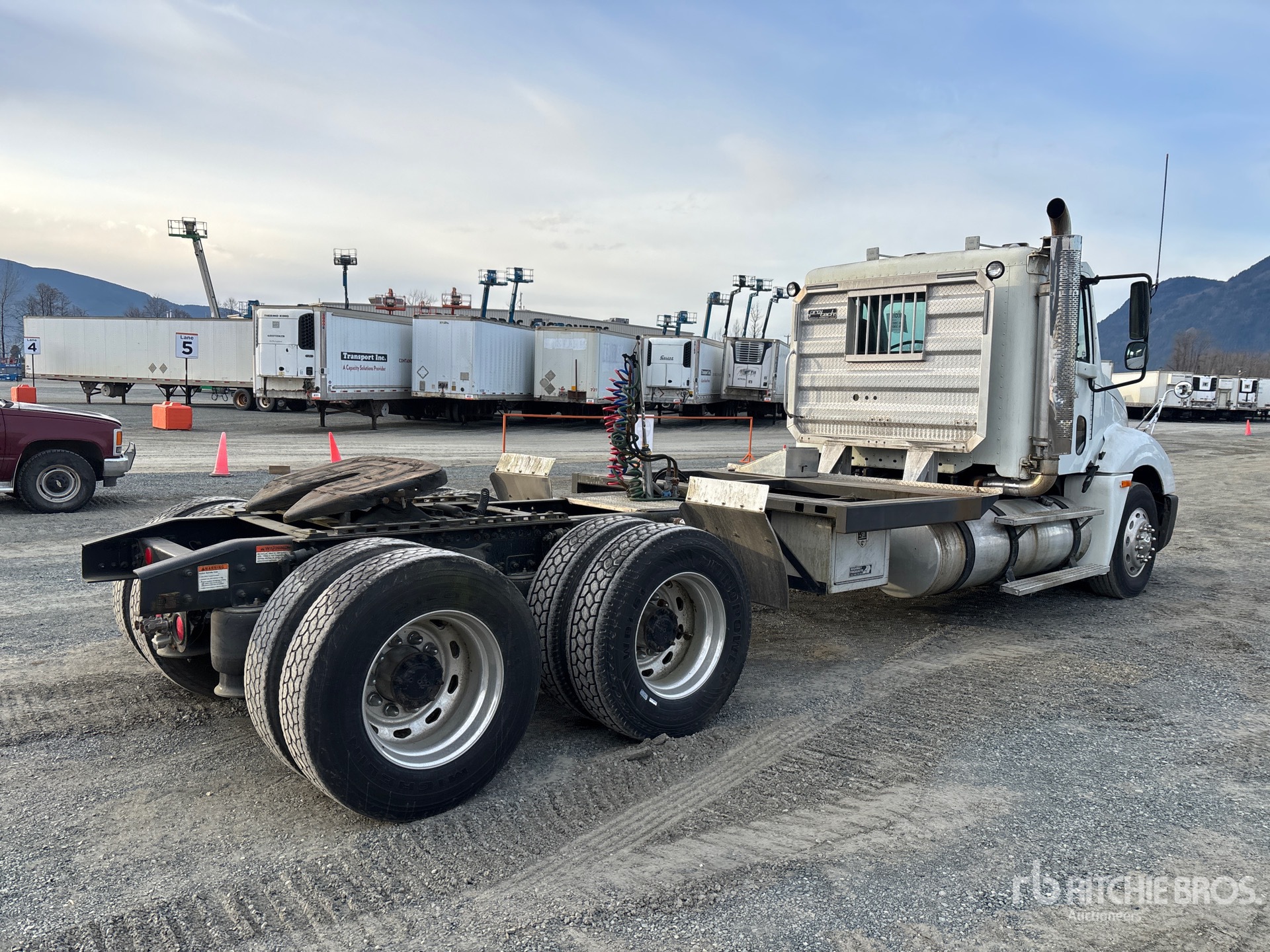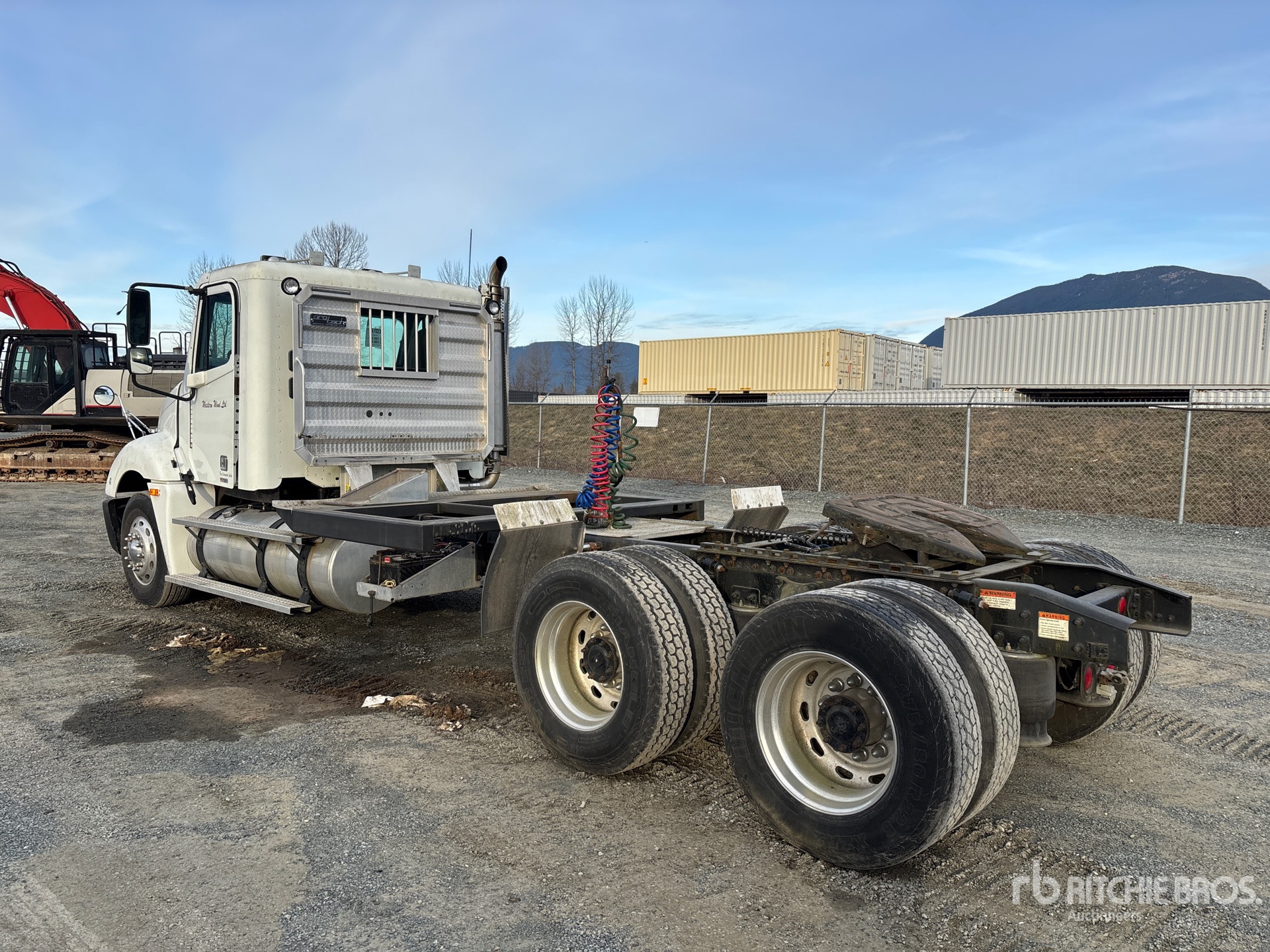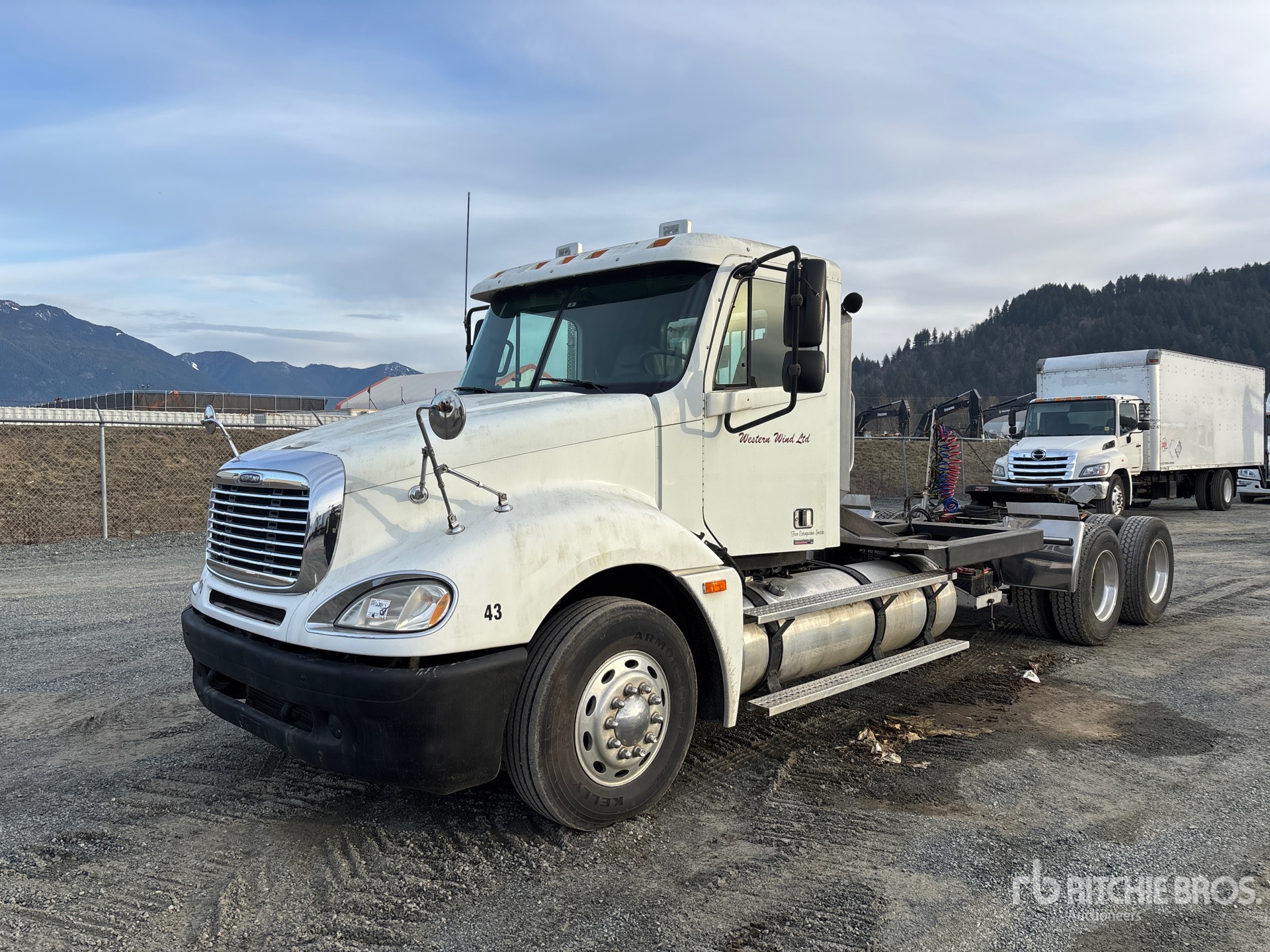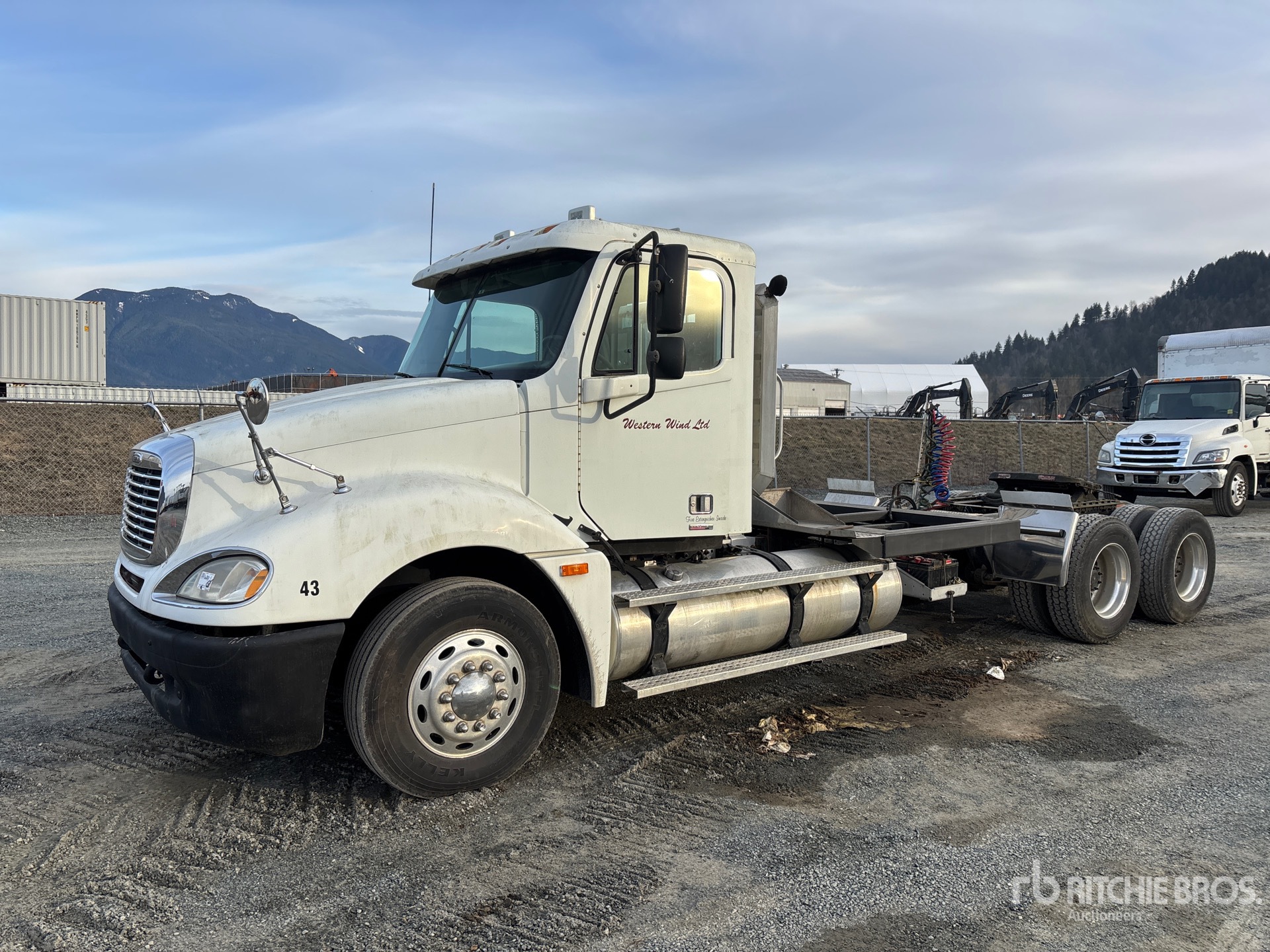 Located in Lane 12 Spot 15, Detroit Series 60 500 hp Engine, 2003 US EPA Label, 15014 Engine hrs, Eaton Fuller 10-Speed Manual Transmission, 12000 lb Front Axle, 40000 lb Rears, 52000 lb GVWR, Engine Brake, 239 in Wheelbase, Air Suspension, Aluminum Outer Wheels, 295/75R22.5, Air Sliding 5th Wheel, Dual Fuel Tanks, Headache Rack