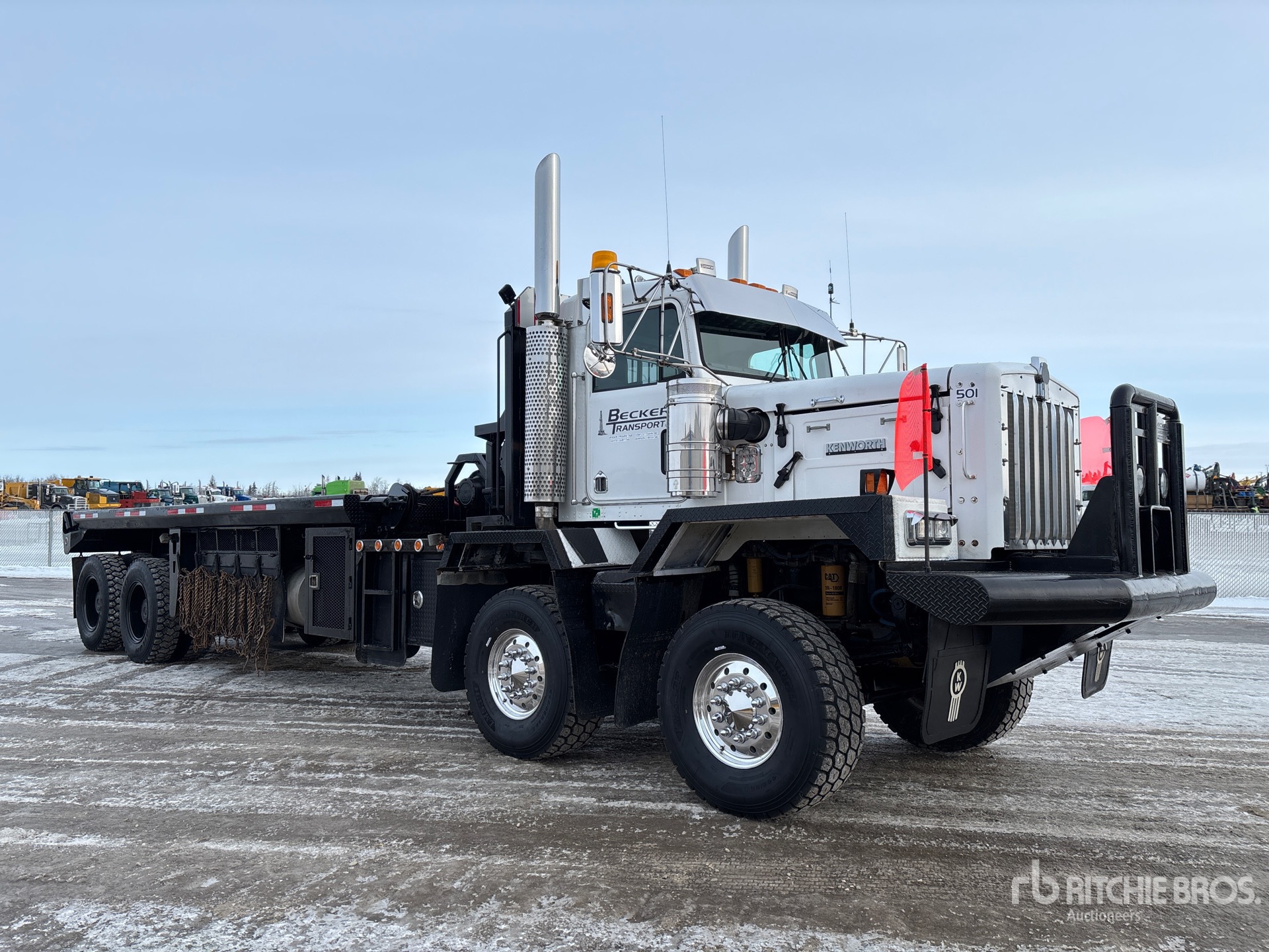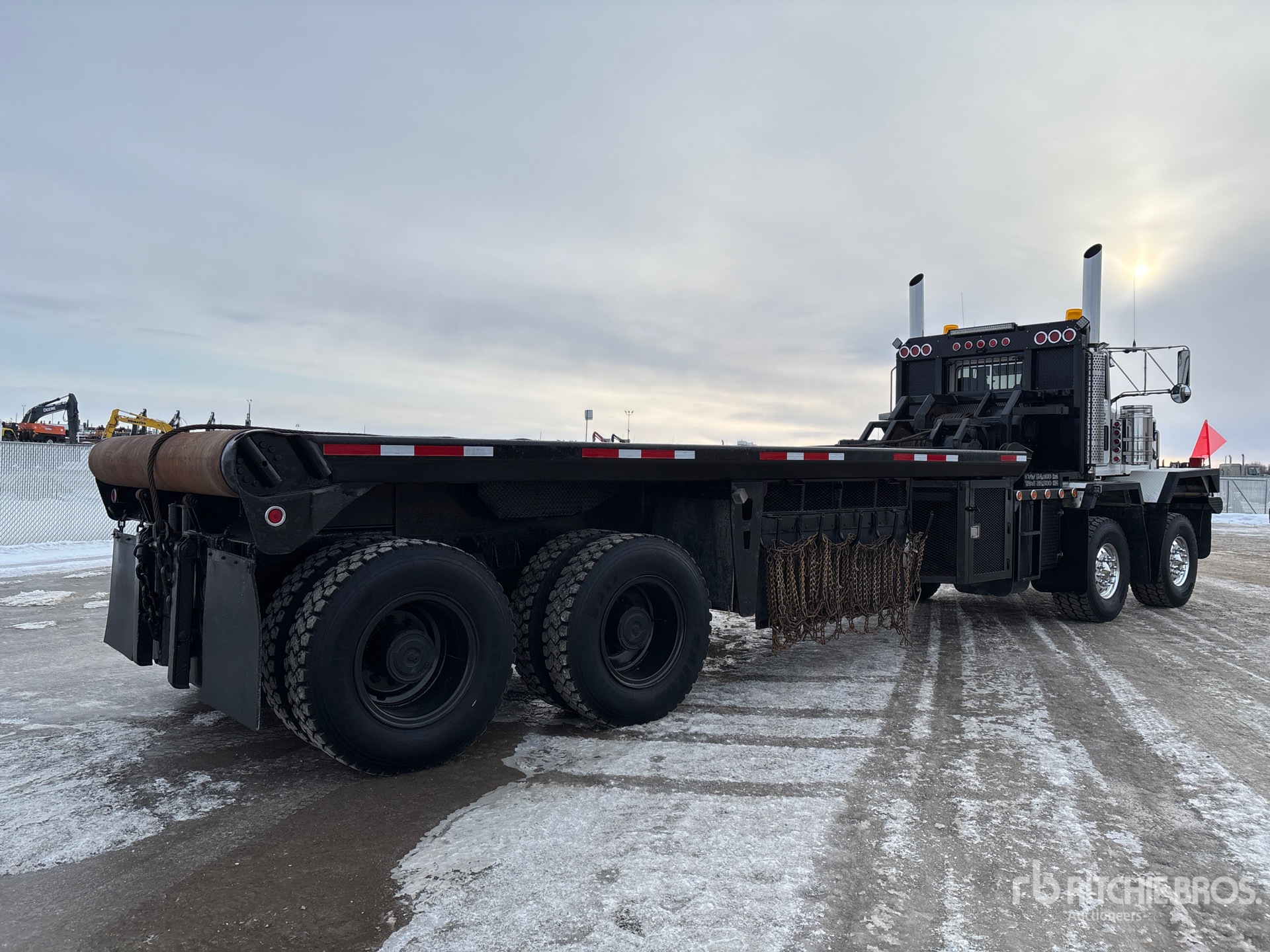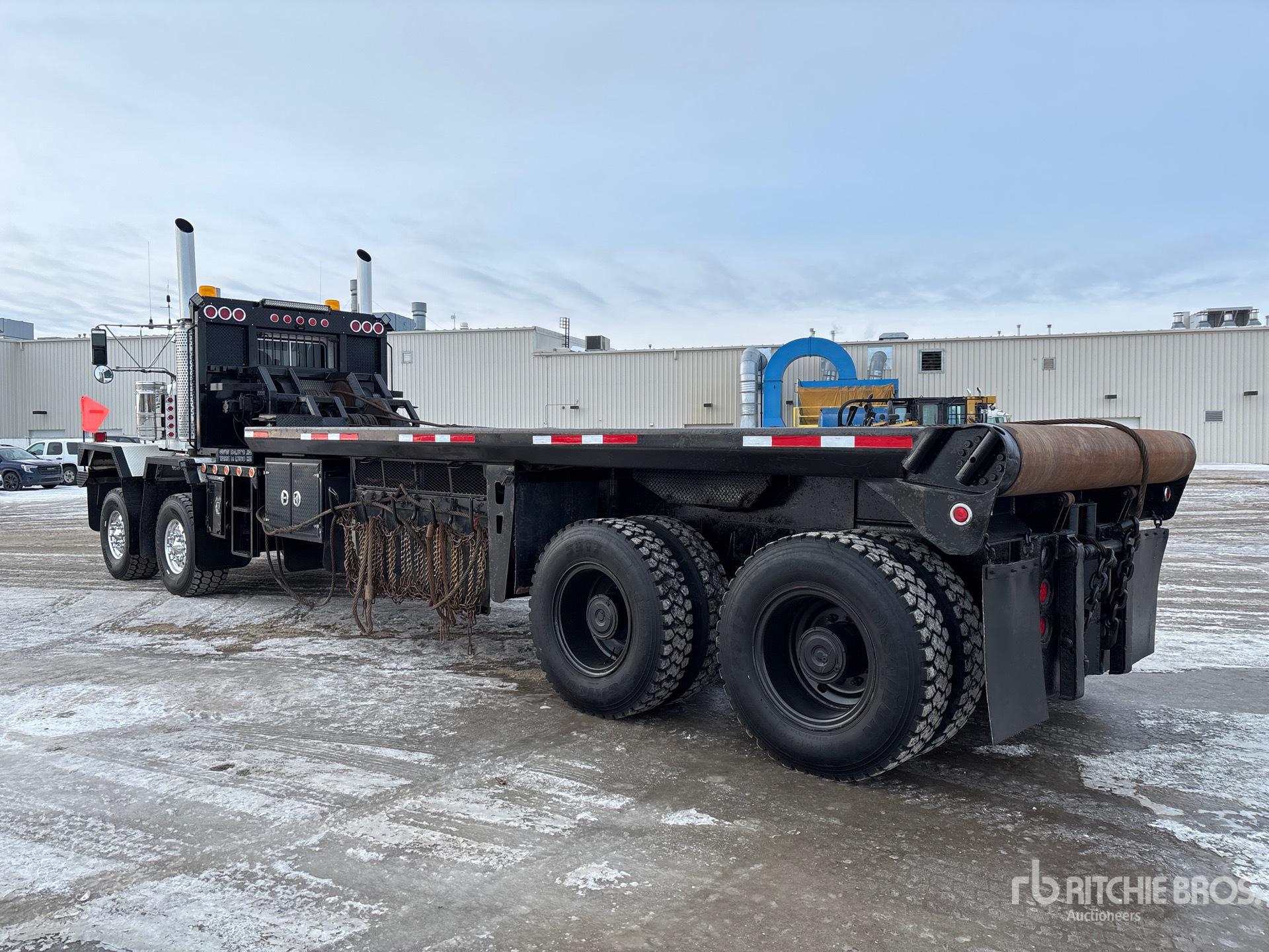 Cat C15 6 Cylinder 15.2 cid Diesel 475 hp Engine, Positive Air Shutoff, 8436 Engine hrs, Engine Brake, Eaton Fuller RTLO-18918B 18-Speed Manual Transmission, Eaton Fuller APO17504C 4-Speed Auxiliary Transmission, Double Differential Locks, 36000 lb Front Axle, 65000 lb Rears, Sisu FR2P32S Planetary Drive Axles, 6.36:1 Axle Ratio, 101000 lb GVWR, Aluminum Front Wheels, 445/65R22.5 Front Tires, 12.00R24 Rear Tires, Dual Steering Boxes, Double Frame, Chalmers Rubber Suspension, 324 in Wheelbase, 23 ft x 108 in Bed, Center Roll, Live Roll, 21 ft 6 in Double Frame Gin Poles, Tulsa 50 Ton Hydraulic Winch, Tulsa Hydraulic Winch, Flip-Over 5th-Wheel Pintle Hitch