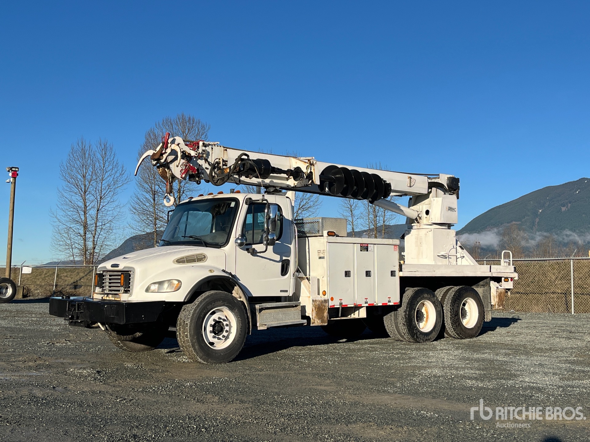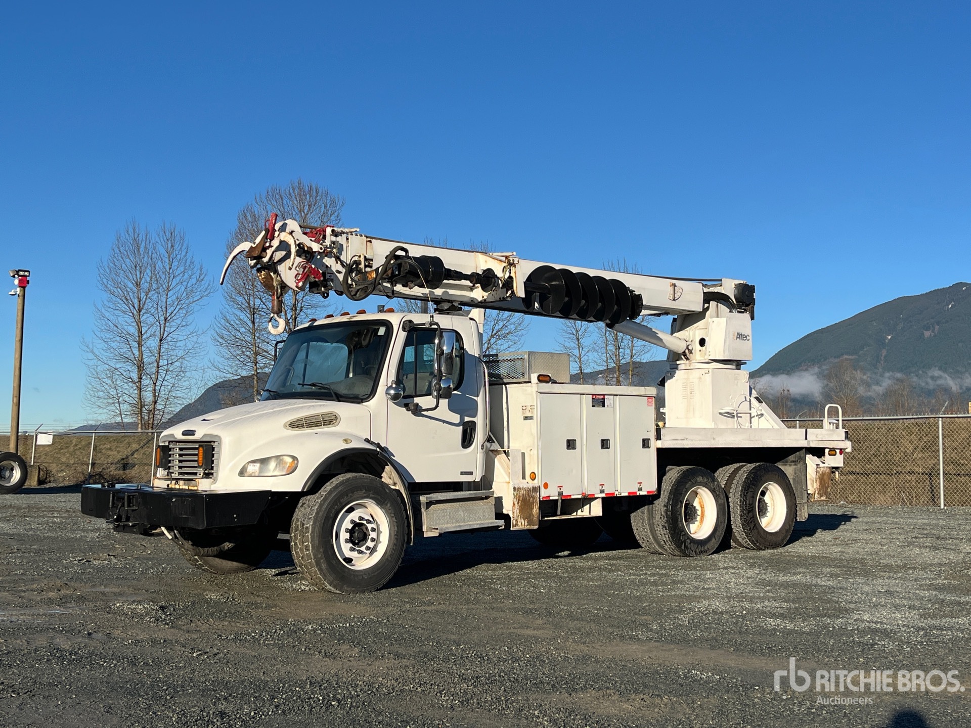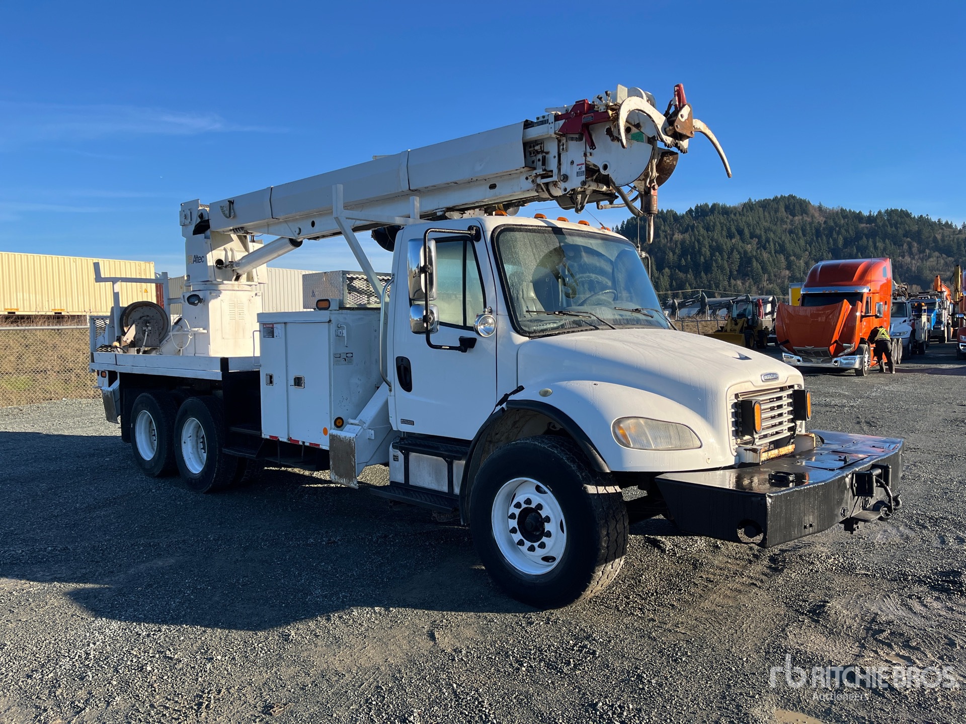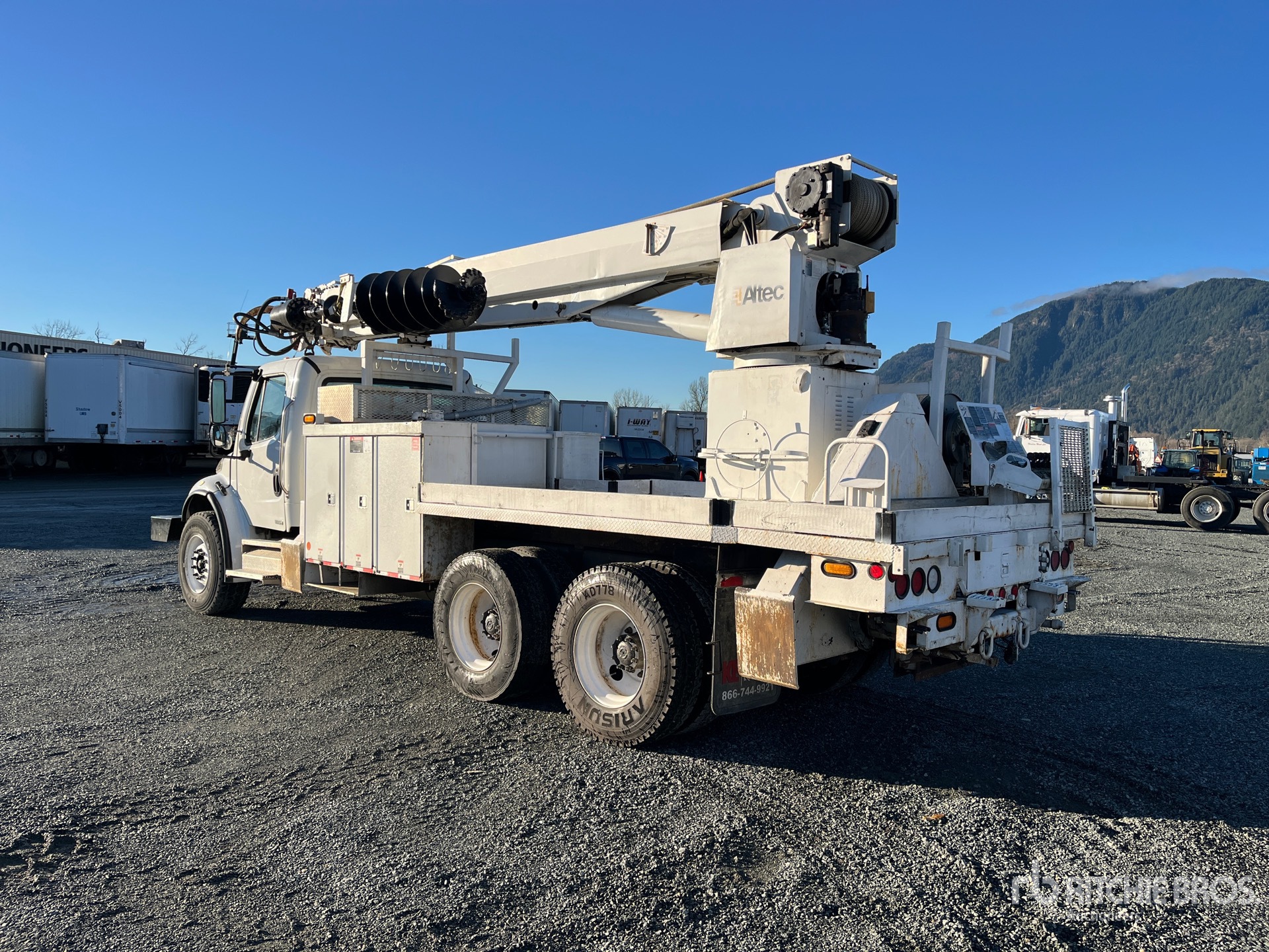 Cat C7 6 Cylinder Diesel 250 hp Engine, 15323 Engine hrs, Allison Automatic Transmission, Differential Lock, 14600 lb Front Axle, 40000 lb Rears, 54600 lb GVWR, 385/65R22.5 Front Tires, 11R22.5 Rear Tires, Double Frame, Spring Suspension, 212 in Wheelbase, PTO, 50 ft Sheave Height, 30000 lb Capacity, Rear Mounted, 18 in Auger, Turret Mounted Winch, Material Handling Jib, 20 ft Body, A-Outriggers, Cordless Remote Control, Bumper Mounted Winch, Air Hose Reel