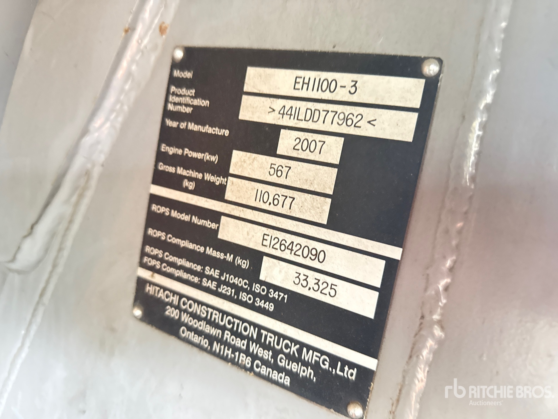 A qualified Ritchie Bros. employee collected detailed equipment information and performed functional tests on the key components of this asset. You, or a proxy, may also inspect any items on site prior to bidding on auction day.