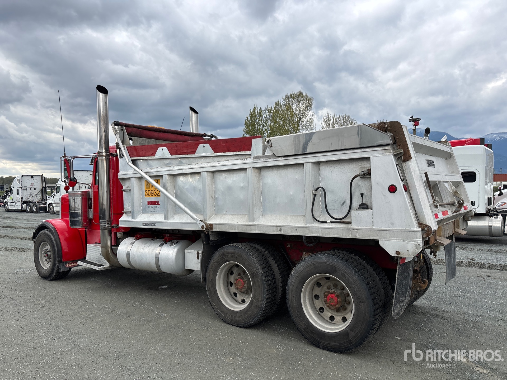 Cummins ISX 6 Cylinder Diesel Engine, 4079 Engine hrs, Engine Brake, Eaton Fuller 18-Speed Manual Transmission, Differential Lock, 9072 kg Front Axle, 20864 kg Rears, 66000 lb GVWR, Air Ride Cab, Aluminum Wheels, 425/65R22.5 Front Tires, 11R24.5 Rear Tires, Double Frame, Chalmers Rubber over Walking Beam Suspension, 238 in Wheelbase, PTO, Knight 16 ft 6 in Long Aluminium Body, Electric Roll Tarp, High-Lift Tailgate, Rear Hydraulics, Tailgate Chute, Pintle Hitch