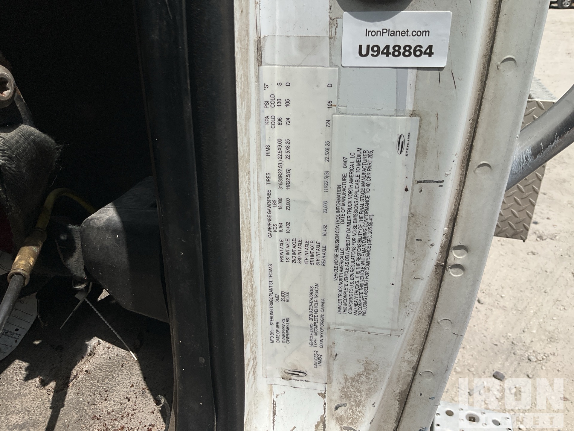 Mercedes-Benz MBE4000 781 cid Diesel 450 hp Engine, 2006 US EPA Label, 32152 Engine hrs, Engine Brake, Eaton Fuller FRO-15210C 10-Speed Manual Transmission, Differential Lock, 18000 lb Front Axle, 46000 lb Rears, Meritor RT-46-160 Drive Axles, 4.30:1 Axle Ratio, 64000 lb GVWR, Air Ride Cab, Aluminum Outer Wheels, 11R22.5 Front Tires, 11R22.5 Rear Tires, Double Frame, Airliner Air Ride Suspension, 233 in Wheelbase, PTO, Steel 4600 gal Debris Tank, Manual Tailgate Locks, PTO Driven Pump