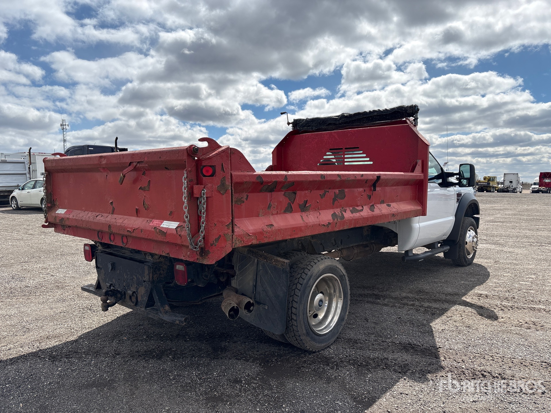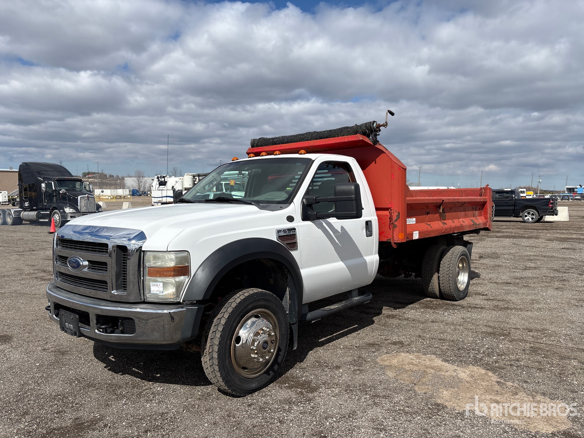 Ford V8 Diesel Engine, Automatic Transmission, 7000 lb Front Axle, 13660 lb Rears, 19000 lb GVWR, 225/70R19.5 Front Tires, 225/70R19.5 Rear Tires, Spring Suspension, 165 in Wheelbase, Multivans 10 ft 8 in Long x 1 ft 8 in High Steel Body, Manual Roll Tarp, Rear Hydraulics, Pintle Hitch