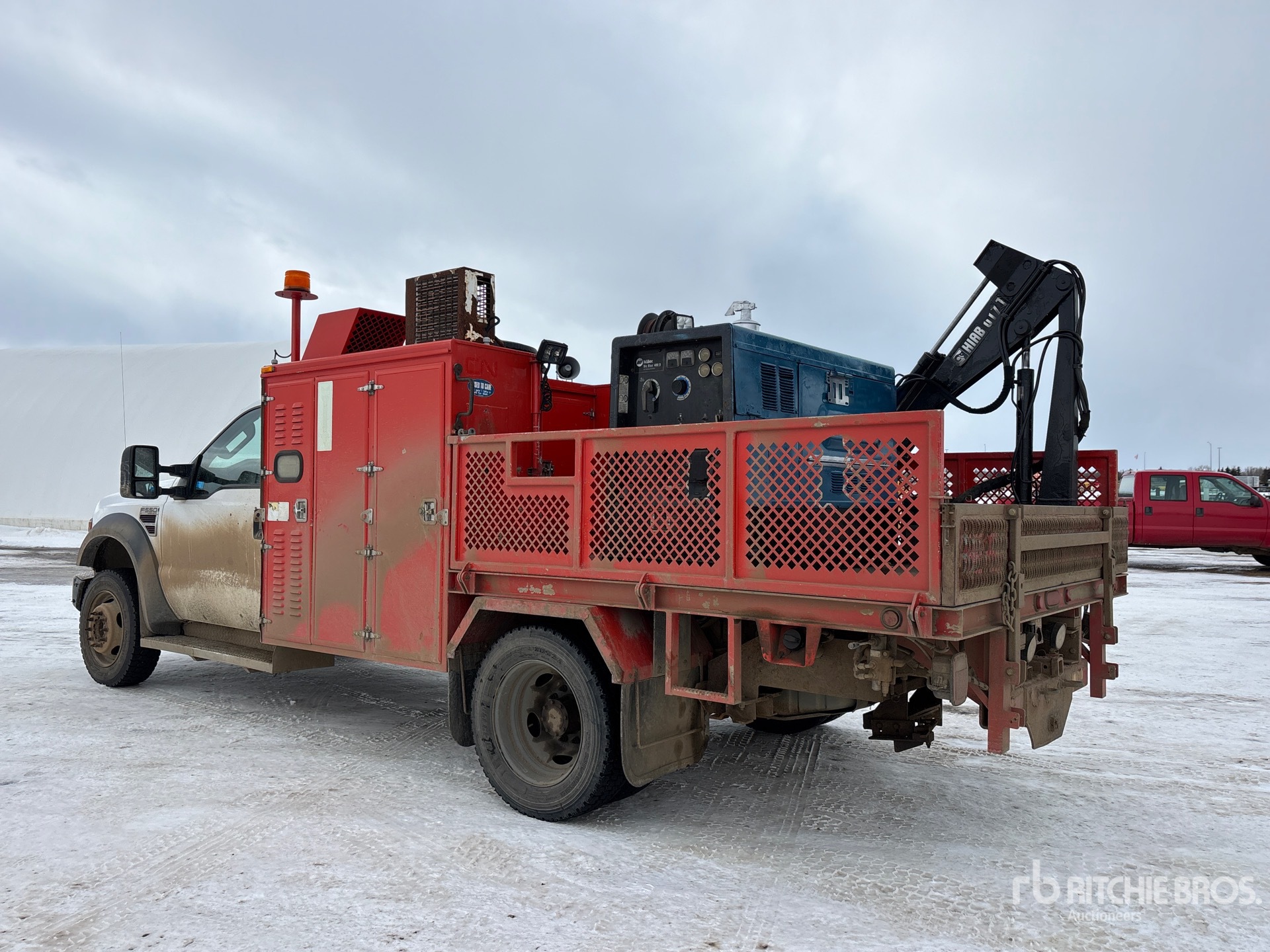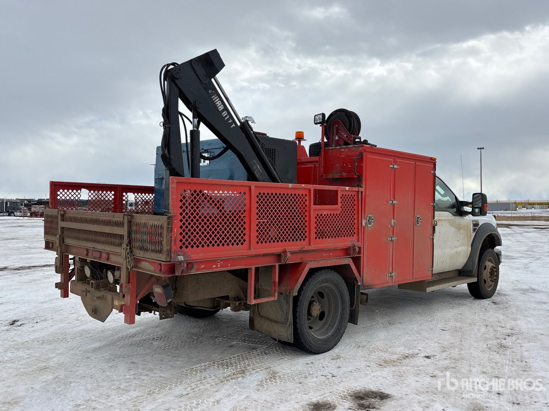 Located in Lane 41 Spot 13, V8 6.4 L Diesel Engine, Automatic Transmission, 7000 lb Front Axle, 13660 lb Rears, 19500 lb GVWR, 225/70R19.5, Spring Suspension, 165 in Wheelbase, 12 ft 8 in Body, Hiab 3 Section Hydraulic Crane, VMAC Air Compressor, Air Hose Reel, Miller Big Blue 400 D Welder