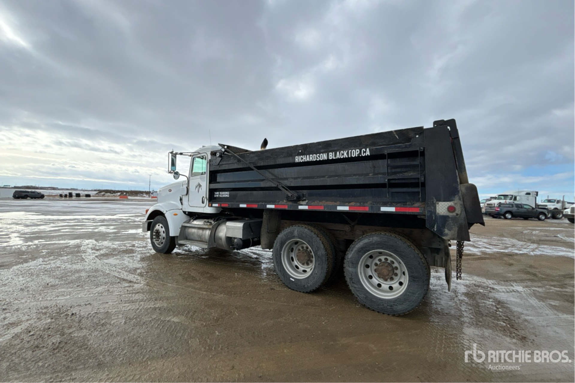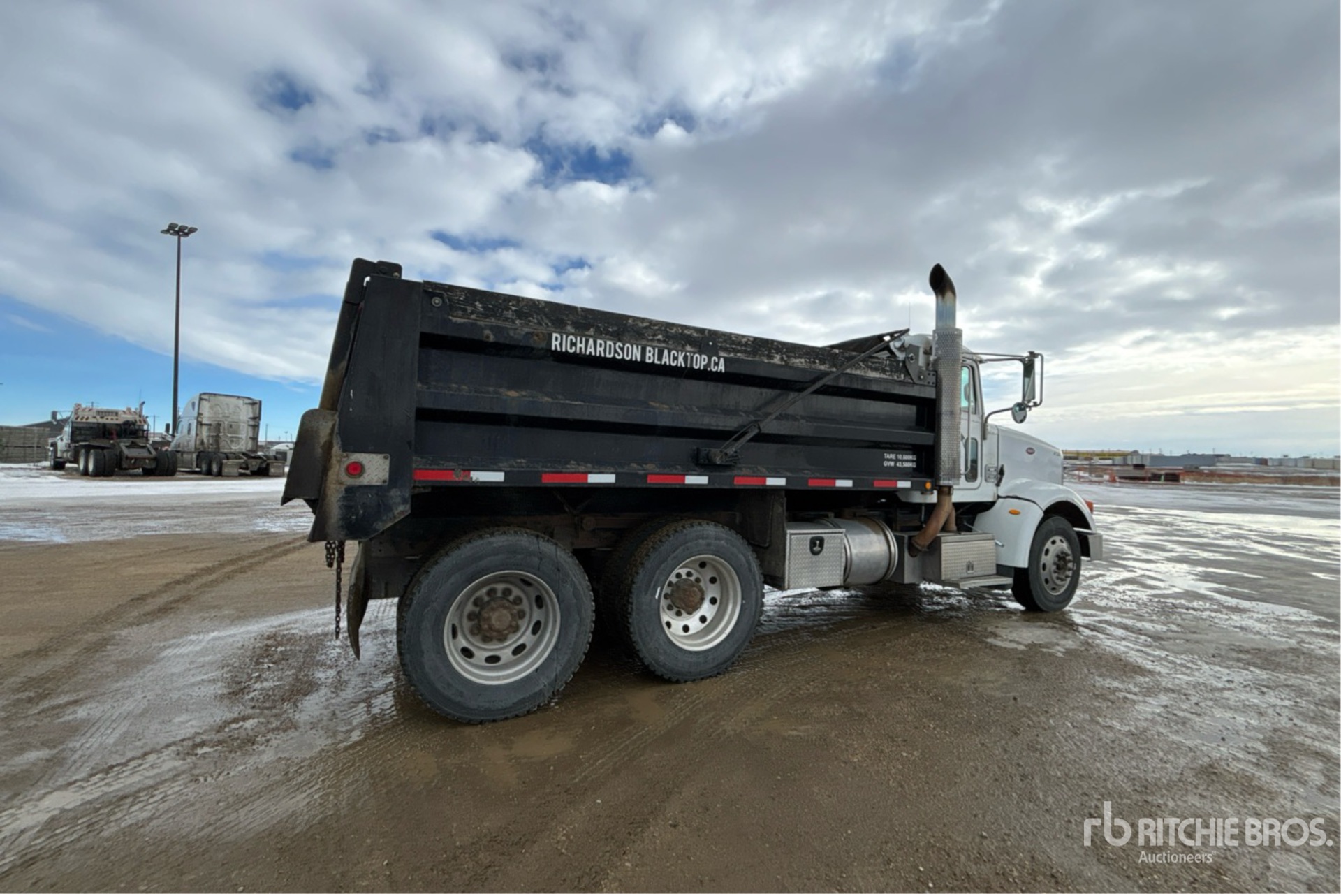 Located in Lane 42 Spot 39, Cummins ISX 6 Cylinder 15 L Diesel 485 hp Engine, 2007 US EPA Label, CARB Compliant, Engine Brake, Allison 6-Speed Automatic Transmission, Differential Lock, 14320 lb Front Axle, 46000 lb Rears, 60320 lb GVWR, Air Ride Cab, Aluminum Wheels, 11R24.5, Air Trac Air Ride Suspension, 202 in Wheelbase, PTO, Fort Garry Industries 15 ft Long x 3 ft 4 in High Body, Electric Roll Tarp