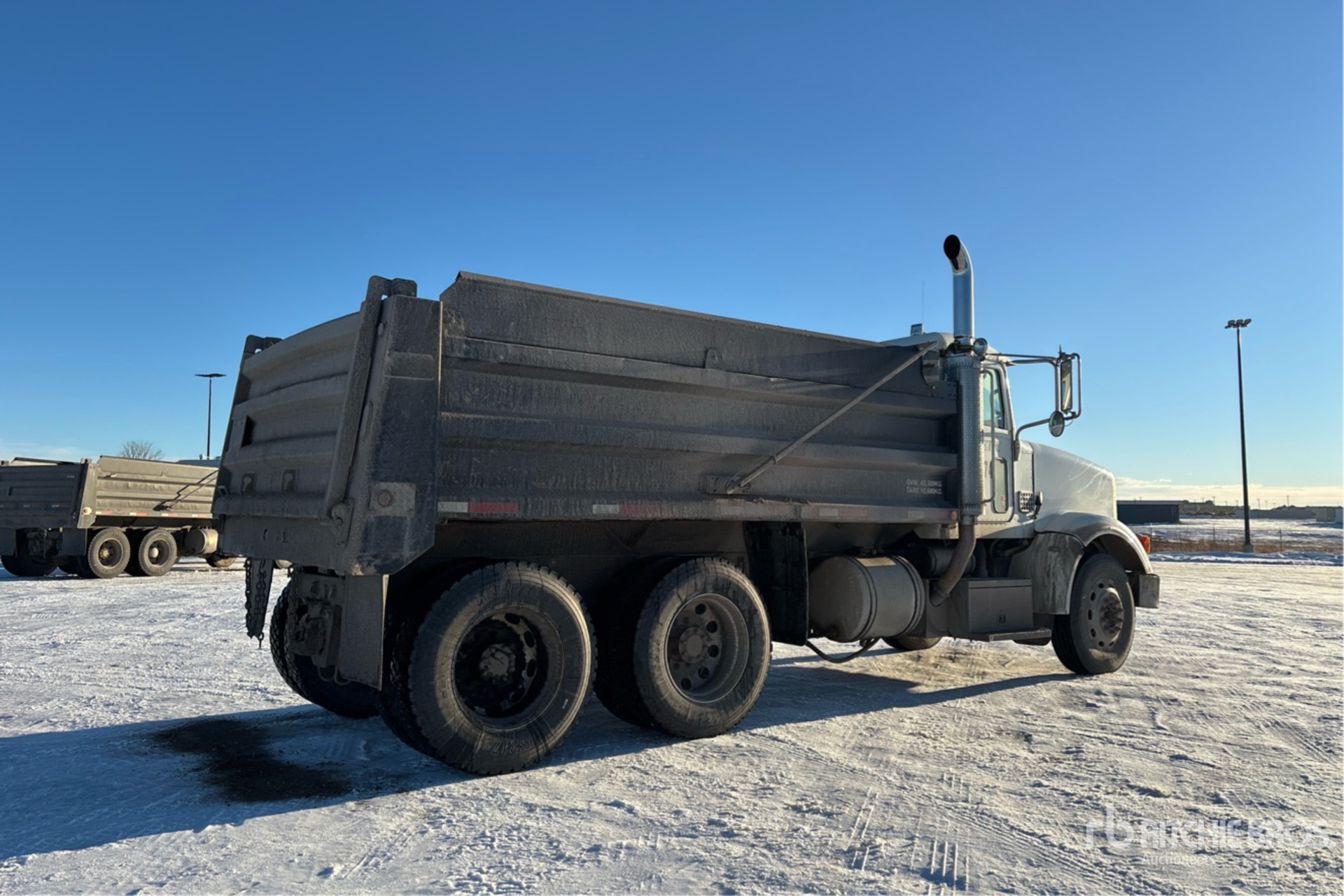 Cummins ISX 6 Cylinder 15 L Diesel Engine, 2007 US EPA Label, 23787 Engine hrs, Engine Brake, Eaton Fuller 18-Speed Manual Transmission, Double Differential Locks, 14320 lb Front Axle, 46000 lb Rears, 60320 lb GVWR, Air Ride Cab, Aluminum Wheels, 11R24.5, Air Ride Suspension, 204 in Wheelbase, PTO, 15 ft Long x 4 ft High Steel Body, Electric Roll Tarp, Rear Hydraulics