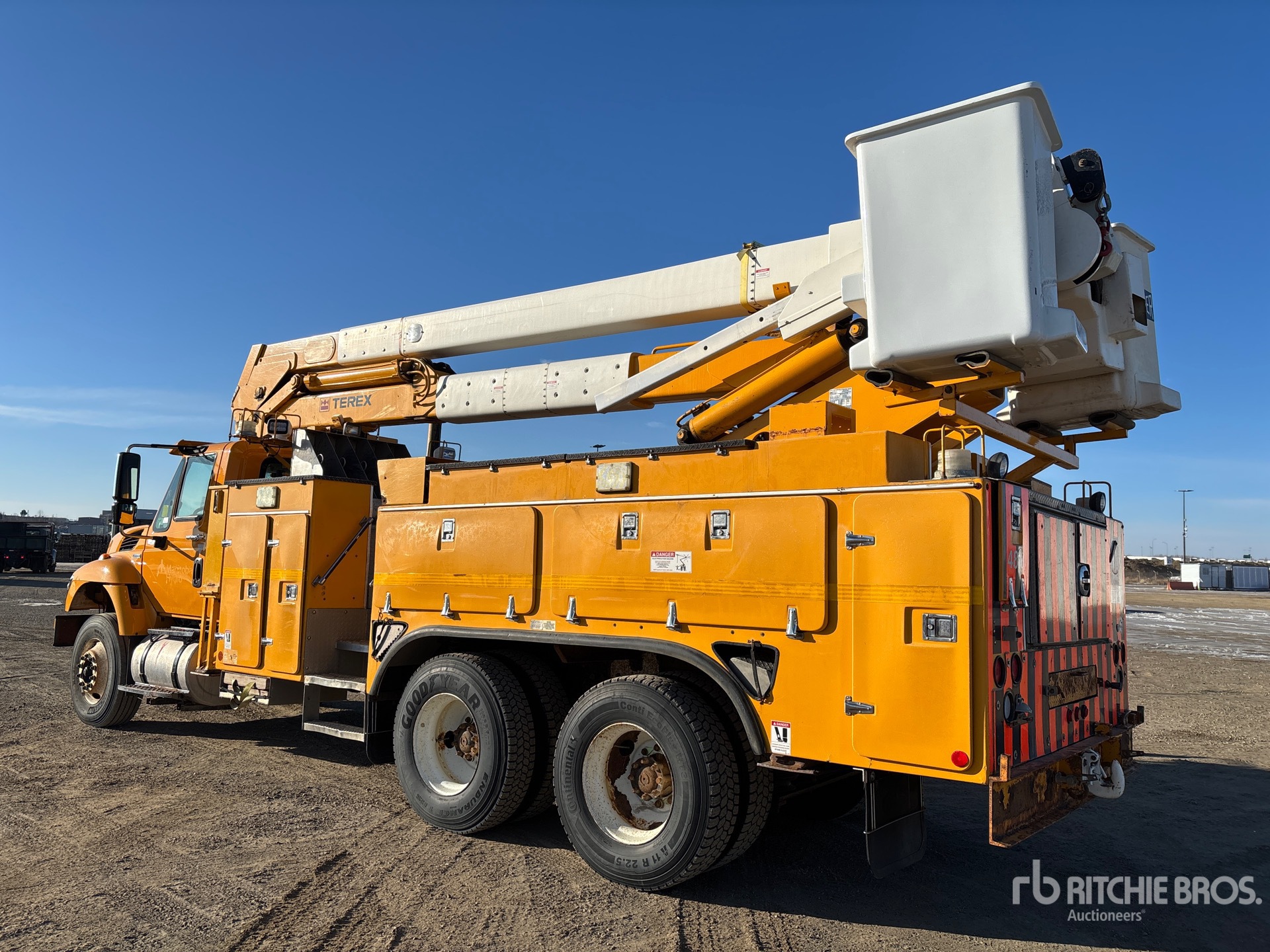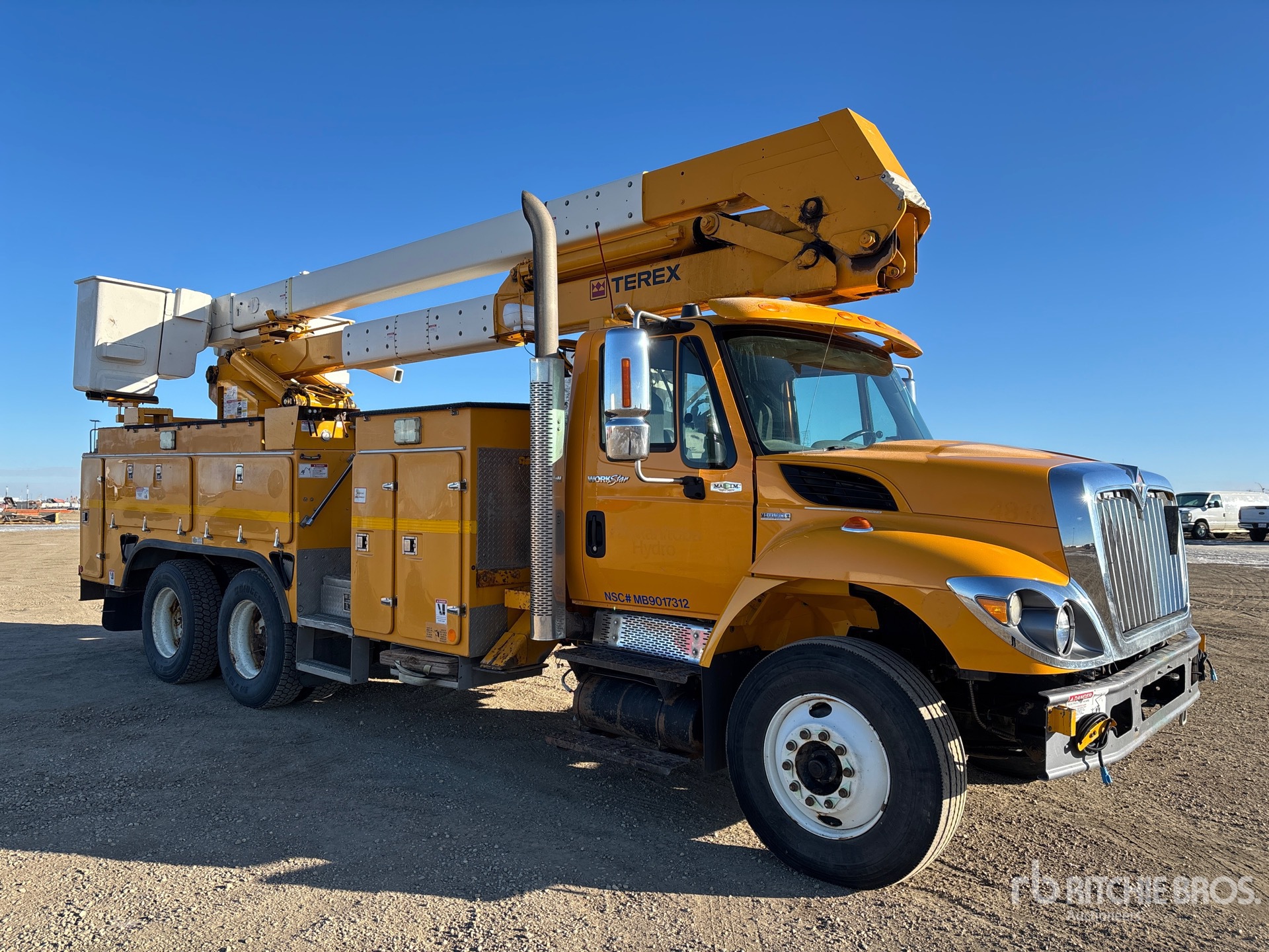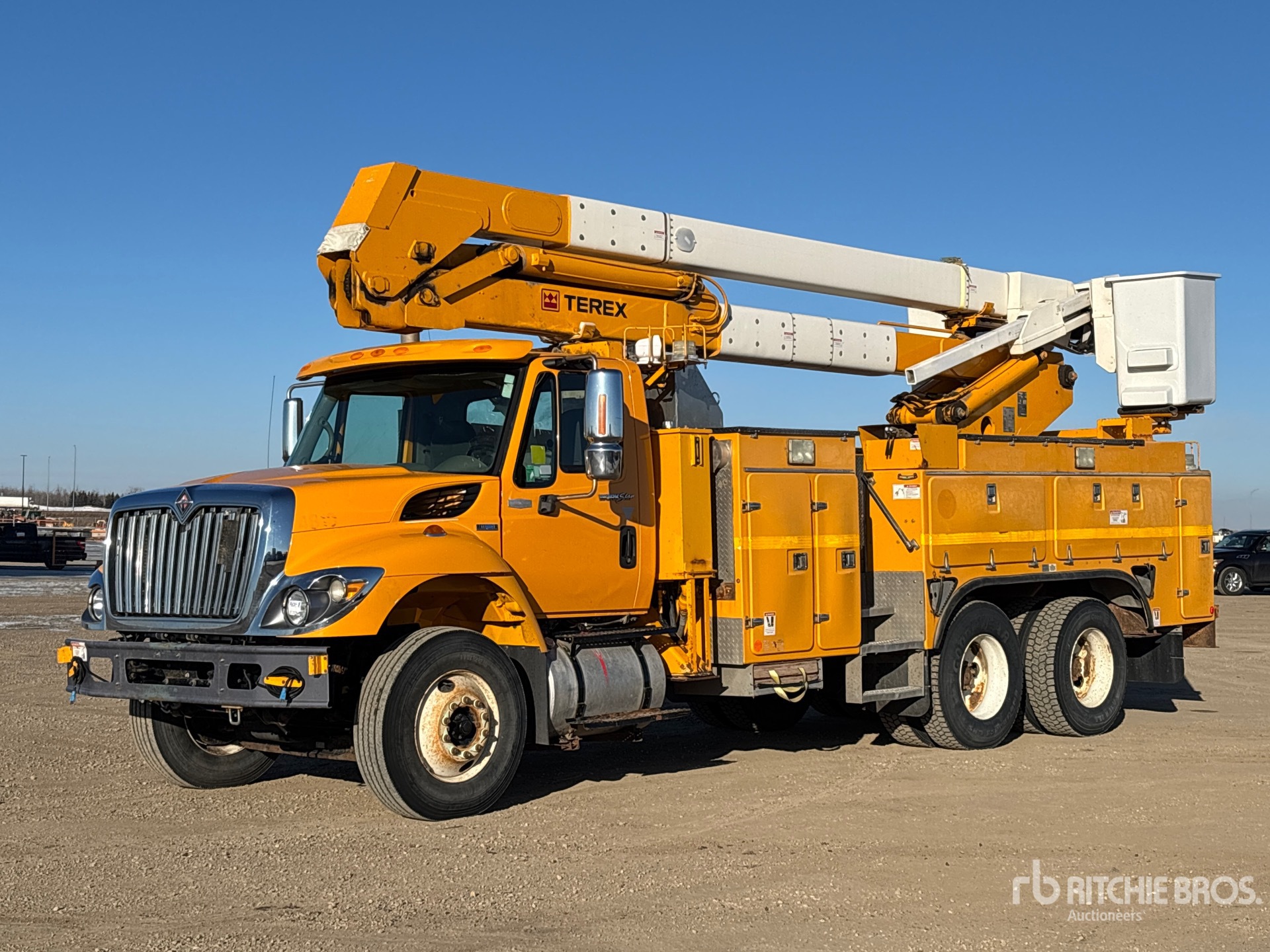 Located in Lane 39 Spot 22, International Maxxforce 10 6 Cylinder 9.3 L Diesel 350 hp Engine, 2008 US EPA Label, Webasto Engine Coolant Heater, 13126 Engine hrs, Allison 6-Speed Automatic Transmission, Differential Lock, 12350 lb Front Axle, 40000 lb Rears, 52350 lb GVWR, 11R22.5, Hendrickson Air Ride Suspension, 218 in Wheelbase, PTO, 600 lb Capacity, Rear Mounted, Two-Person Articulated Boom, Utility Body, Boom Tip Mounted Winch, Material Handling Jib, A-Outriggers, Rear Outriggers, Hydraulic Hose Reel, Pintle Hitch
