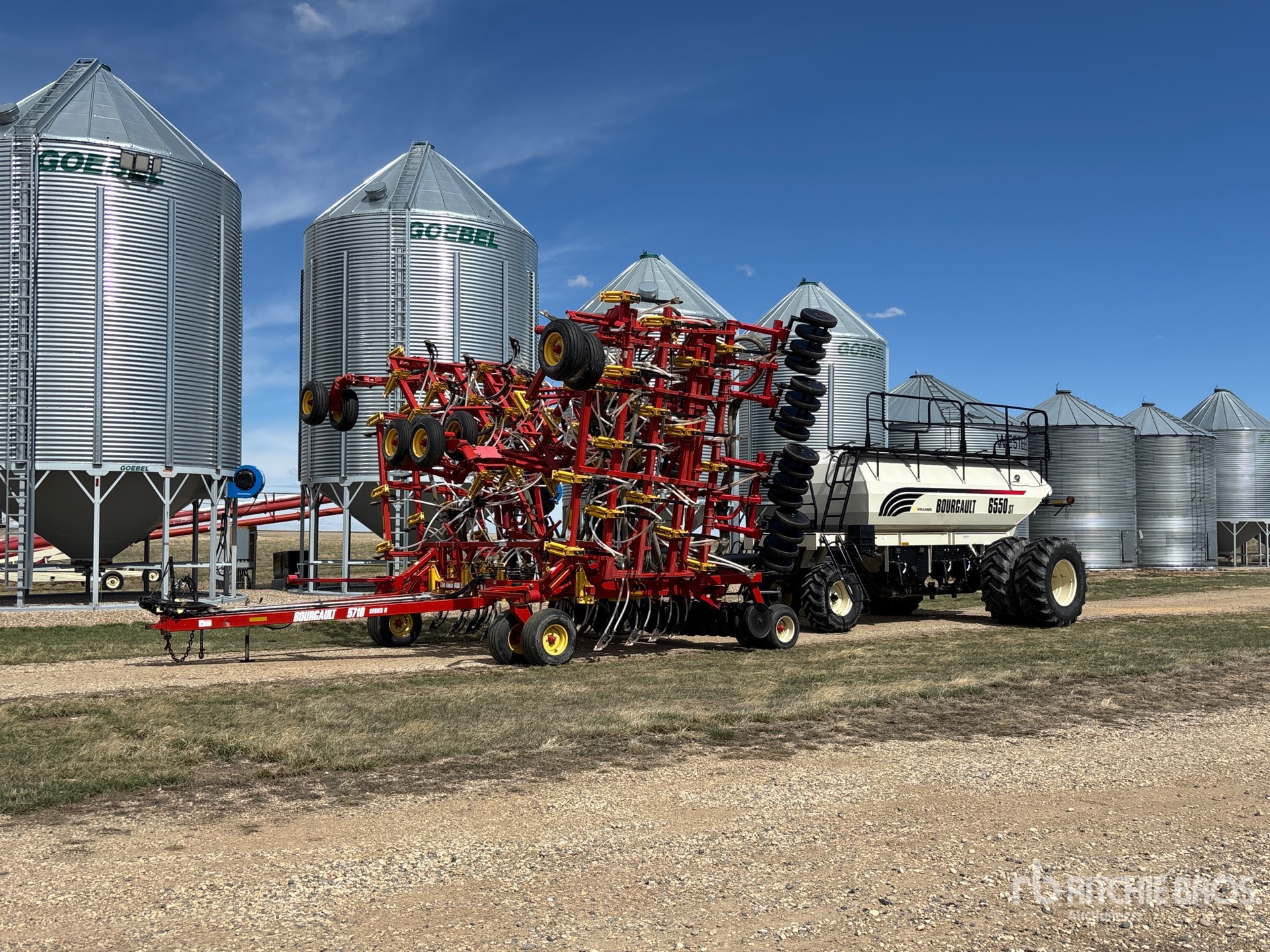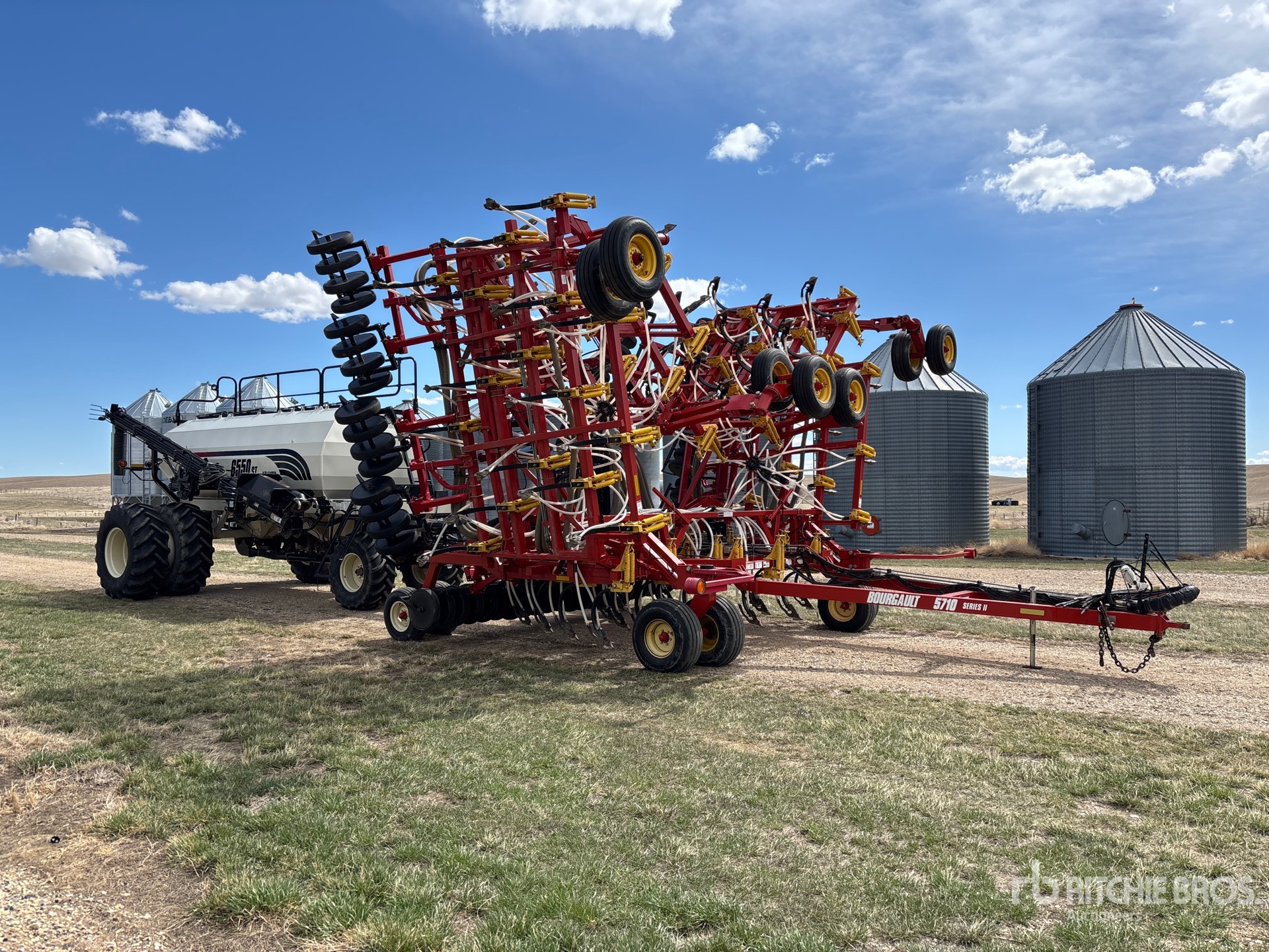9.8 in Spacing, Double Shoot, Rubber Capped Steel 4 in Packer, 2012 Bourgault 6550ST 550 bu Air Cart, Tank S/N 40774AS15 Double Fan, 10 in Auger Loading System, Bourgault 491 Display