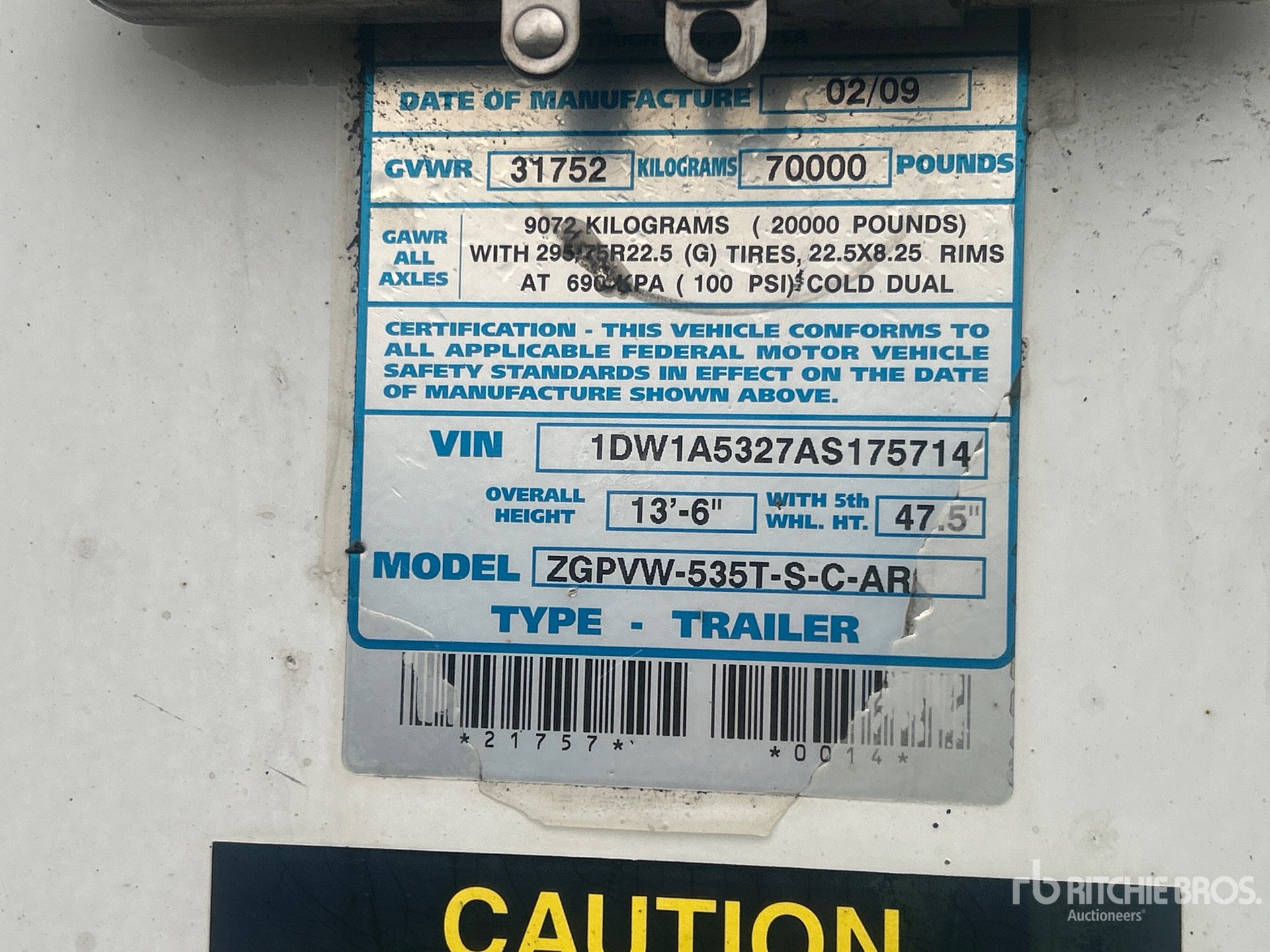 Located in Lane 32 Spot 48, Air Ride Sliding Suspension, Side Skirts, Hardwood Floor, Swing Door, 295/75R22.5 Tires 70000 lb GVWR
