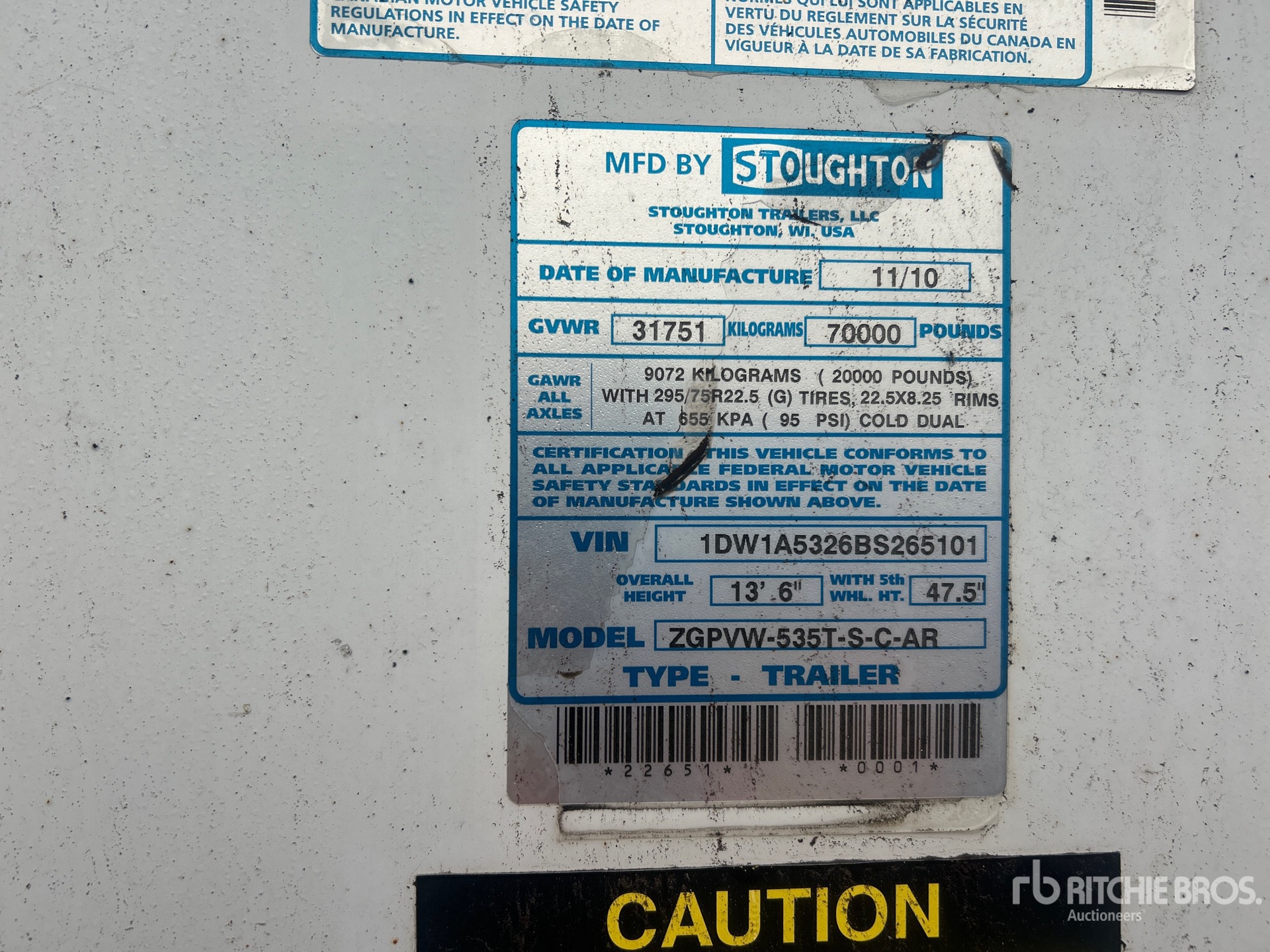 The detailed equipment information is limited in scope, and Ritchie Bros. Auctioneers has not inspected any aspects or components of the equipment other than those expressly set forth herein. Unless expressly stated, we make no representations or warranties, express or implied, concerning the equipment or its components, including without limitation any representations or warranties concerning functionality, conformity or compliance with any safety standard or requirement of any applicable authority or regulatory body, fitness for any particular purpose, or merchantability. You are strongly advised to perform your own detailed inspection of the equipment prior to bidding.