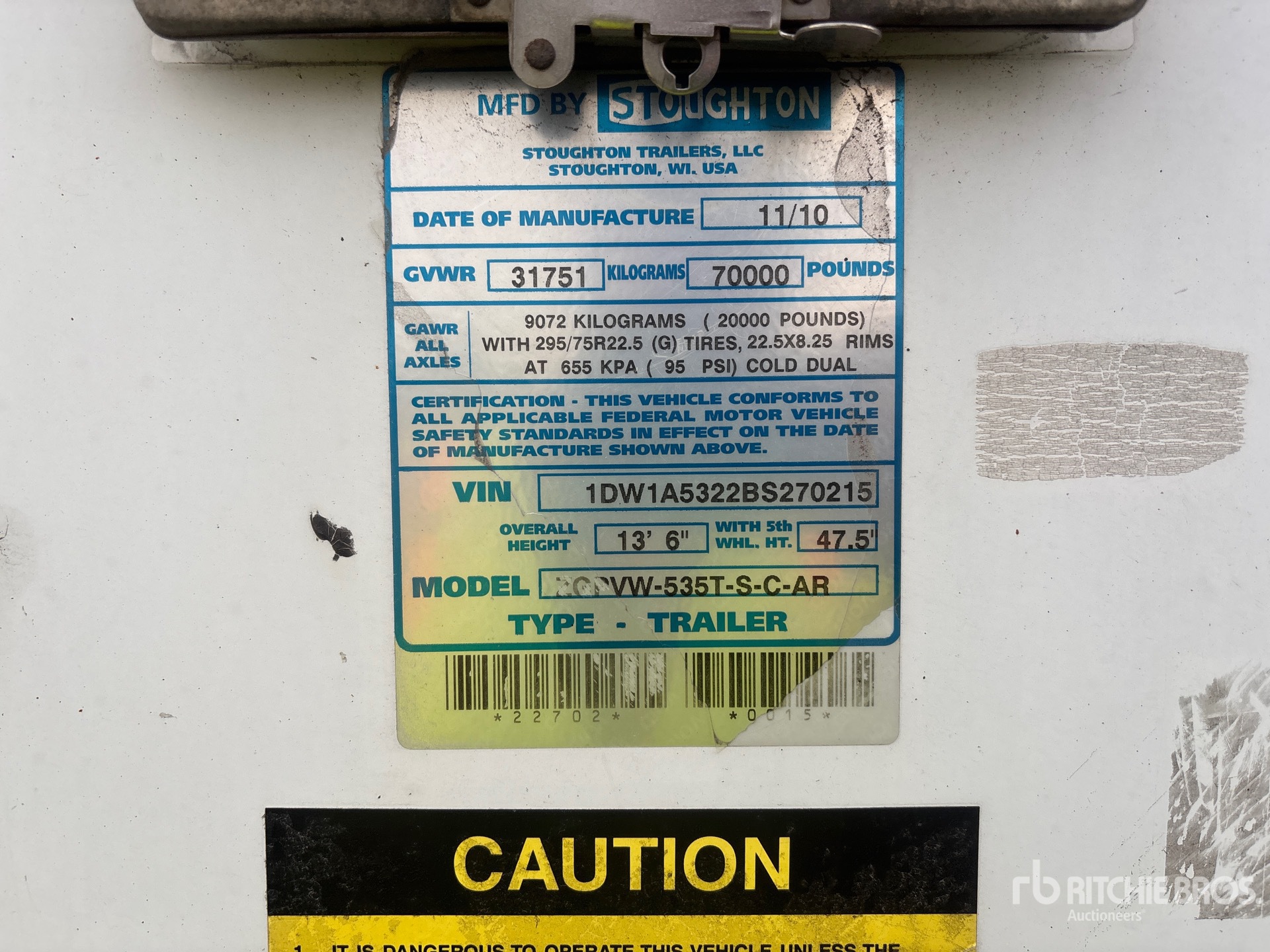 Located in Lane 32 Spot 47, Air Ride Sliding Suspension, Side Skirts, Hardwood Floor, Swing Door, 295/75R22.5 Tires 70000 lb GVWR