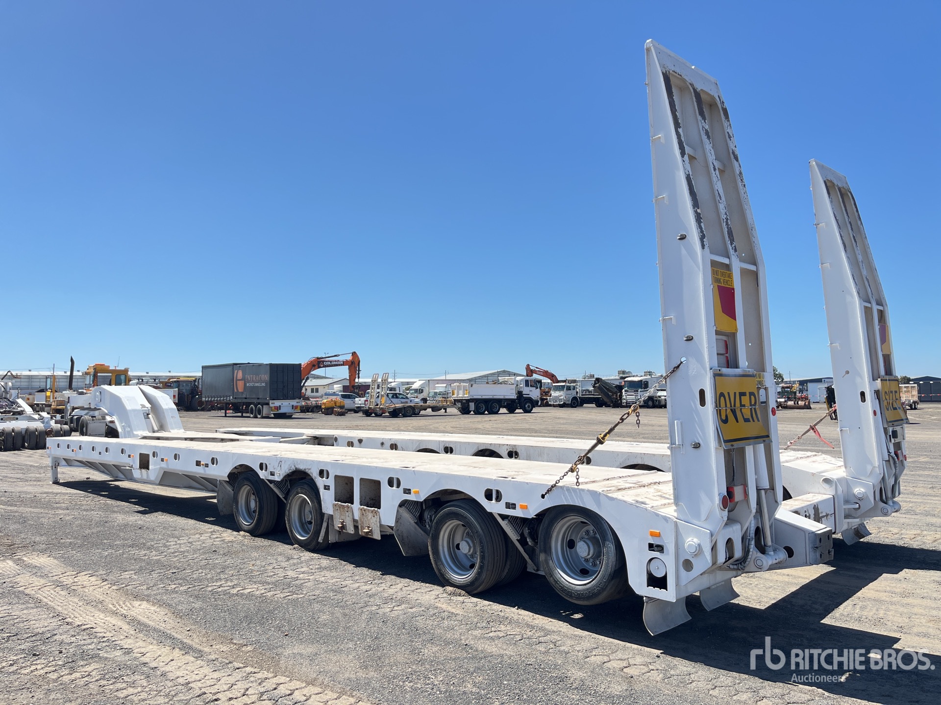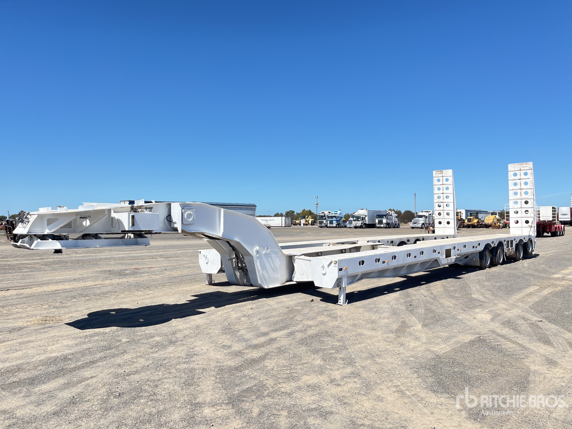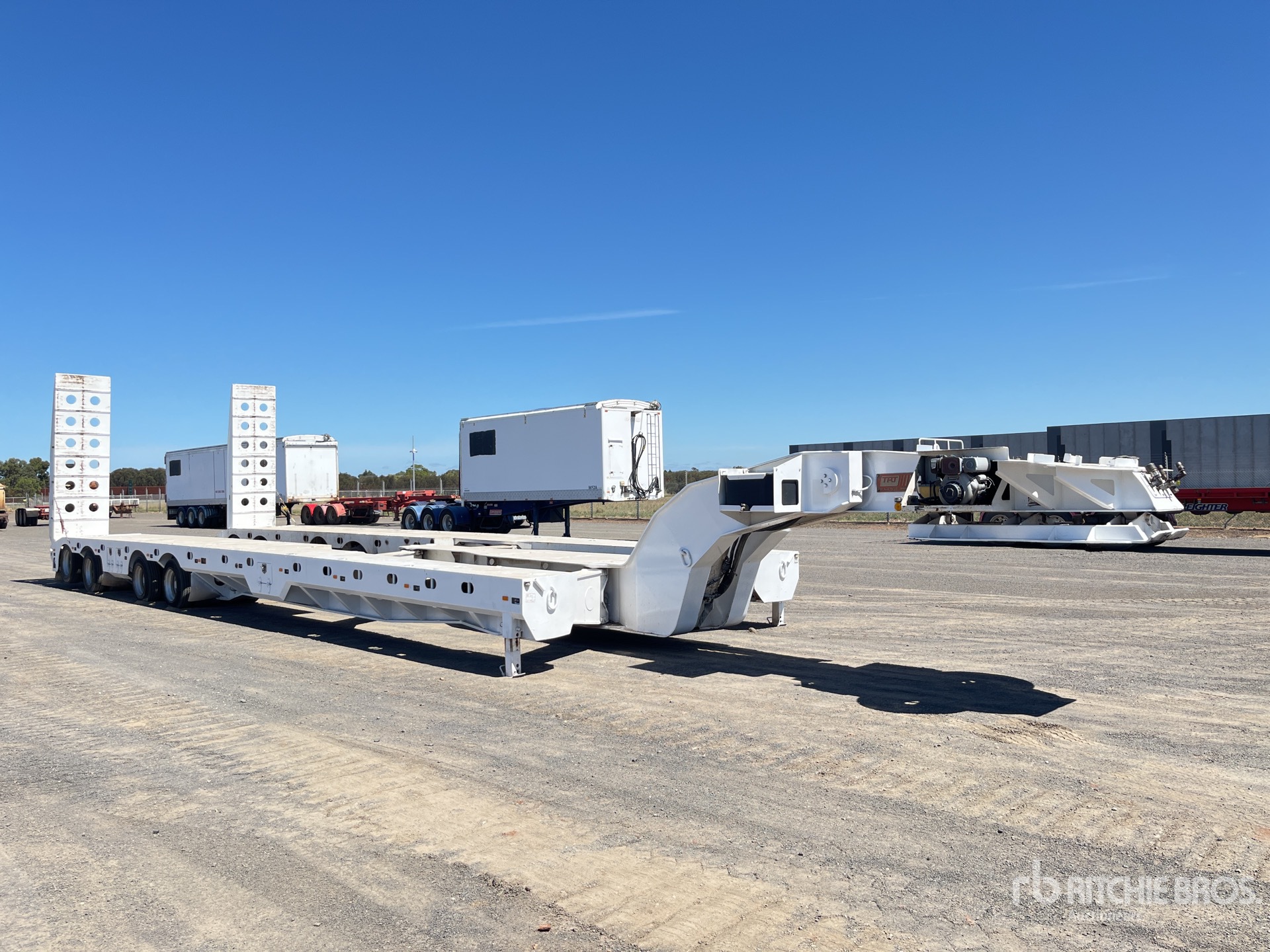 Hydraulic Suspension, Lift 1st- 2nd- 3rd- 4th- Axles, 20+20 ft - 40 ft - Container Pins, 14 m Main Deck, 4.2 m Widening Width, Hydraulic Ramps, Yanmar Diesel Powered Self Contained Hydraulic System, 215/75R17.5 Tires, ATM 120 t, Two Position King Pin