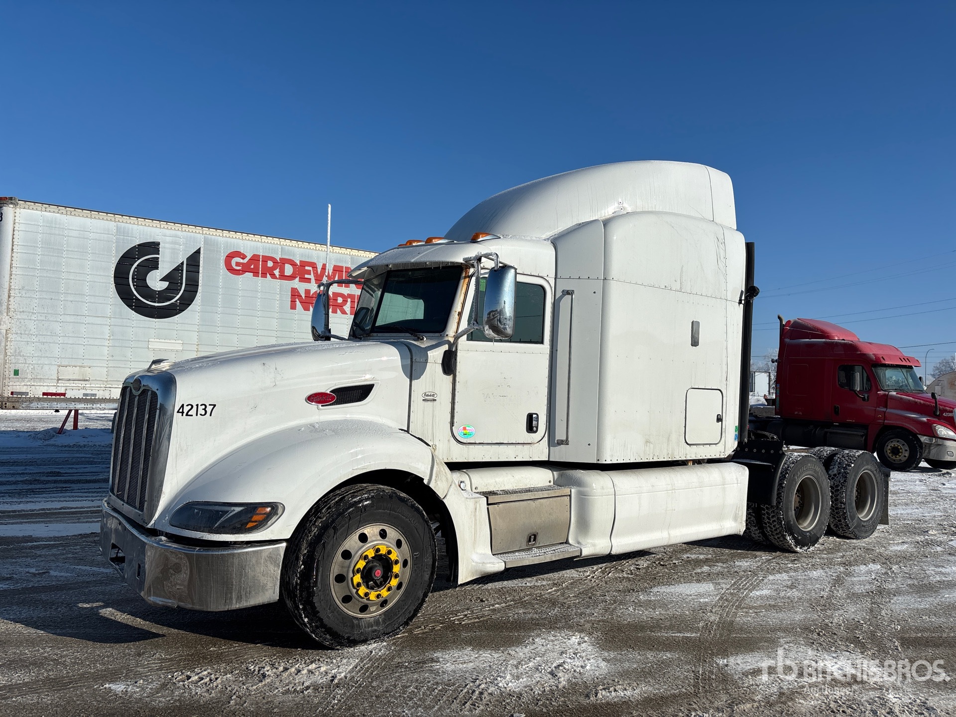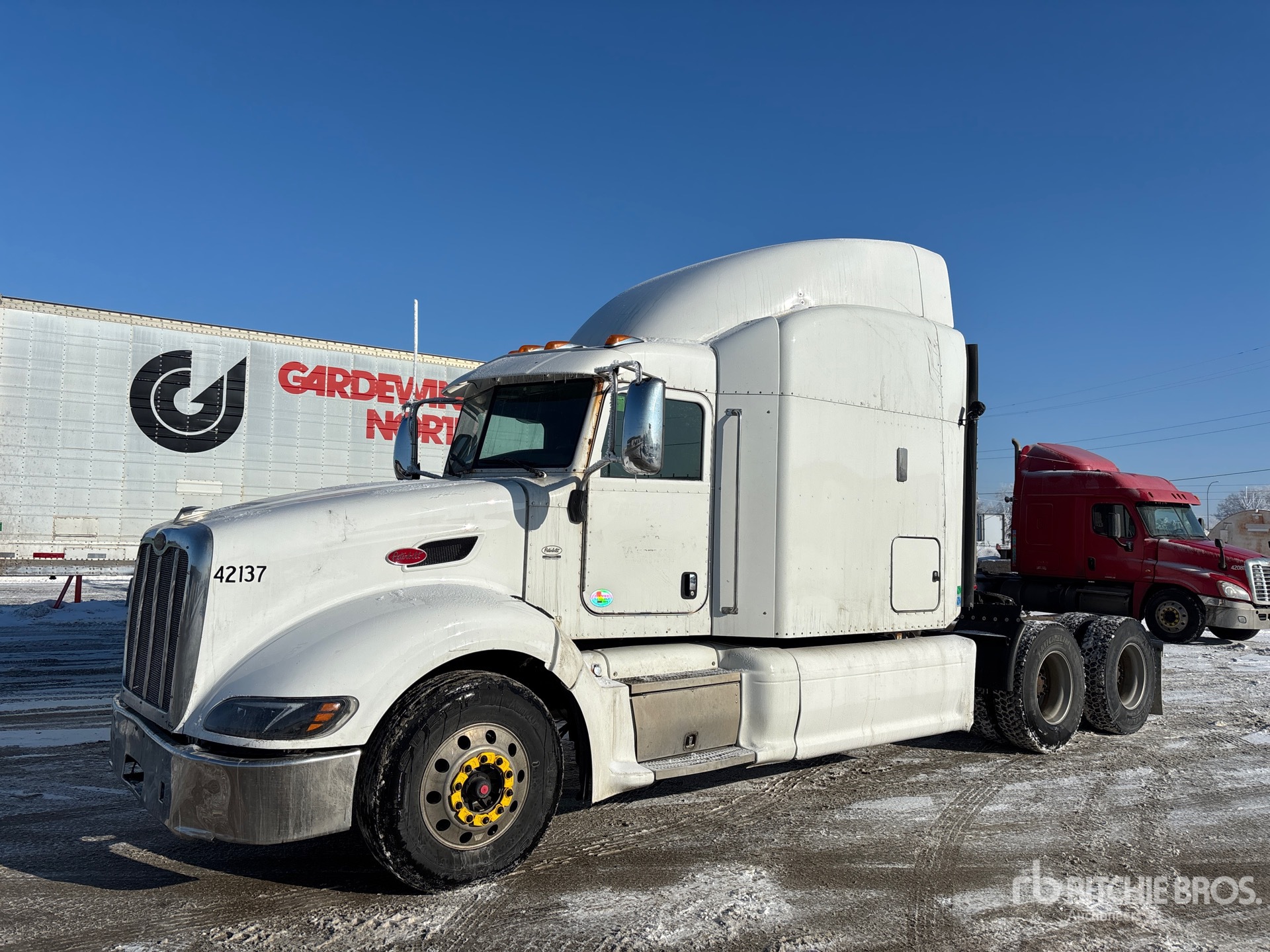 Paccar 455 hp Engine, 2011 US EPA Label, Eaton Fuller 13-Speed Manual Transmission, 12000 lb Front Axle, 40000 lb Rears, 52000 lb GVWR, Engine Brake, Differential Lock, 63 in Sleeper Cab, Bunk Beds, Bunk Heater, 236 in Wheelbase, Air Suspension, Aluminum Wheels, 11R22.5 Front Tires, 11R22.5 Rear Tires, Air Sliding 5th Wheel, Dual Fuel Tanks