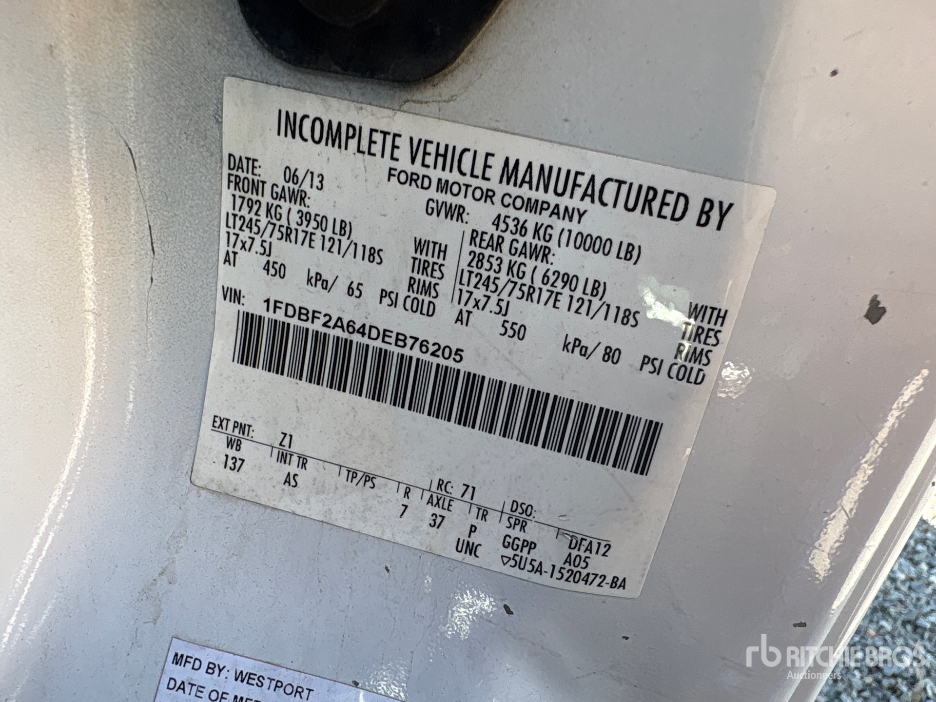 Ford V8 6.2 L Gasoline Engine, 2013 US EPA Label, Requires Diesel Exhaust Fluid, Automatic Transmission, 3950 lb Front Axle, 6290 lb Rears, 10000 lb GVWR, 245/75R17, Spring Suspension, 6 ft 4 in Body