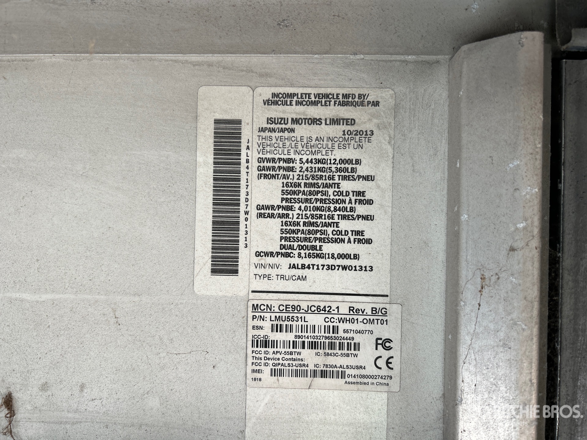 Isuzu Diesel Engine, 2013 US EPA Label, CARB Compliant, Requires Diesel Exhaust Fluid, Automatic Transmission, 5360 lb Front Axle, 8840 lb Rears, 12000 lb GVWR, 215/85R16, Spring Suspension, 152 in Wheelbase, 14 ft x 86 in Wide x 81 in High Body