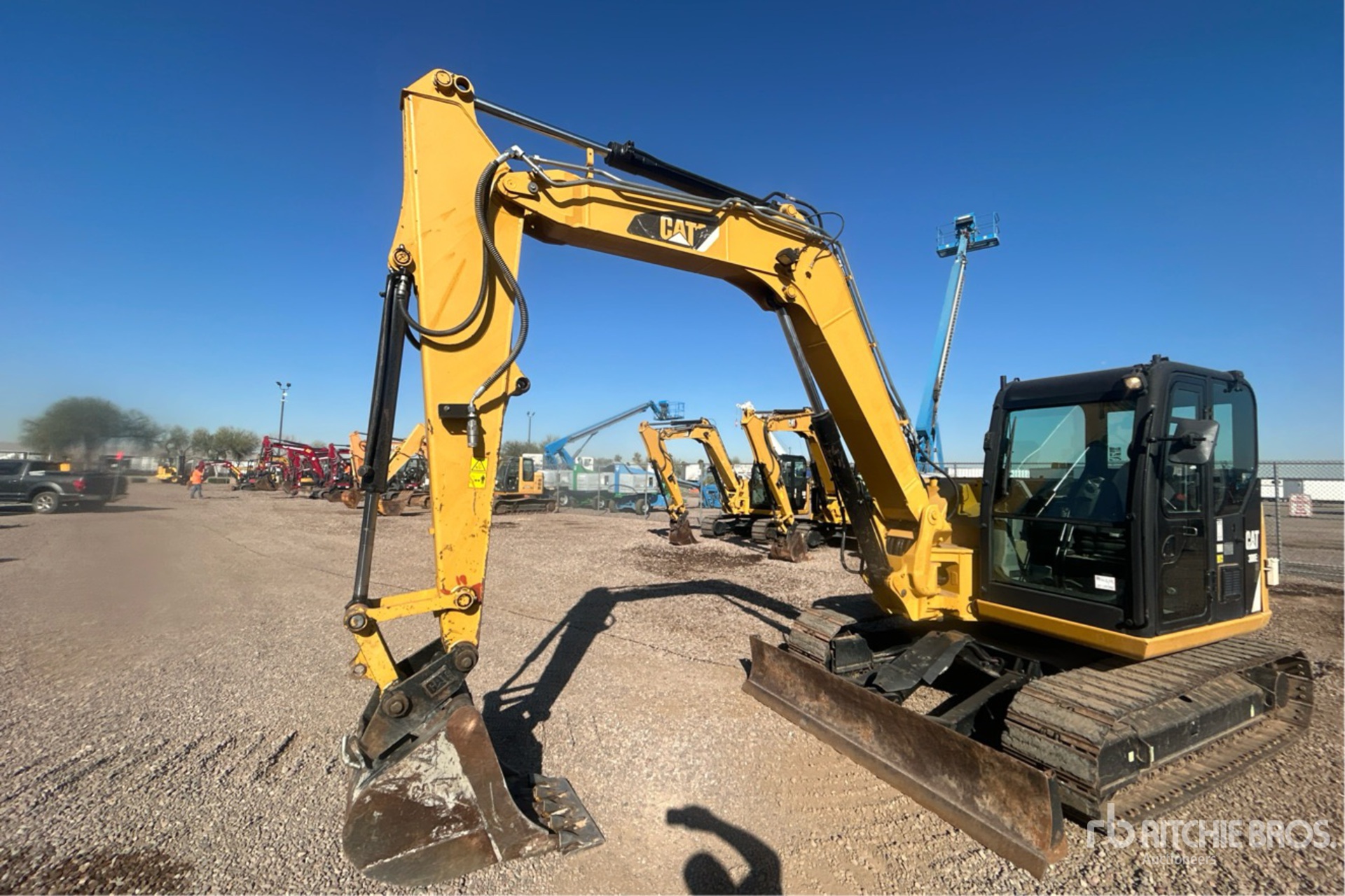 Located in Lane 6, Air Conditioner, Tier 4, 2014 US EPA Label, Swing Boom, 7 ft 2 in Stick, Auxiliary Hydraulic Plumbing, Backfill Blade, 17.75 in Triple Grouser Track Shoes w/Rubber Inserts, 24 in Cleanup Bucket