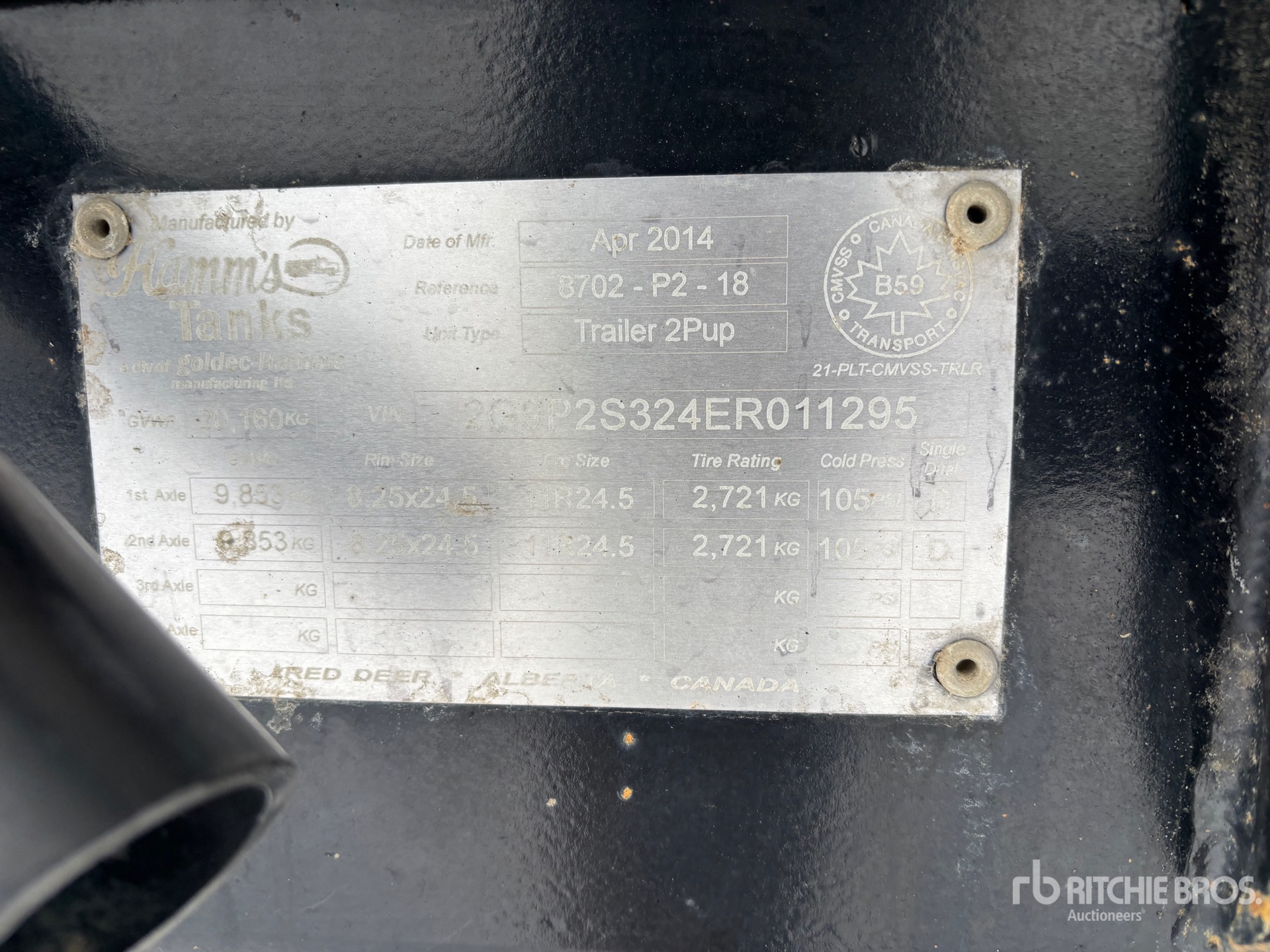 Lunette Ring Hitch, Air Ride Suspension, Air Brakes, Aluminum Wheels, 11R24.5 Tires, Steel Tank, TC406 Code, 21160 kg GVWR
