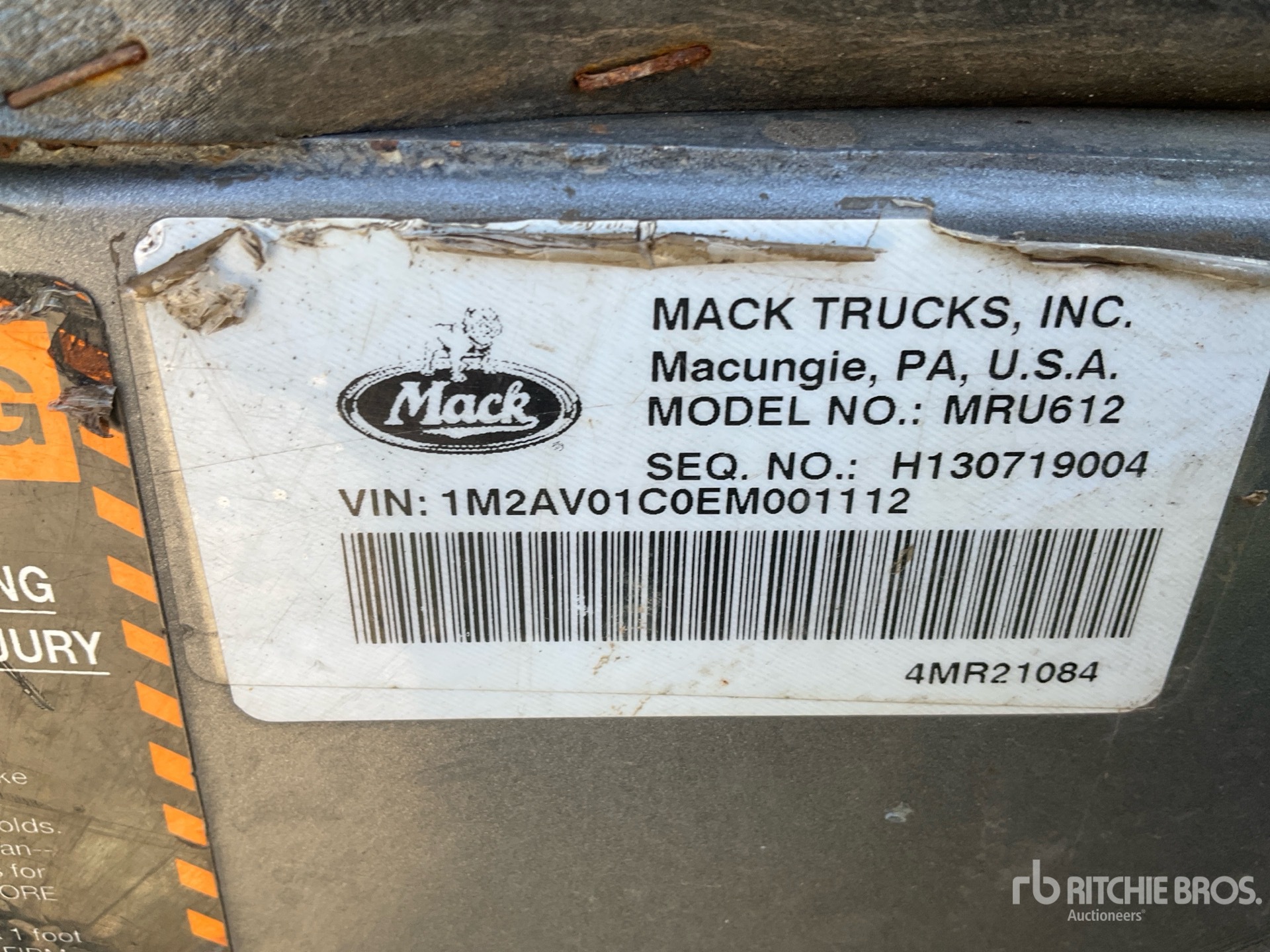 Mack MP7 6 Cylinder 10.8 L Diesel Engine, Requires Diesel Exhaust Fluid, 12767 Engine hrs, Engine Brake, Allison Automatic Transmission, 18180 lb Front Axle, 23000 lb Rears, 41180 lb GVWR, 11R22.5 Front Tires, 295/75R22.5 Rear Tires, Spring Suspension, 148 in Wheelbase, PTO, PB Loader Corp. Roll-Off Body, 12 ft Hoist, Pintle Hitch