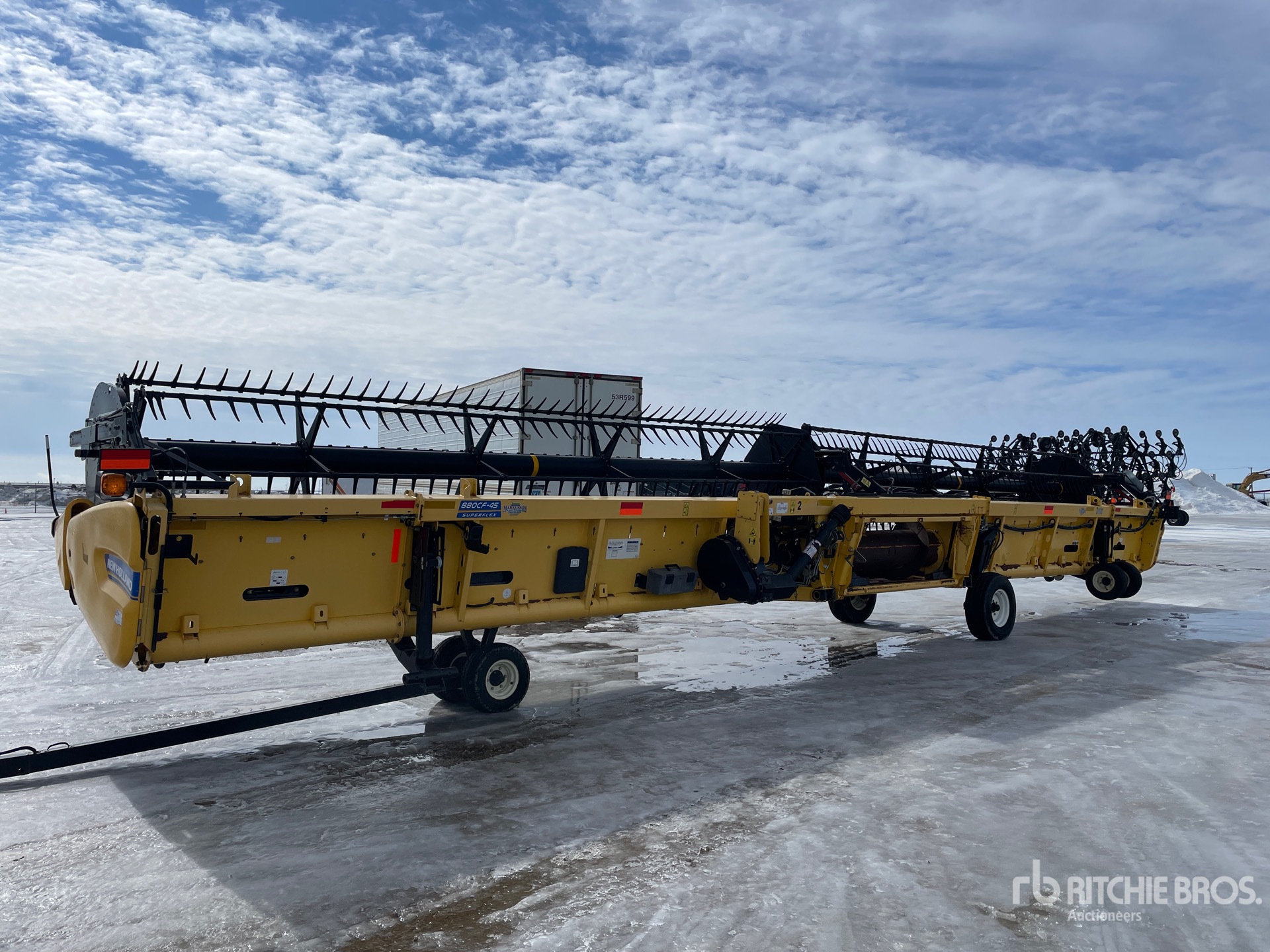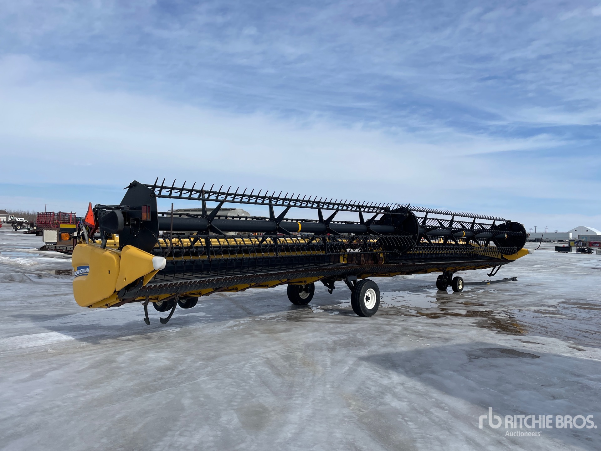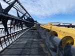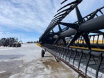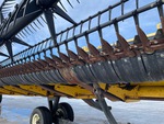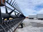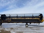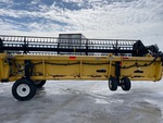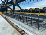 Hydraulic Folding Gauge Wheels, Split P/U Reel, Hydraulic Fore & Aft, Upper Cross Auger, Double Knife Drive, Poly Skid Plates, Gauge Wheels, Slow Speed Transport Wheel Package