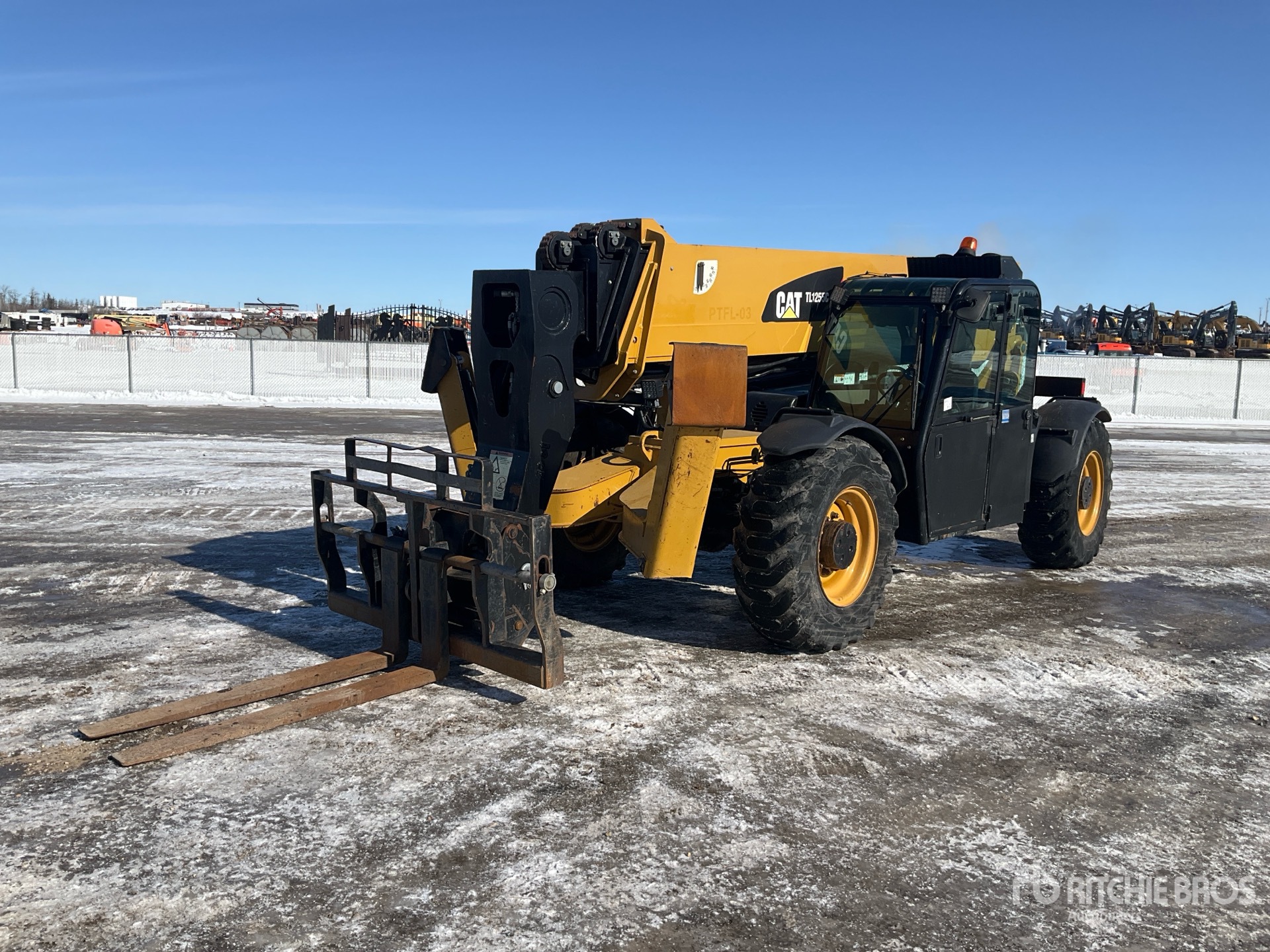 Enclosed Cab, 55 ft Max Lift Height, 12000 lb Max Lift Capacity, Positive Air Shutoff, 60 in Forks, Hydraulic Coupler, Outriggers, Frame Leveling, Auxiliary Hydraulic Plumbing, 17.5-25 Tires