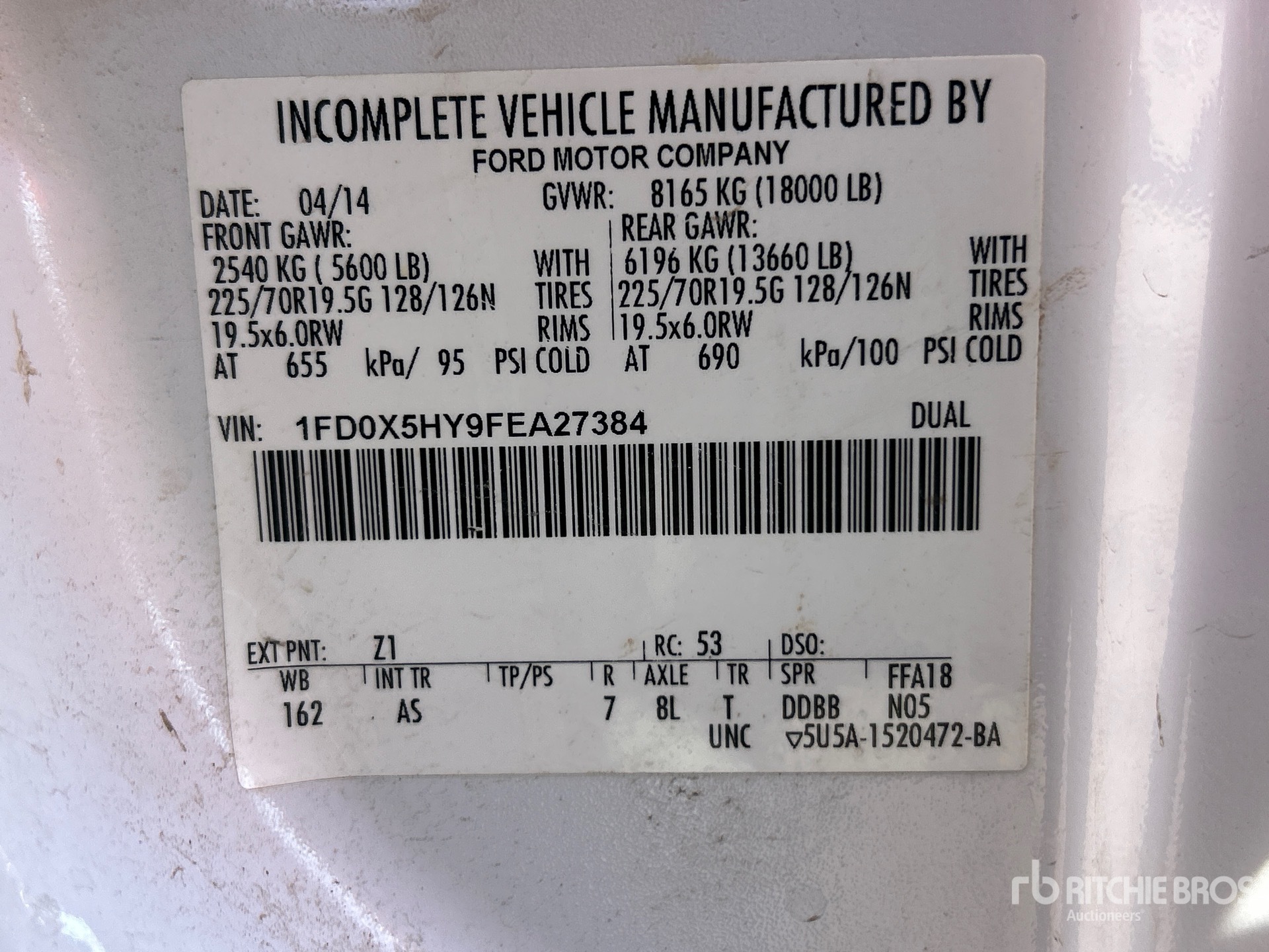 V8 6.8 L Gasoline Engine, 2015 US EPA Label, Automatic Transmission, 5600 lb Front Axle, 13660 lb Rears, 18000 lb GVWR, 225/70R19.5, Spring Suspension, 162 in Wheelbase, Self-Loading Reel Carrier
