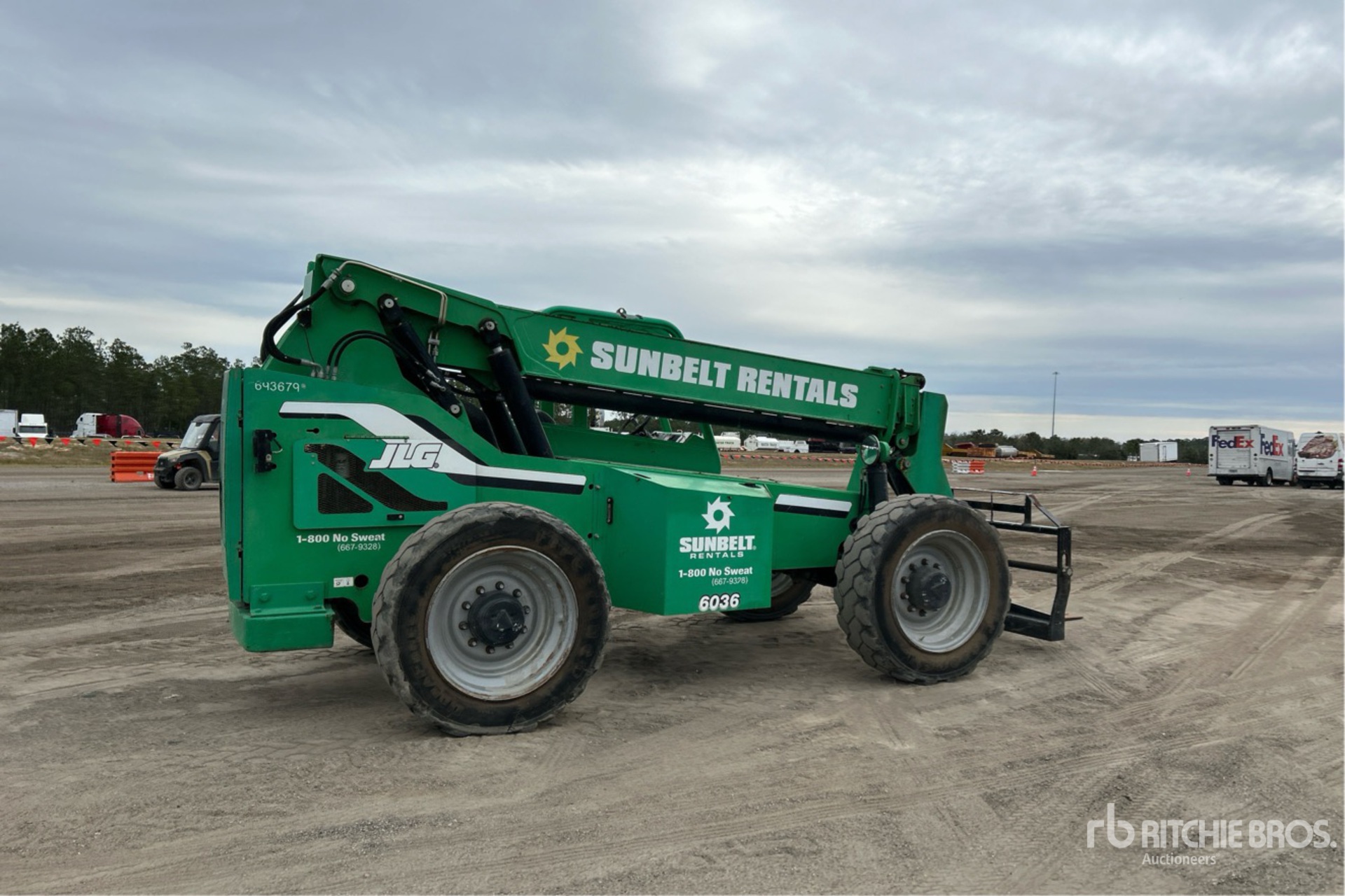 Open Operator Station, 36 ft Max Lift Height, 6000 lb Max Lift Capacity, Requires Diesel Exhaust Fluid, 42 in Forks, Manual Coupler, Frame Leveling, Auxiliary Hydraulic Plumbing, 370/75-28 Tires