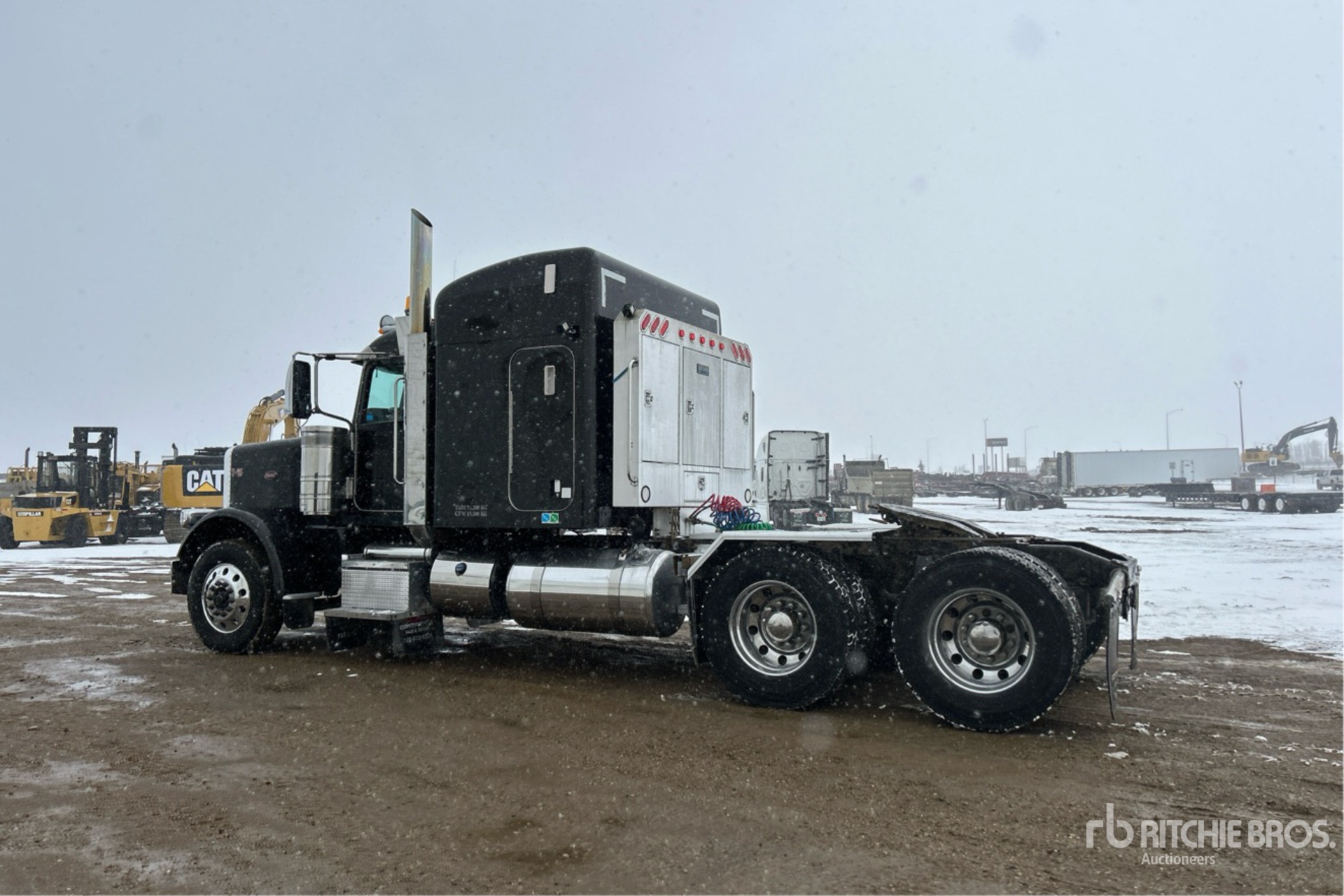 Located in Lane 35 Spot 44, Cummins ISX 600 hp Engine, 2014 US EPA Label, 19477 Engine hrs, Eaton Fuller Manual Transmission, 13201 lb Front Axle, 46000 lb Rears, 59200 lb GVWR, Engine Brake, Double Differential Locks, 63 in Sleeper Cab, 246 in Wheelbase, Air Suspension, Aluminum Wheels, 11R24.5 Front Tires, 11R24.5 Rear Tires, Air Sliding 5th Wheel, Dual Fuel Tanks, Headache Rack