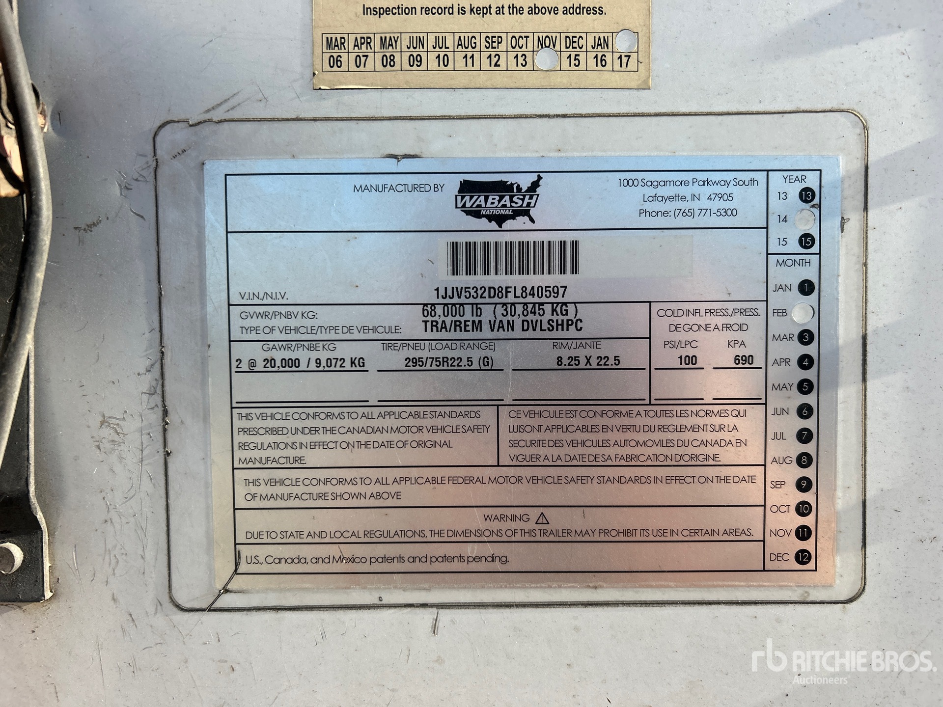 Aluminum/Steel Combination Frame, Air Ride Sliding Suspension, Side Skirts, Hardwood Floor, Swing Door, 295/75R22.5 Tires 68000 lb GVWR