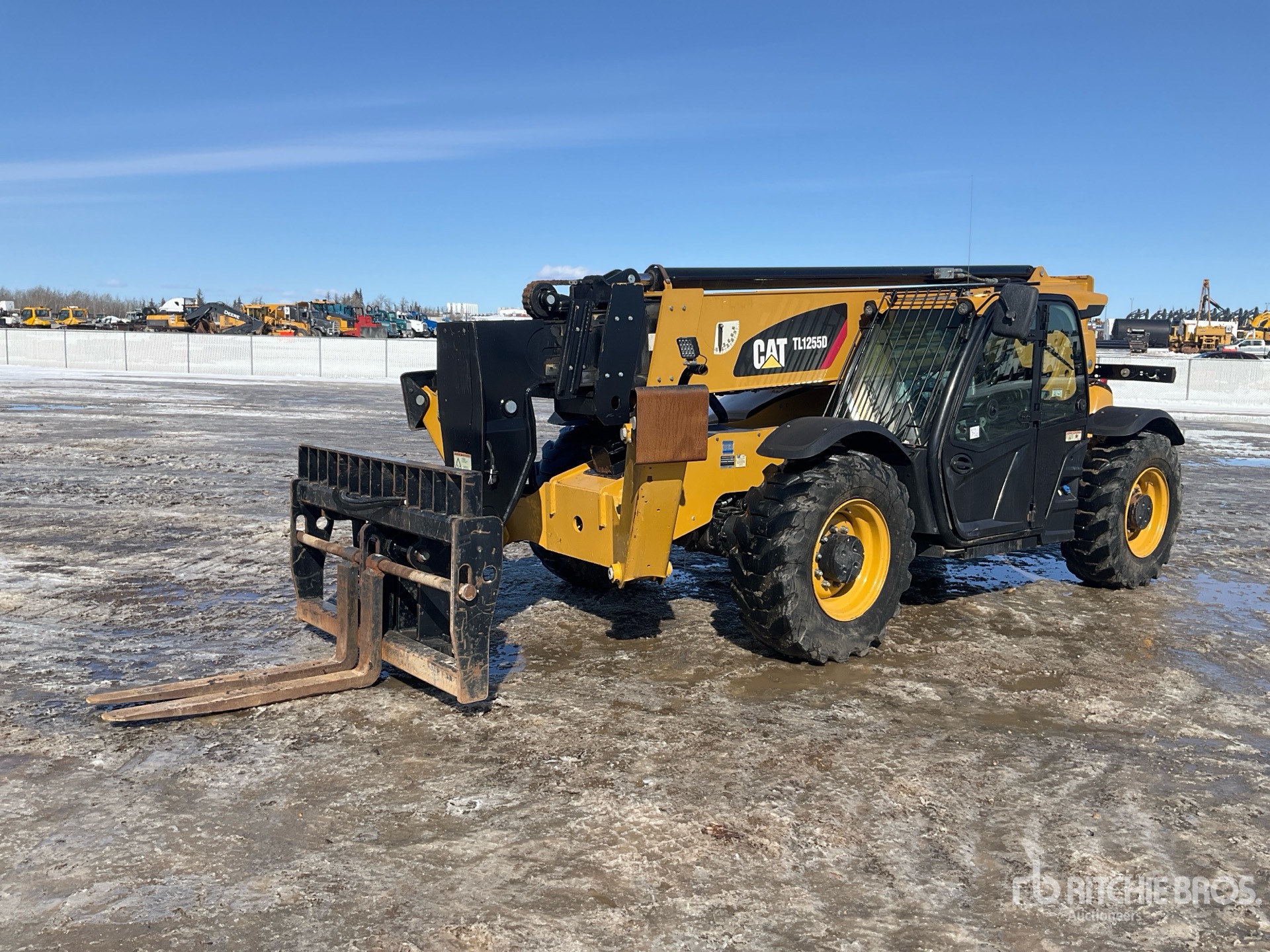Enclosed Cab, Air Conditioner, 55 ft Max Lift Height, 12000 lb Max Lift Capacity, Requires Diesel Exhaust Fluid, Positive Air Shutoff, 48 in Forks, Tilt Carriage, Hydraulic Coupler, Outriggers, Frame Leveling, Auxiliary Hydraulic Plumbing, 17.5-25 Tires