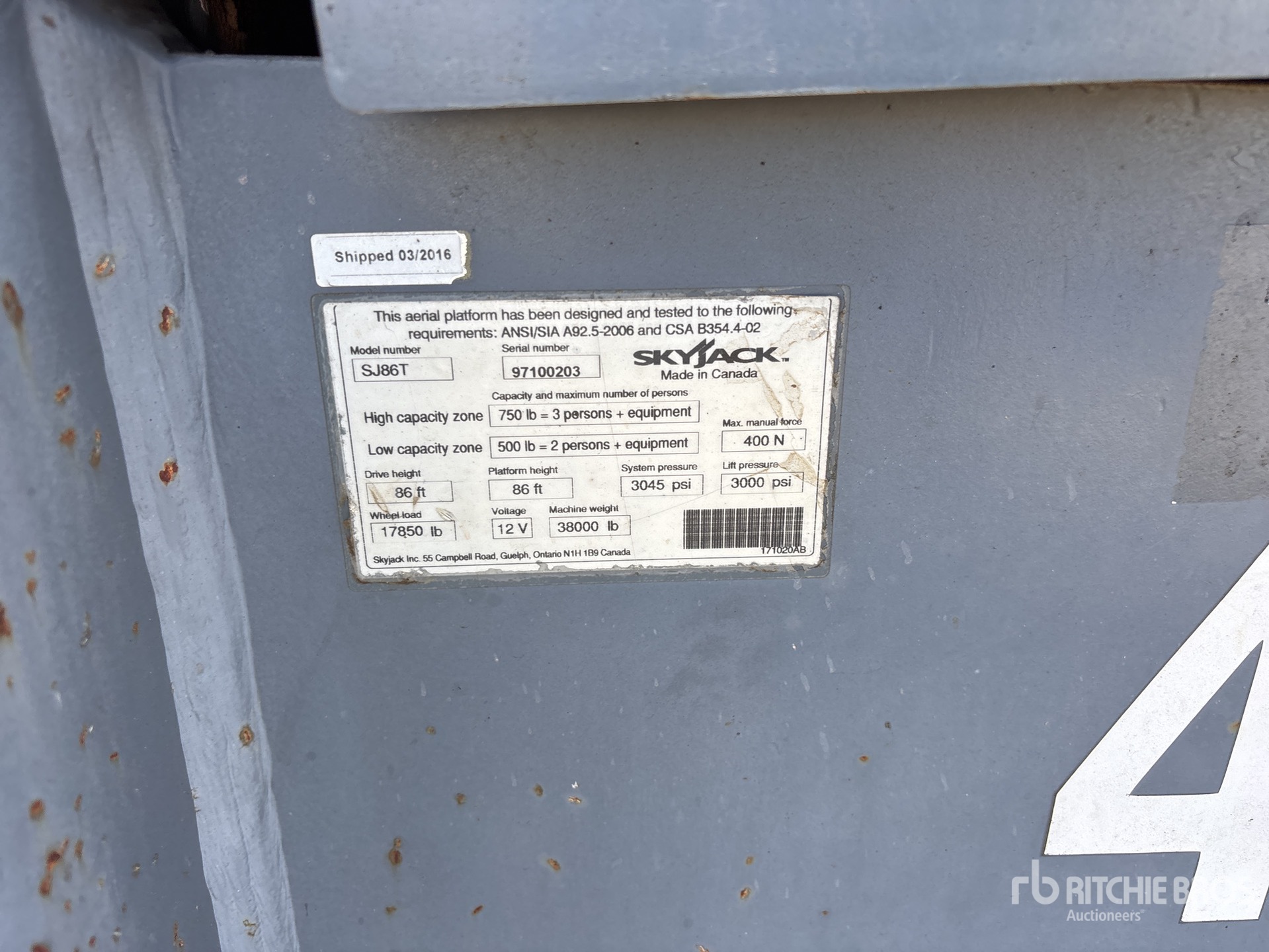 A qualified Ritchie Bros. employee collected detailed equipment information and performed functional tests on the key components of this asset. You, or a proxy, may also inspect any items on site prior to bidding on auction day.