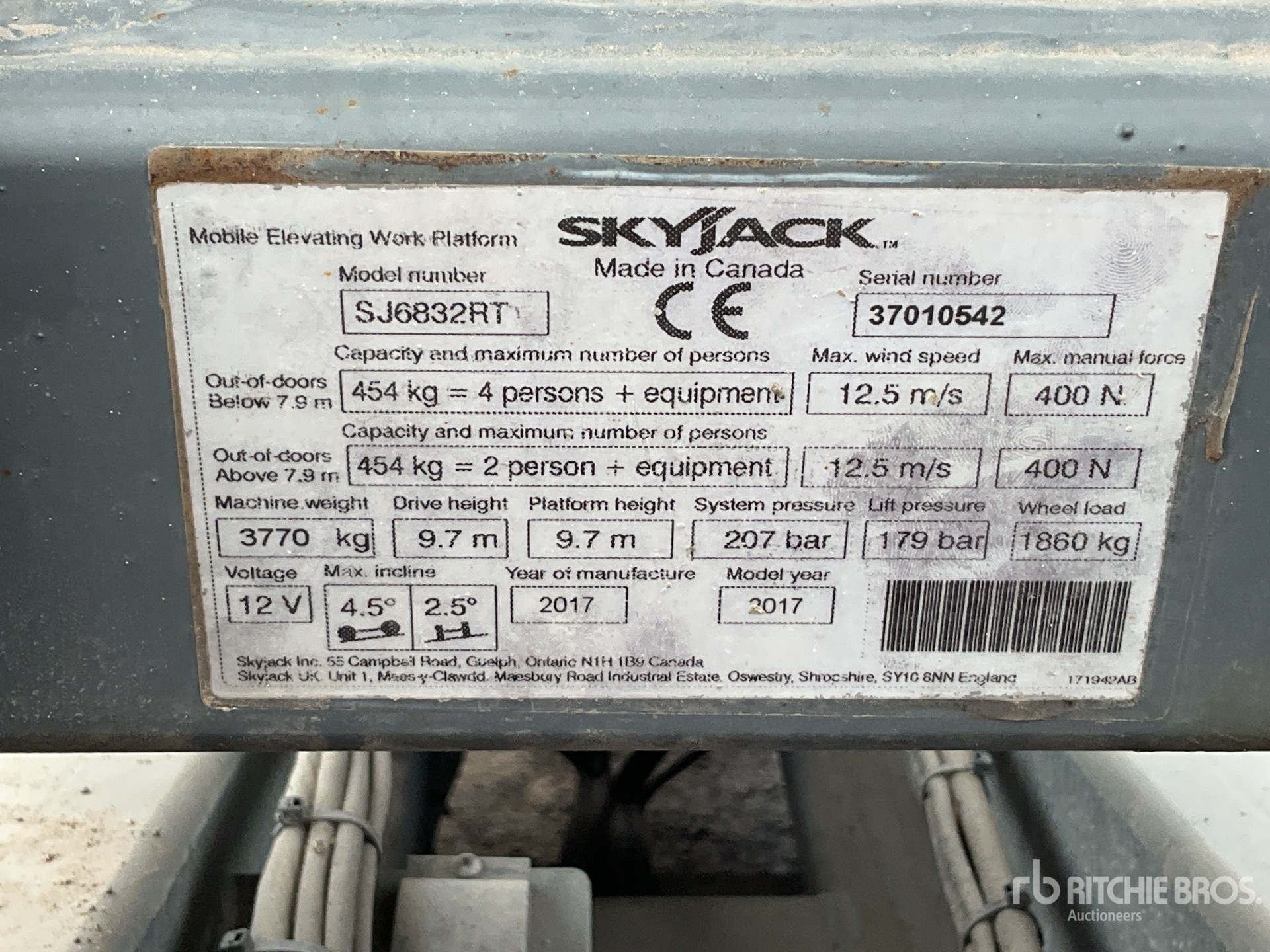 The detailed equipment information is limited in scope, and Ritchie Bros. Auctioneers has not inspected any aspects or components of the equipment other than those expressly set forth herein. Unless expressly stated, we make no representations or warranties, express or implied, concerning the equipment or its components, including without limitation any representations or warranties concerning functionality, conformity or compliance with any safety standard or requirement of any applicable authority or regulatory body, fitness for any particular purpose, or merchantability. You are strongly advised to perform your own detailed inspection of the equipment prior to bidding.