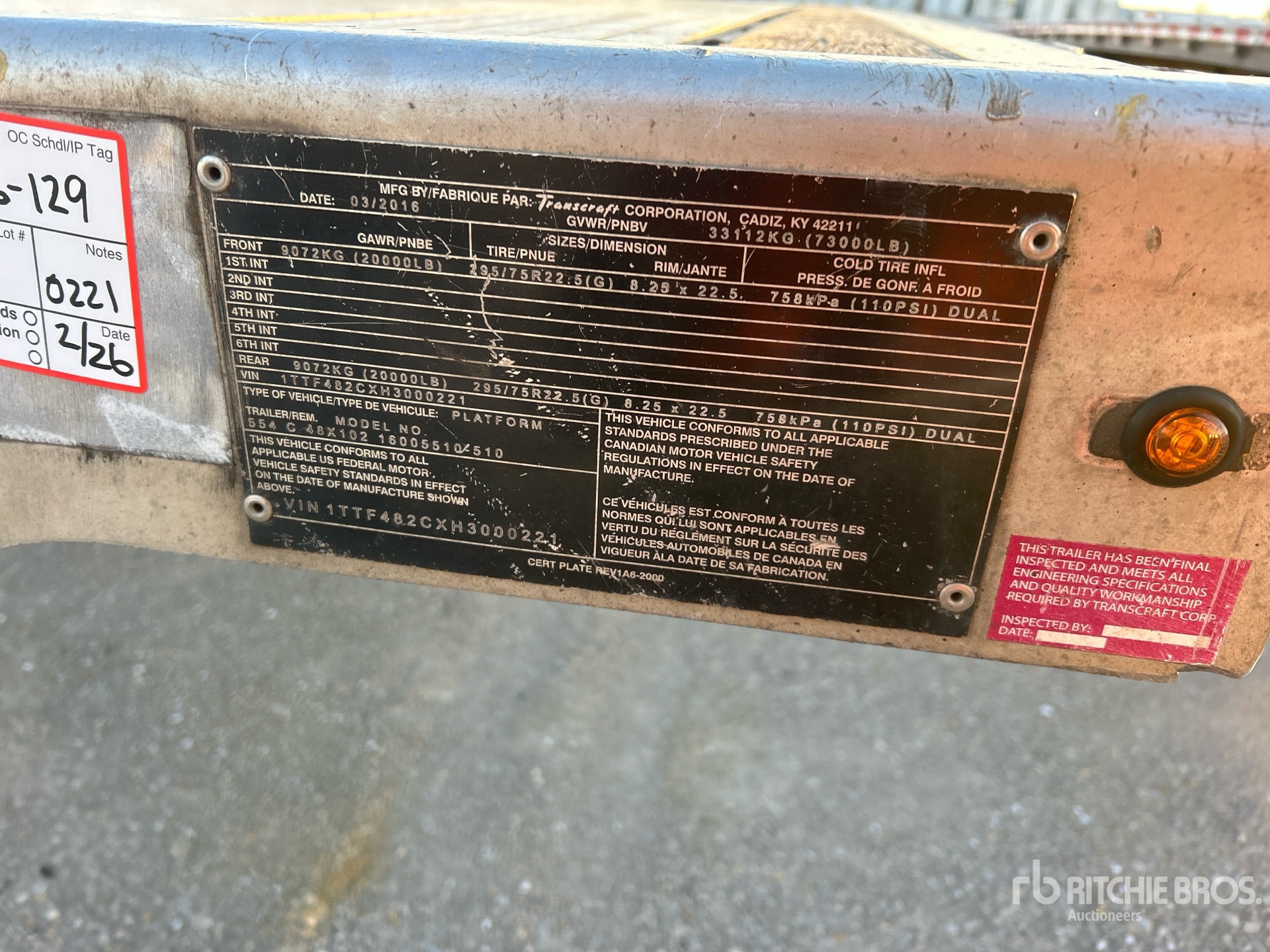 Air Ride Suspension, 102 in Deck Width, 102 in Overall Width, Aluminum w/Wood Strips Flooring, 295/75R22.5 Tires, 73000 lb GVWR