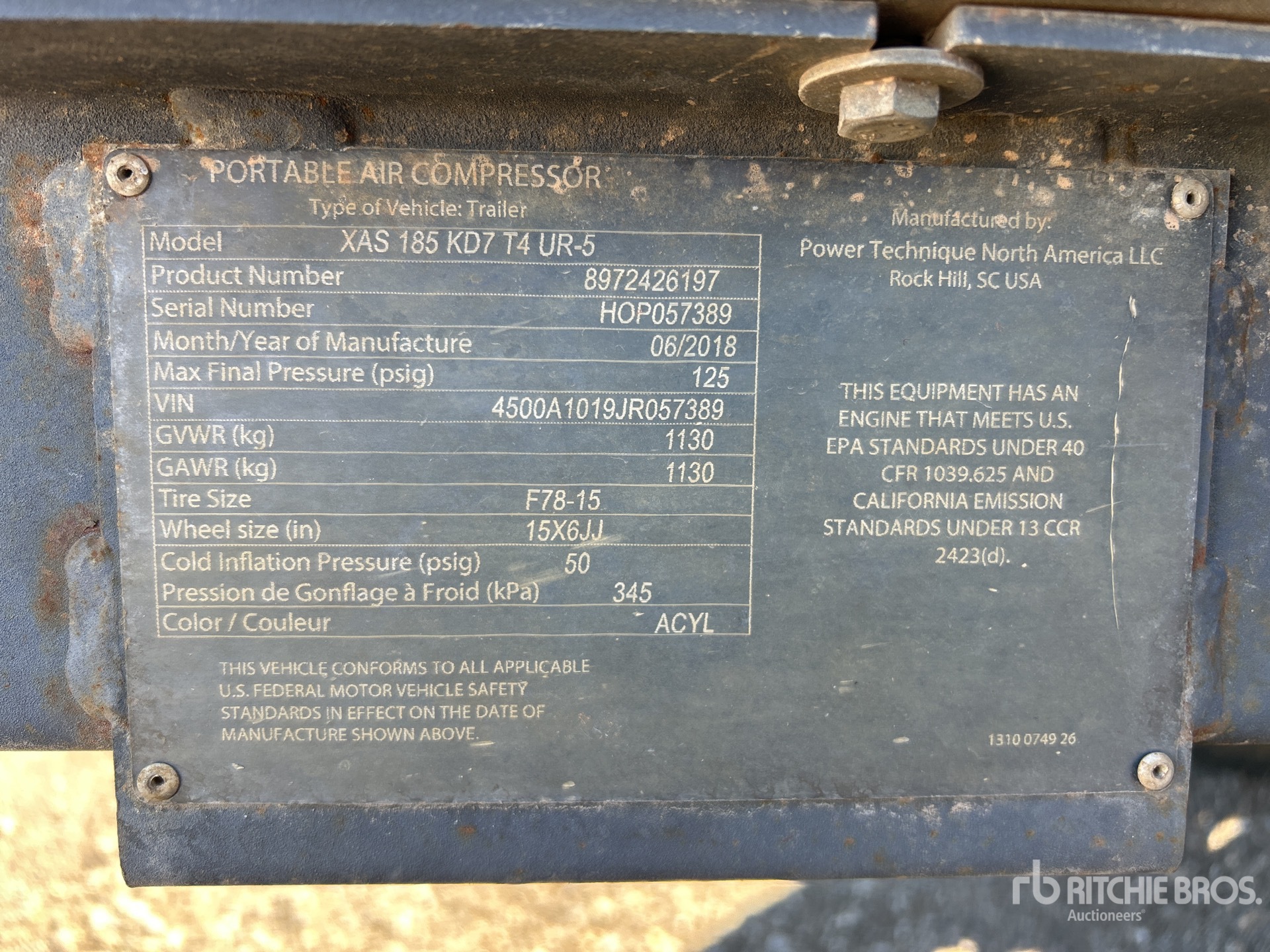 The detailed equipment information is limited in scope, and Ritchie Bros. Auctioneers has not inspected any aspects or components of the equipment other than those expressly set forth herein. Unless expressly stated, we make no representations or warranties, express or implied, concerning the equipment or its components, including without limitation any representations or warranties concerning functionality, conformity or compliance with any safety standard or requirement of any applicable authority or regulatory body, fitness for any particular purpose, or merchantability. You are strongly advised to perform your own detailed inspection of the equipment prior to bidding.