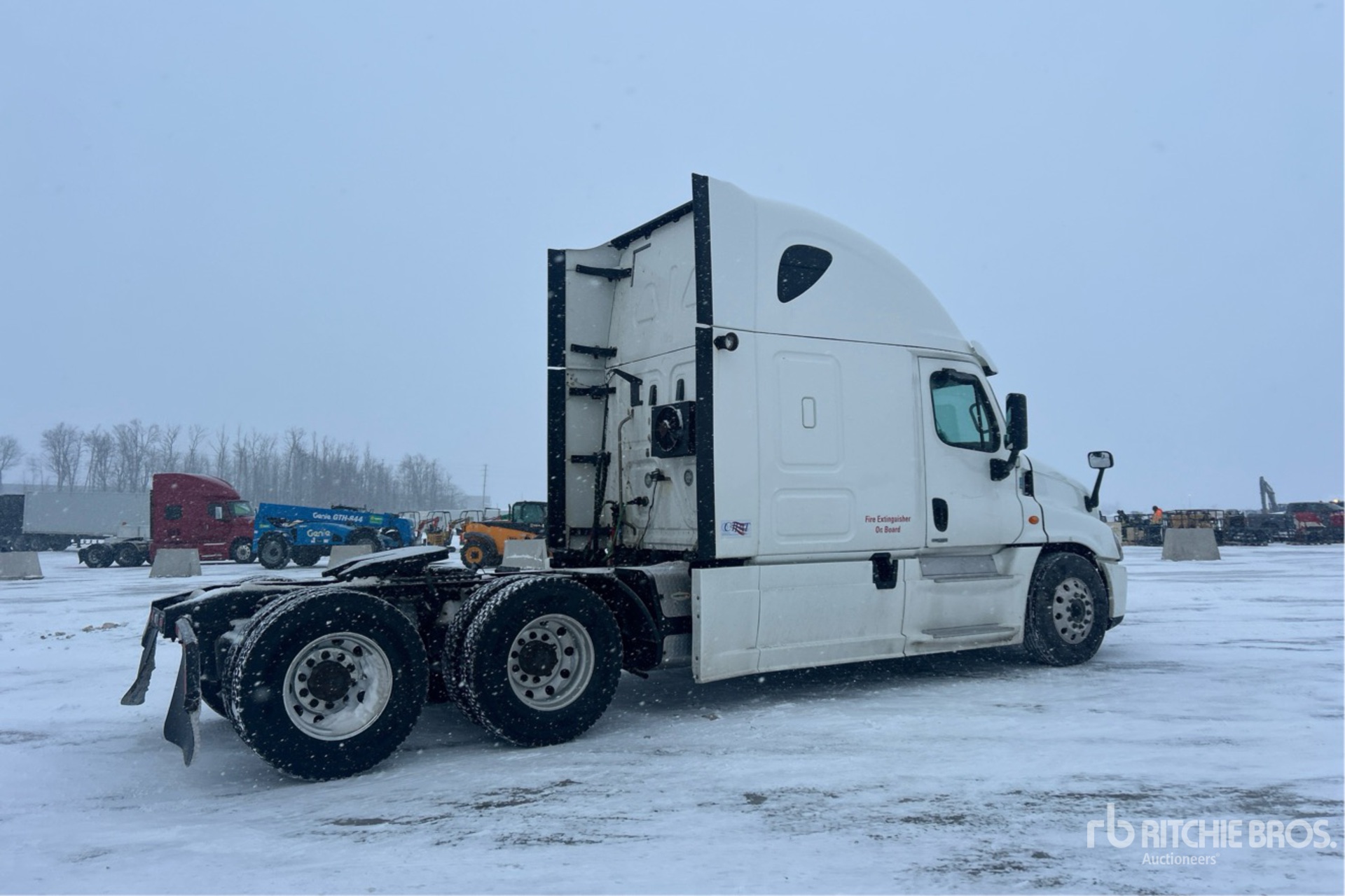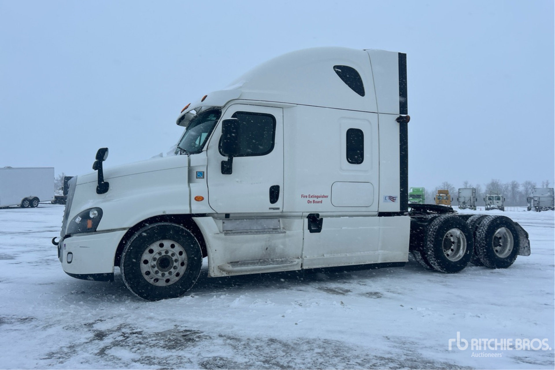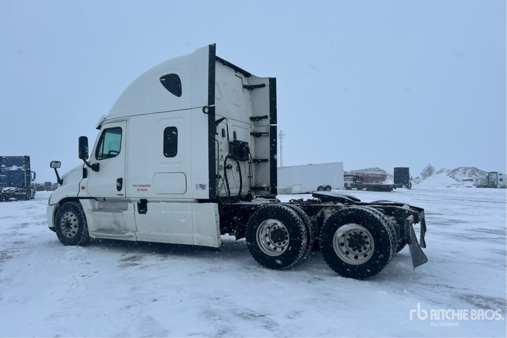 Detroit DD15 Engine, 22869 Engine hrs, 13220 lb Front Axle, 40000 lb Rears, 53220 lb GVWR, Engine Brake, Differential Lock, 70 in High Rise Sleeper Cab, Bunk Beds, 228 in Wheelbase, Air Suspension, Aluminum Wheels, 11R22.5, Air Sliding 5th Wheel, Dual Fuel Tanks