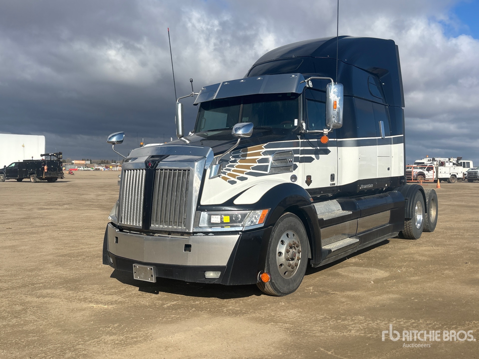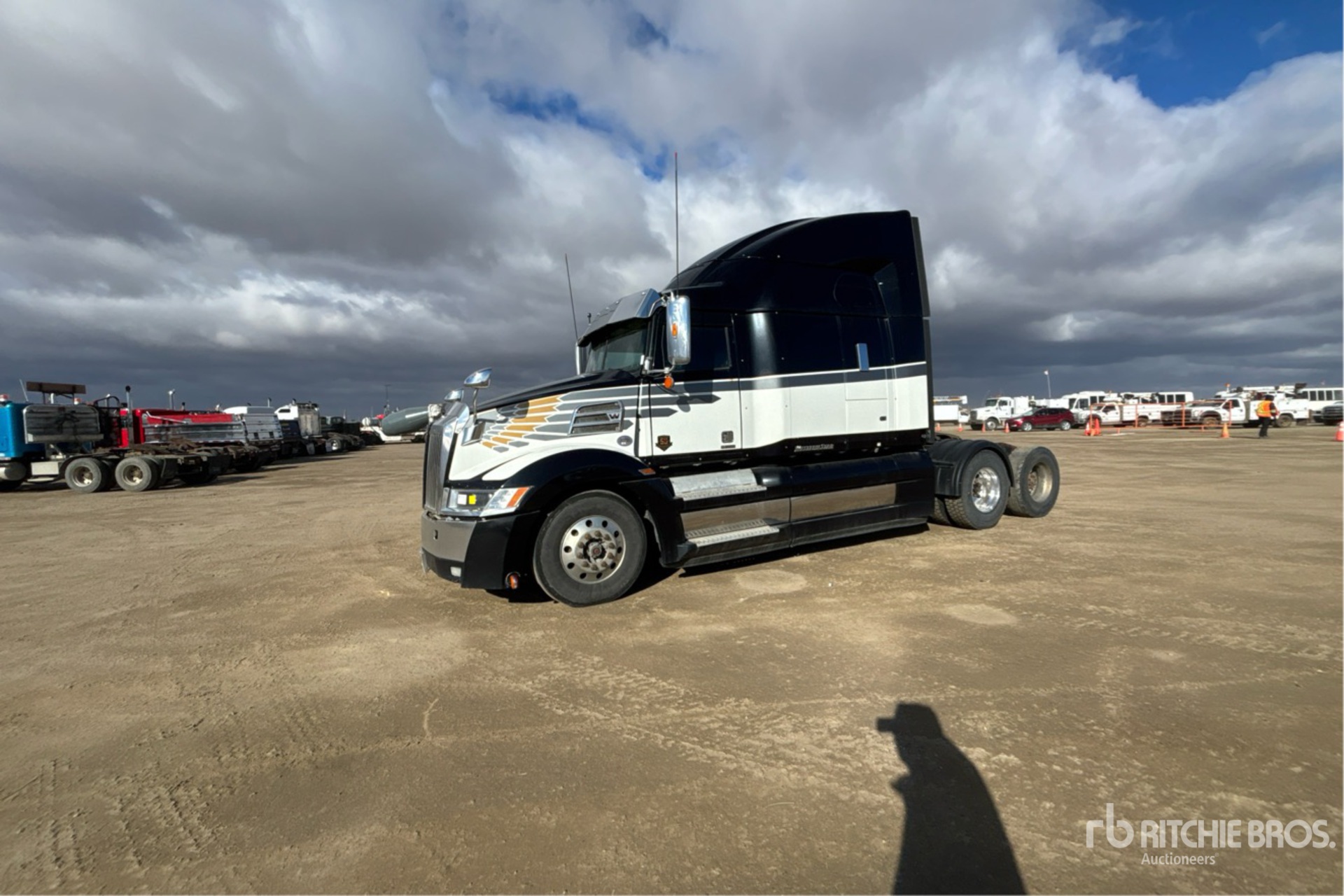 Located in Lane 34 Spot 45, Detroit DD15 505 hp Engine, 19400 Engine hrs, Detroit DT12-1750-OH1 12-Speed Automatic Transmission, 13200 lb Front Axle, 40000 lb Rears, 53220 lb GVWR, Engine Brake, Double Differential Locks, 68 in Mid Roof Sleeper Cab, 234 in Wheelbase, Air Suspension, Aluminum Wheels, 11R22.5, Air Sliding 5th Wheel, Dual Fuel Tanks, "NOTICE-TO-US-BIDDERS: this asset is likely exempt from US import tariffs as it was manufactured in the US. Bidders are responsible for confirming with their customs broker."