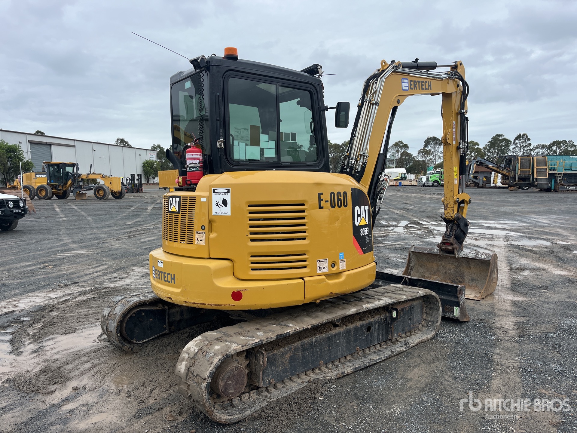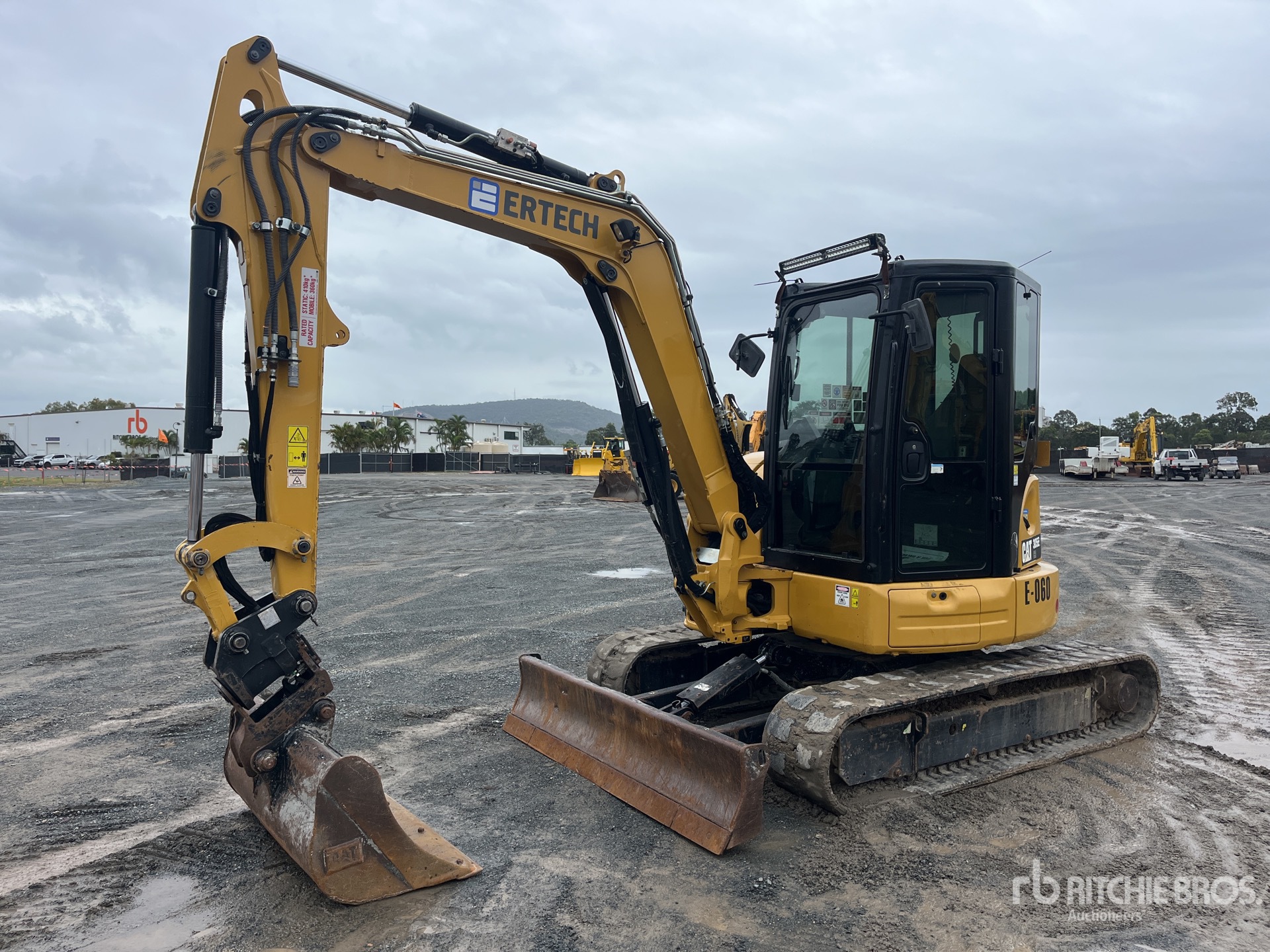 Enclosed Cab, Air Conditioner, Rear View Camera, E-Stops, Swing Boom, 1750 mm Stick, Auxiliary Hydraulic Plumbing, Stick Check Valve, Boom Check Valves, Backfill Blade, 400 mm Rubber Tracks, Tilting Hydraulic Quick Coupler, 1200 mm Cleanup Bucket, Additional 400 mm Digging Bucket, 250 mm Digging Bucket