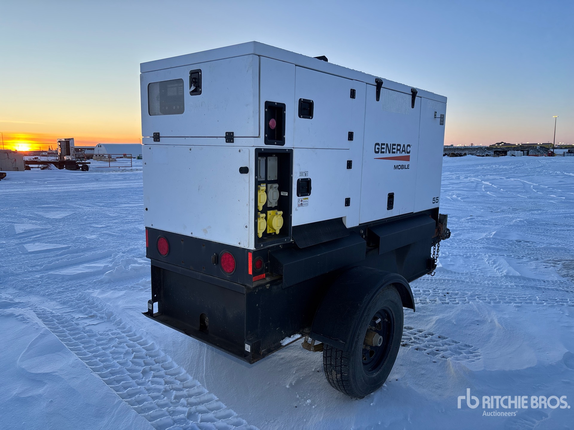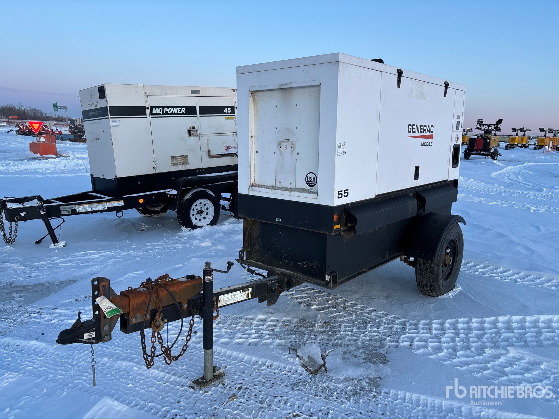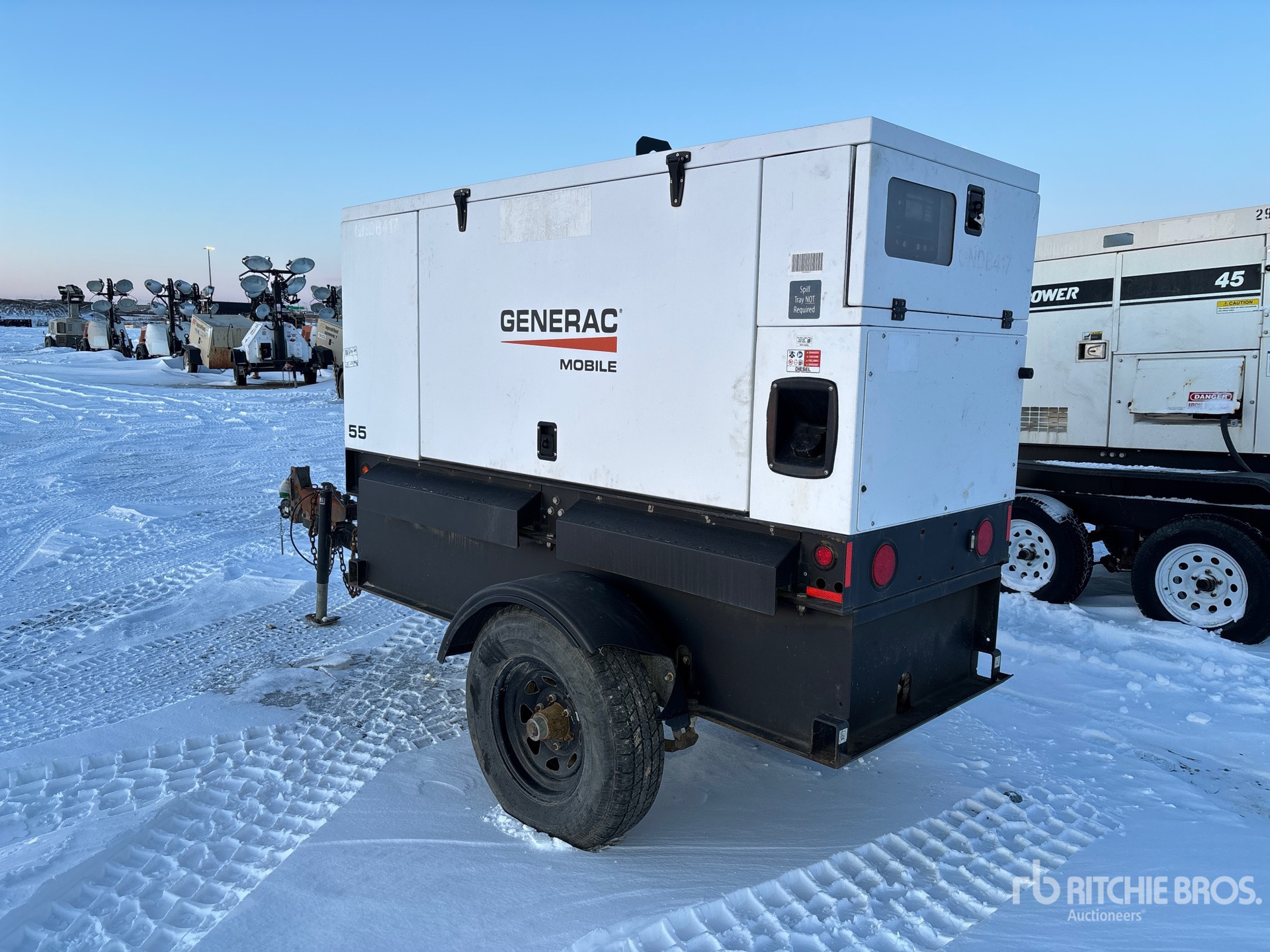 John Deere 4 Cylinder Diesel Engine, 55 kVA/44 kW Rated 3 Phase Output, 208 V / 480 V Rated Voltage, Lunette Ring Carrier Trailer
