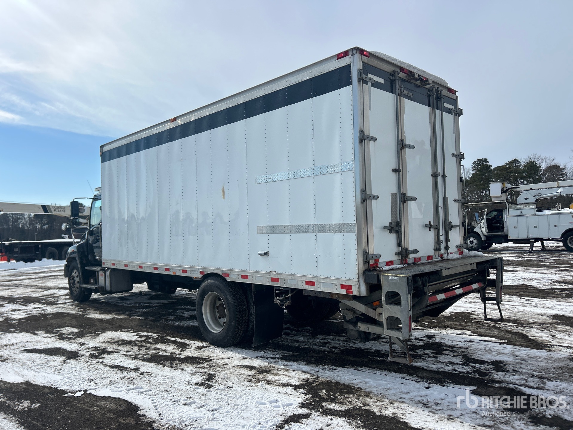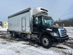 Hino J08E-WU 6 Cylinder 7.7 L Diesel 220 hp Engine, 2018 US EPA Label, Requires Diesel Exhaust Fluid, Automatic Transmission, 10000 lb Front Axle, 19000 lb Rears, 25950 lb GVWR, 11R22.5, Spring Suspension, 235 in Wheelbase, Thermo King T-1080S Reefer Unit, 19466 Reefer Engine Hours:, 2-Zone, Standby Power, Hackney 22 ft x 96 in Wide x 97 in High Body, Curbside Door, Liftgate