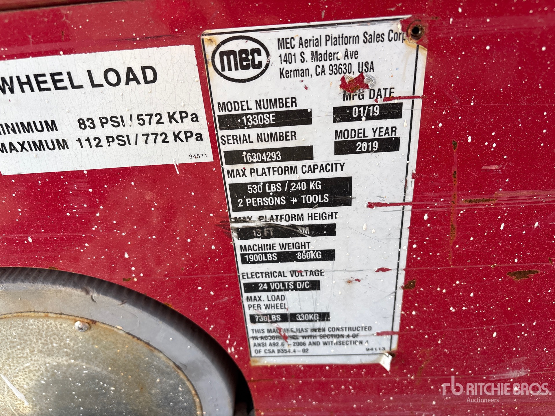The detailed equipment information is limited in scope, and Ritchie Bros. Auctioneers has not inspected any aspects or components of the equipment other than those expressly set forth herein. Unless expressly stated, we make no representations or warranties, express or implied, concerning the equipment or its components, including without limitation any representations or warranties concerning functionality, conformity or compliance with any safety standard or requirement of any applicable authority or regulatory body, fitness for any particular purpose, or merchantability. You are strongly advised to perform your own detailed inspection of the equipment prior to bidding.