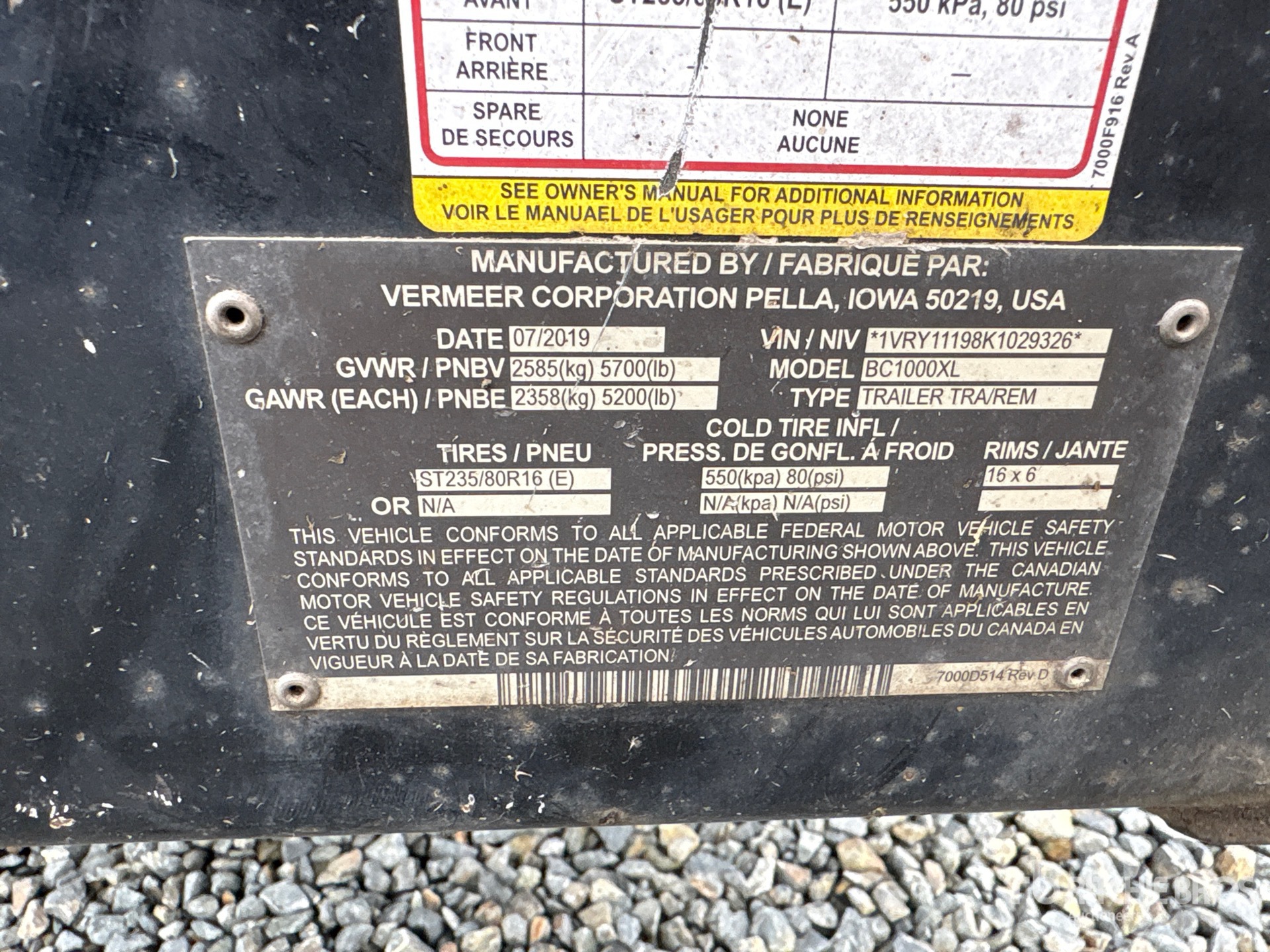 2019 US EPA Label, Deutz TD 2.9L4 4 Cylinder 2.9 L Diesel Engine, Requires Diesel Exhaust Fluid, 50 in Feed Opening, Swivel Discharge Chute, Lunette Ring Carrier Trailer, Surge Brakes