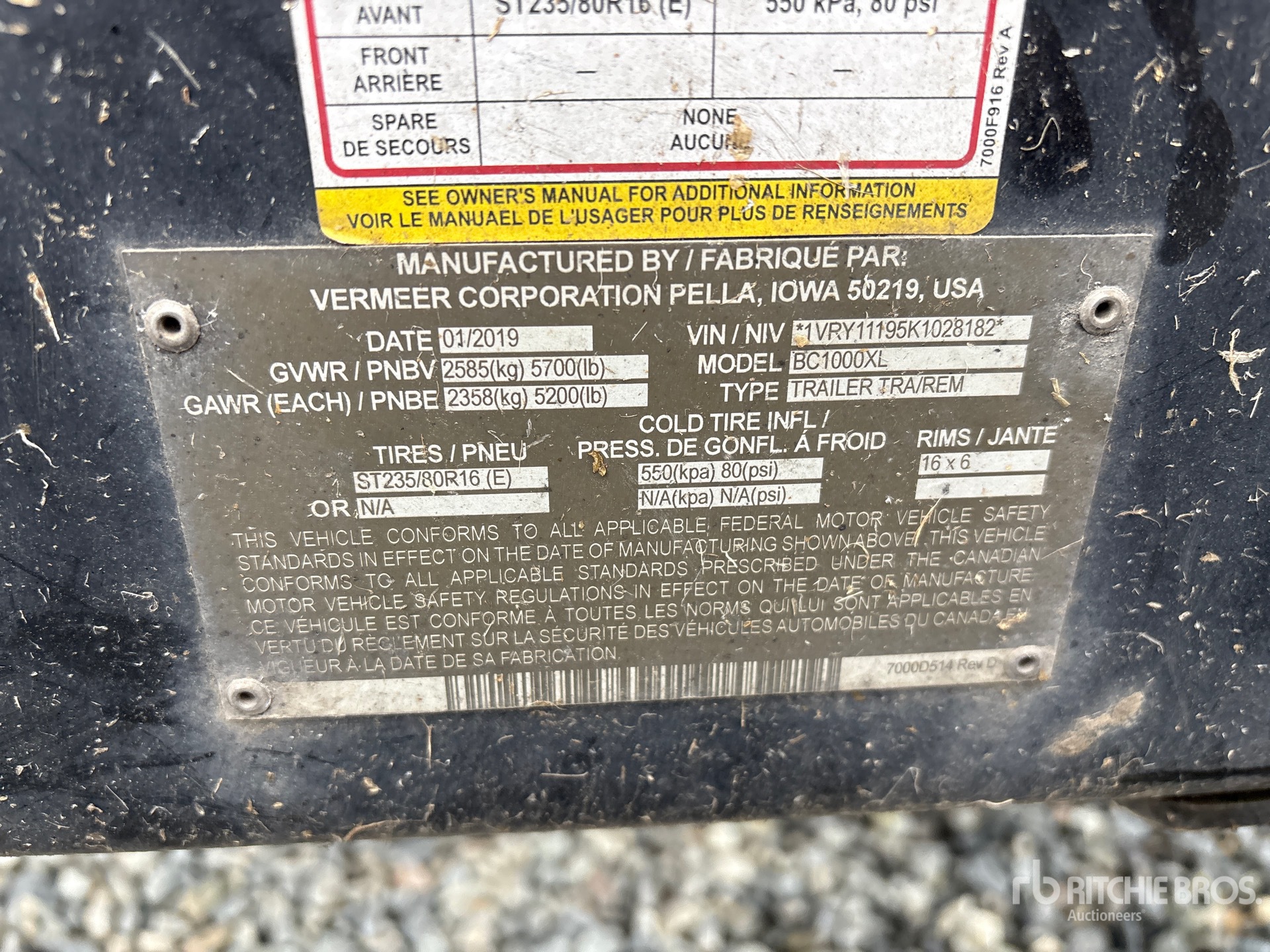A qualified Ritchie Bros. employee collected detailed equipment information and performed functional tests on the key components of this asset. You, or a proxy, may also inspect any items on site prior to bidding on auction day.