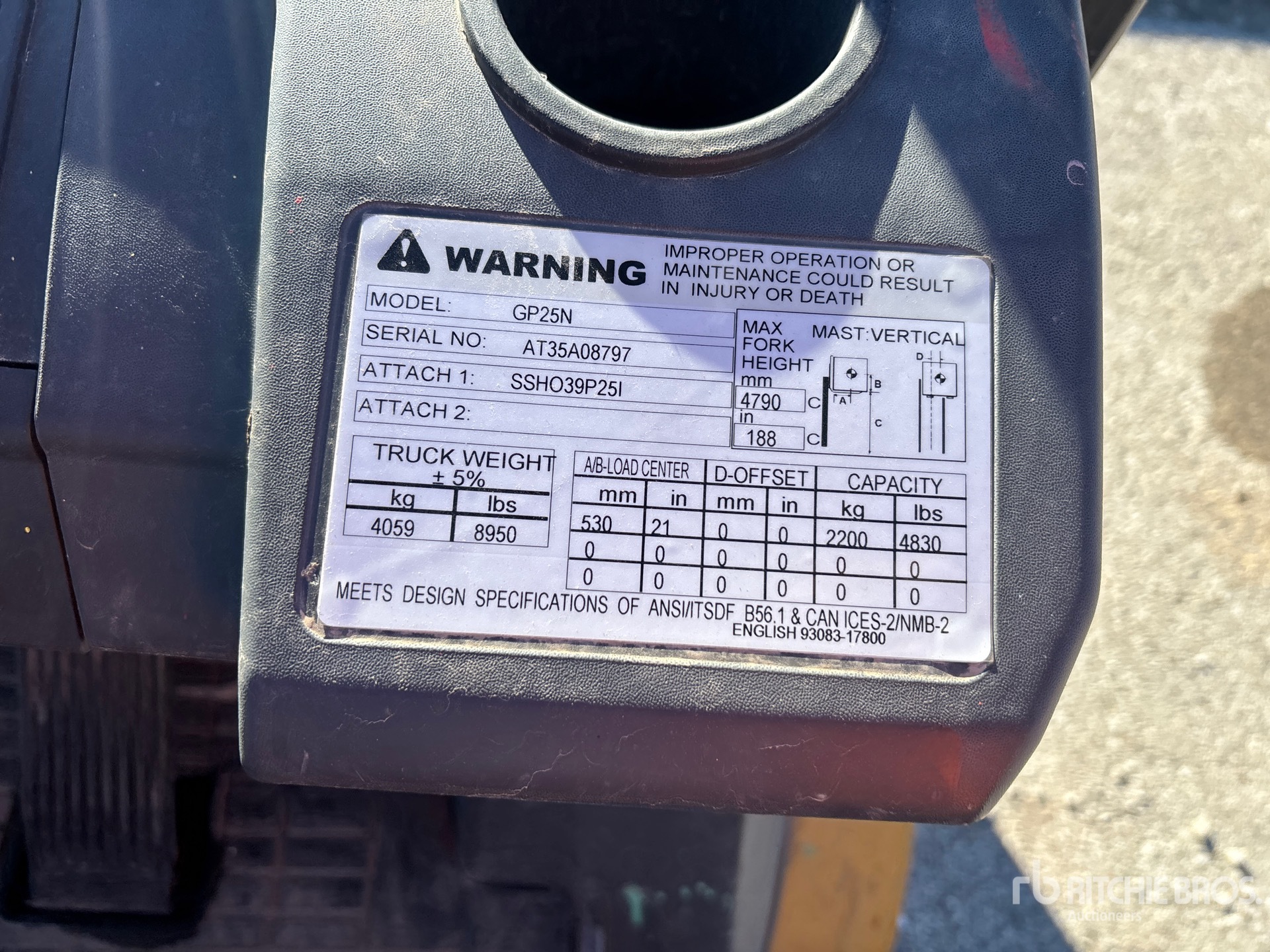 The detailed equipment information is limited in scope, and Ritchie Bros. Auctioneers has not inspected any aspects or components of the equipment other than those expressly set forth herein. Unless expressly stated, we make no representations or warranties, express or implied, concerning the equipment or its components, including without limitation any representations or warranties concerning functionality, conformity or compliance with any safety standard or requirement of any applicable authority or regulatory body, fitness for any particular purpose, or merchantability. You are strongly advised to perform your own detailed inspection of the equipment prior to bidding.