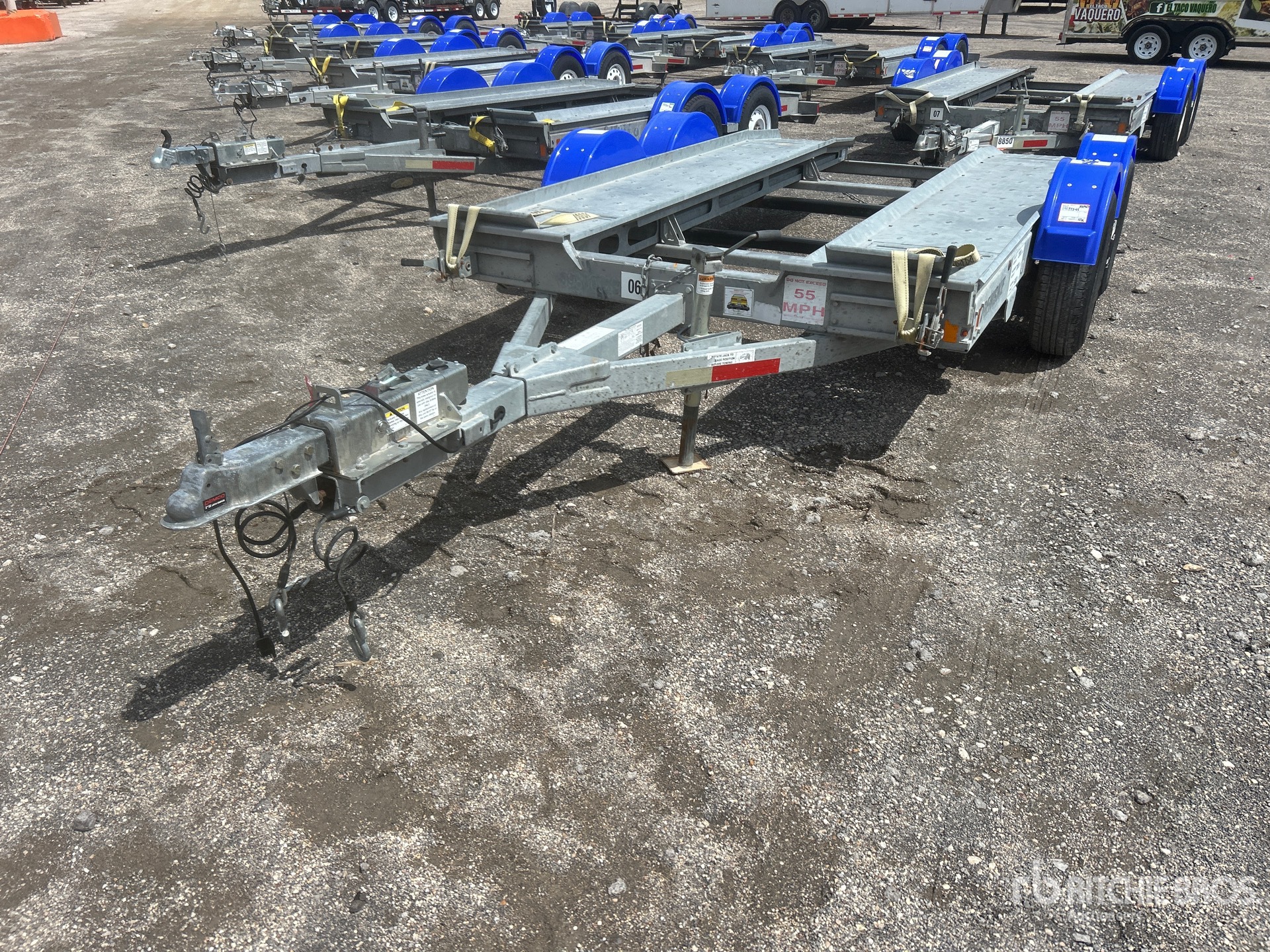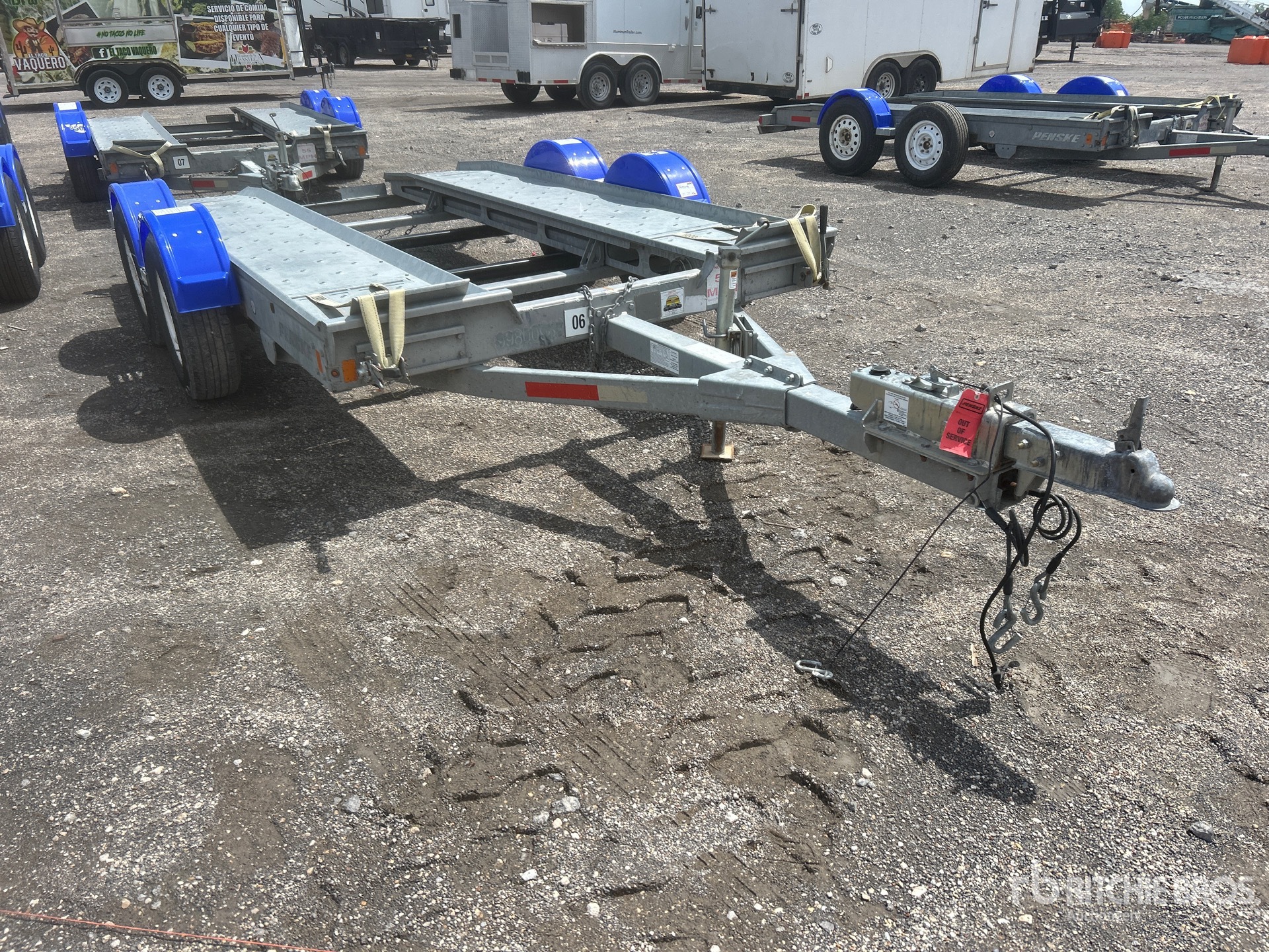 Aluminum/Steel Combination Frame, Ball Hitch, Torsion Axle, Surge Brakes, Soft Ties, 225/75R15 Tires, 7000 lb GVWR, Ramps